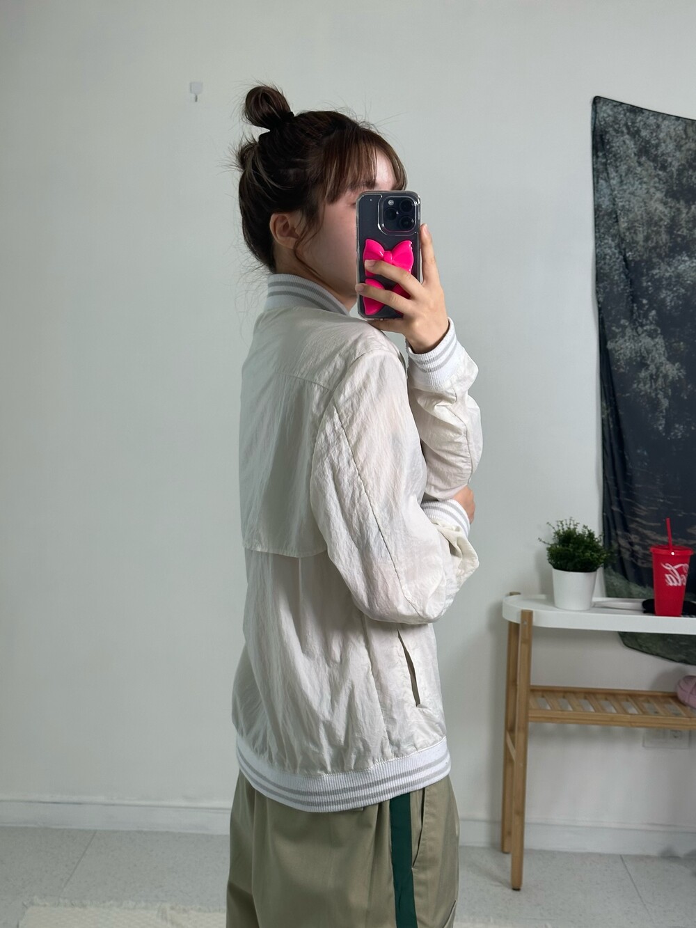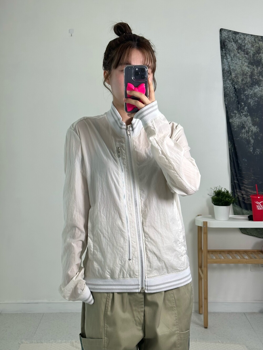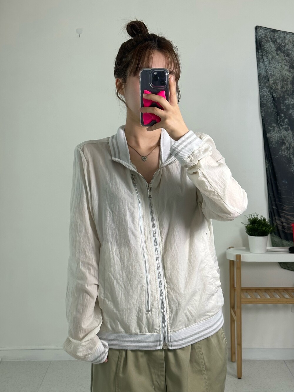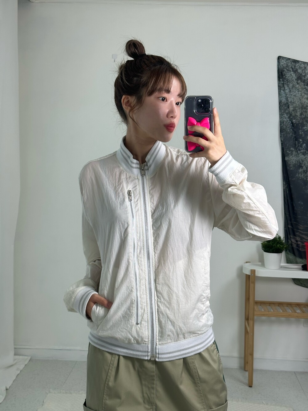 •얇은 원단의 아우터에요! 길게 들어가 있는 지퍼 디테일이 더욱 예쁘고 독특하답니다:) 이너로 끈나시 입어주시고 간단하게 걸치기 좋은 제품이에요!