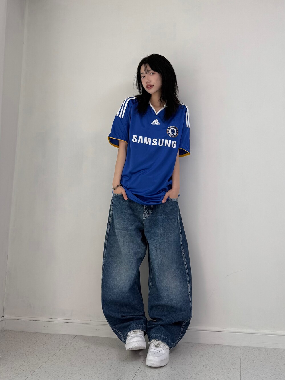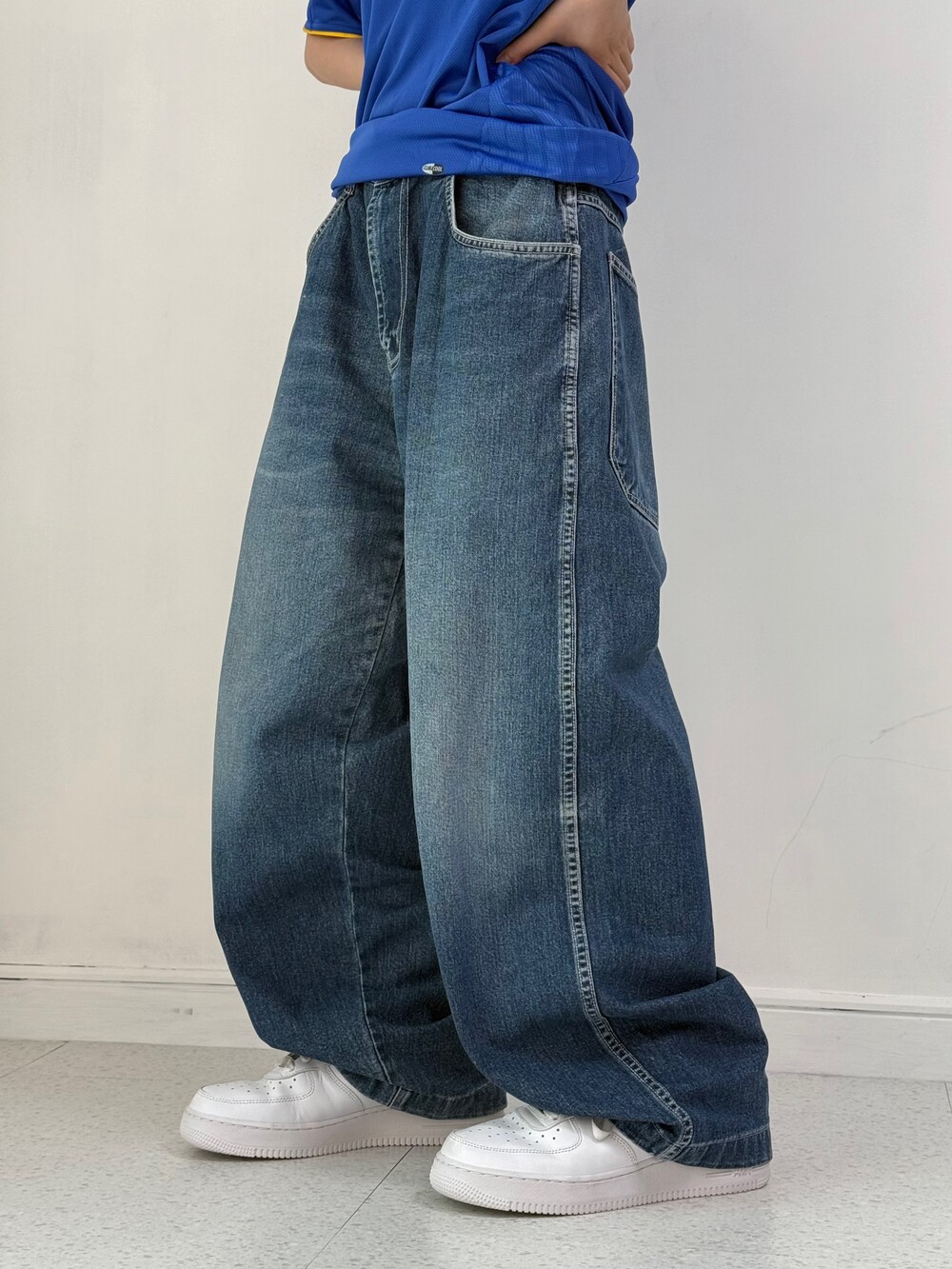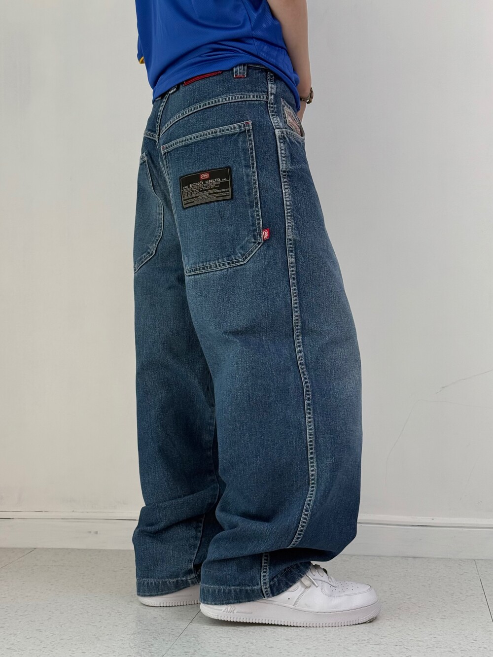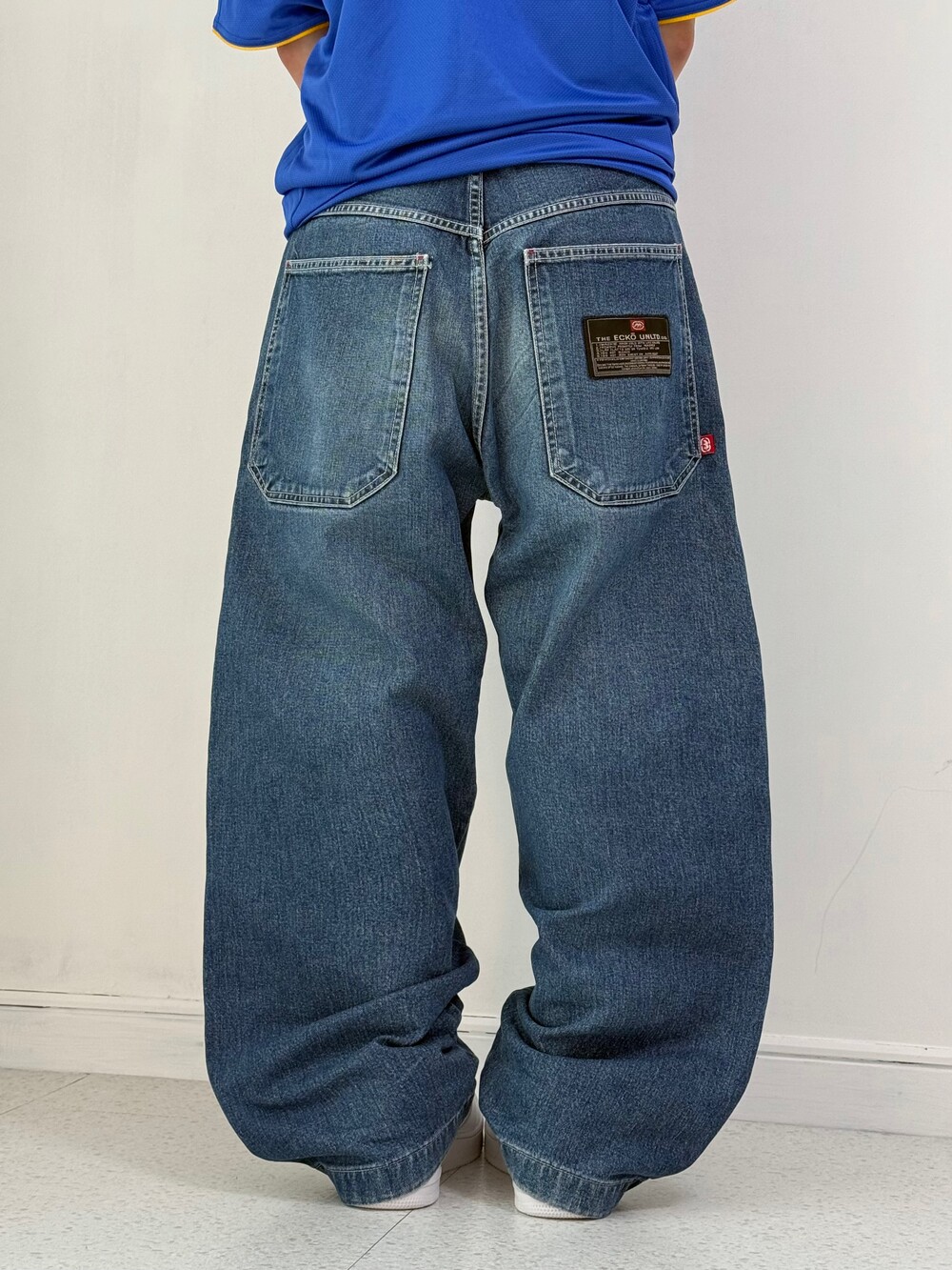 •Ecko의 데님팬츠! 깔끔루즈핏 좋아하시는 분들이라면 분명이 좋아하실듯해요ㅎ.ㅎ 기장감이 짧은편이라 키가 작으신분들도 안끌리게 착용가능하세요!