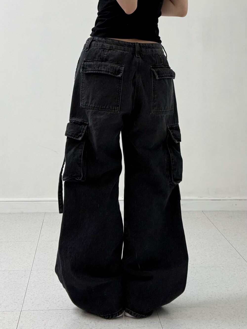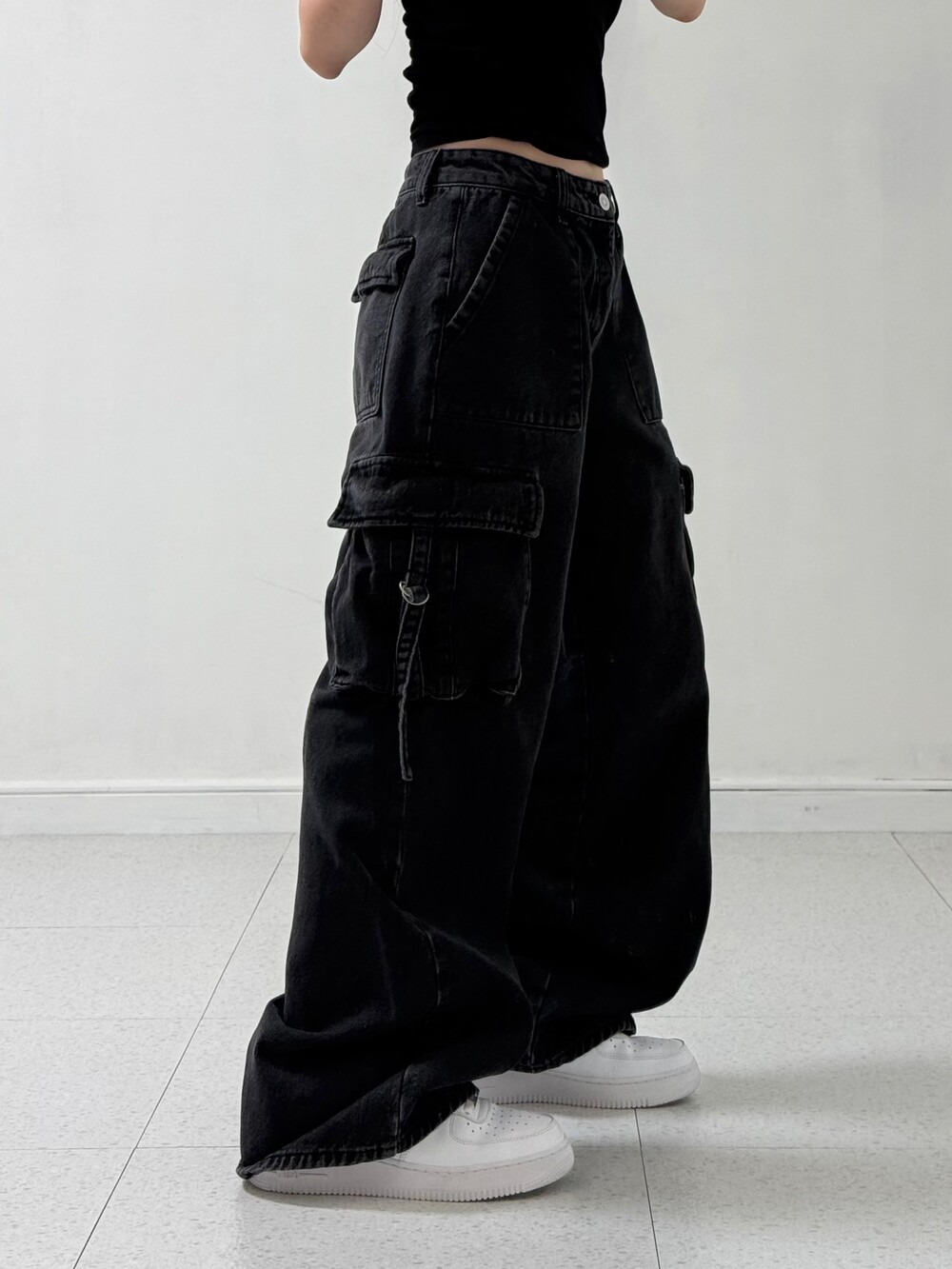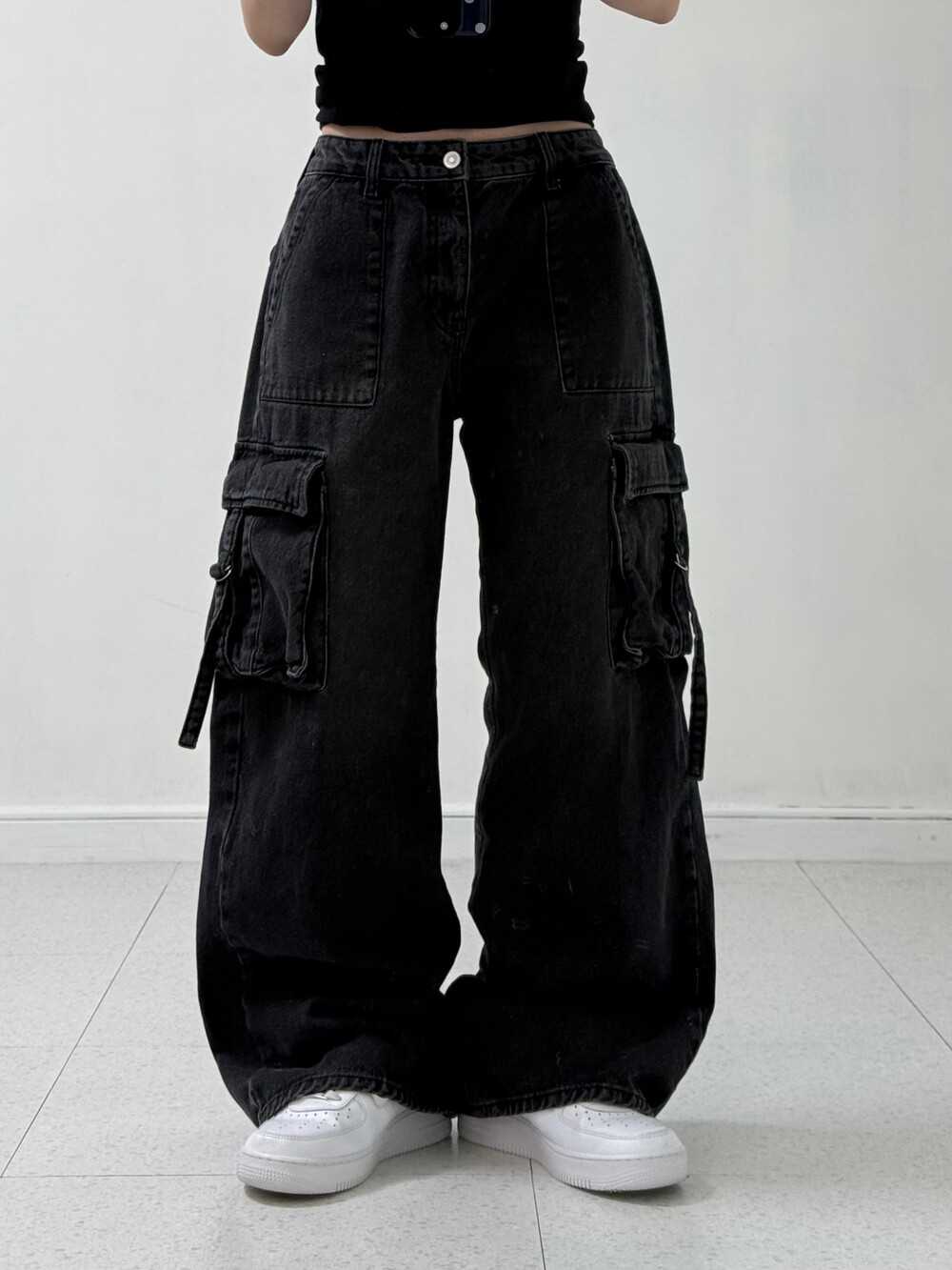 •묵직하게 떨어지는 실루엣이 너무 예쁜 흑청카고팬츠에요! 기장감이 길지 않아서 키작요정님들께서 스윽 입어주시면 좋을것같아요>< 디자인도 예쁜데 기장감이 엄청 길지 않은 아이템도 흔치 않아서 있을때 꼬옥 가지구 가기~~!