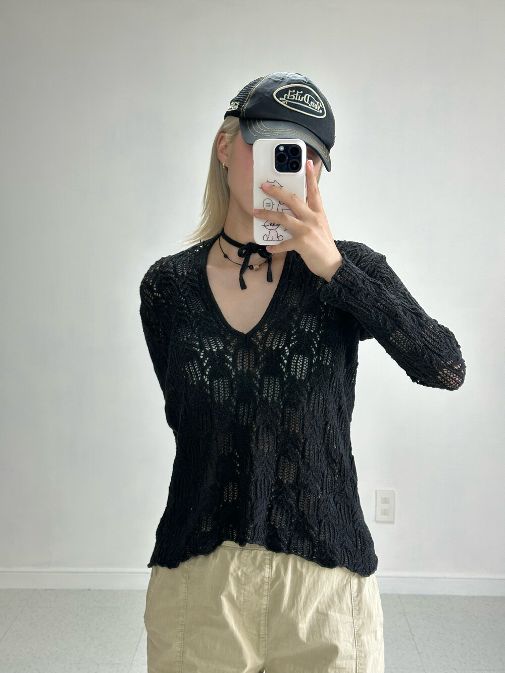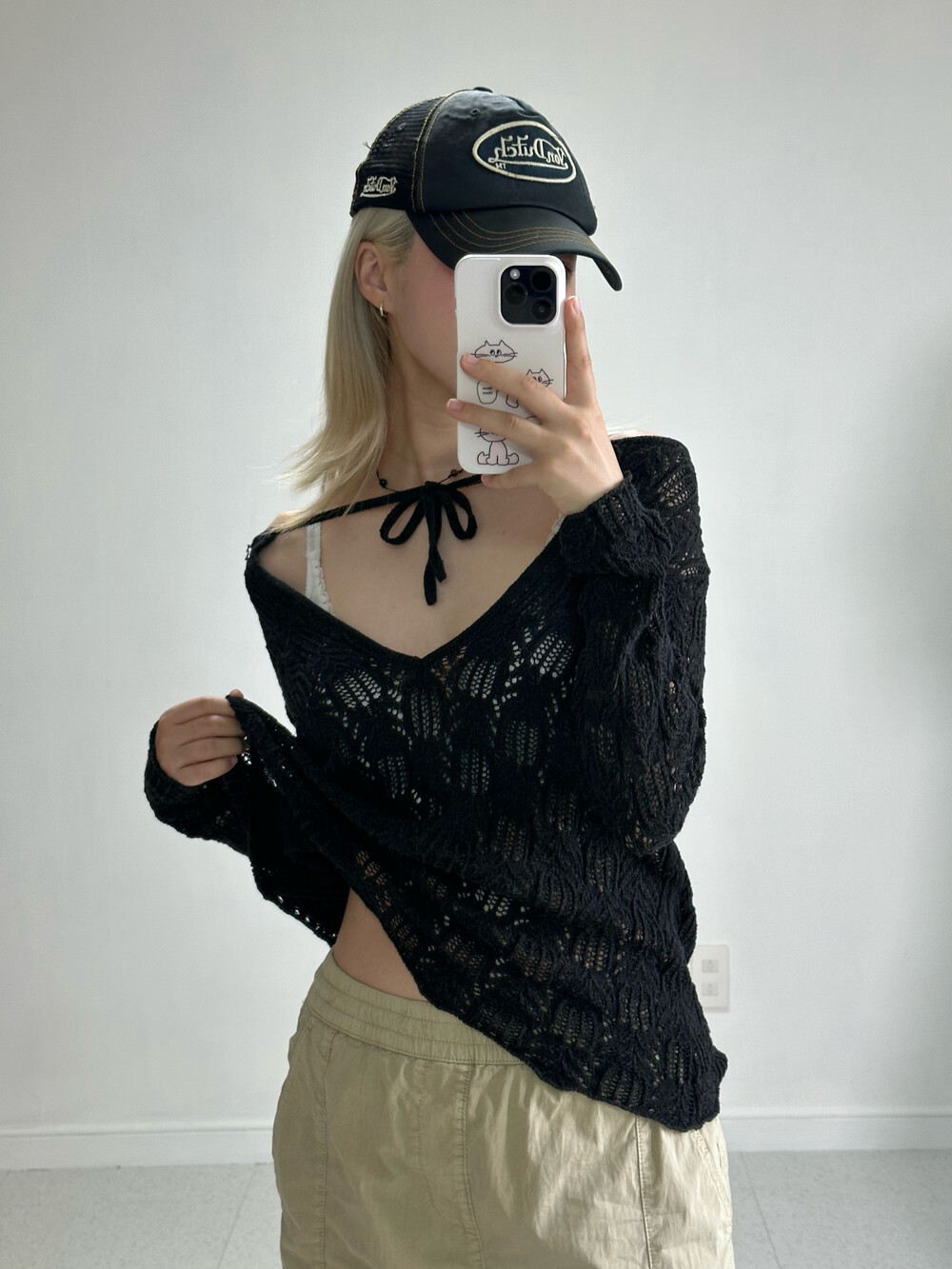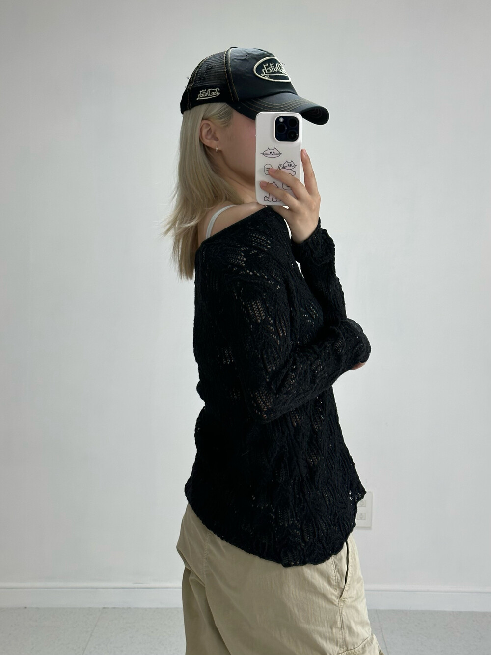 •두가지 연출방법이 가능한 크로셰 니트에요! 기장이 언발란스해 더욱 빈티지한 무드가 돋보이는 니트랍니다🖤
