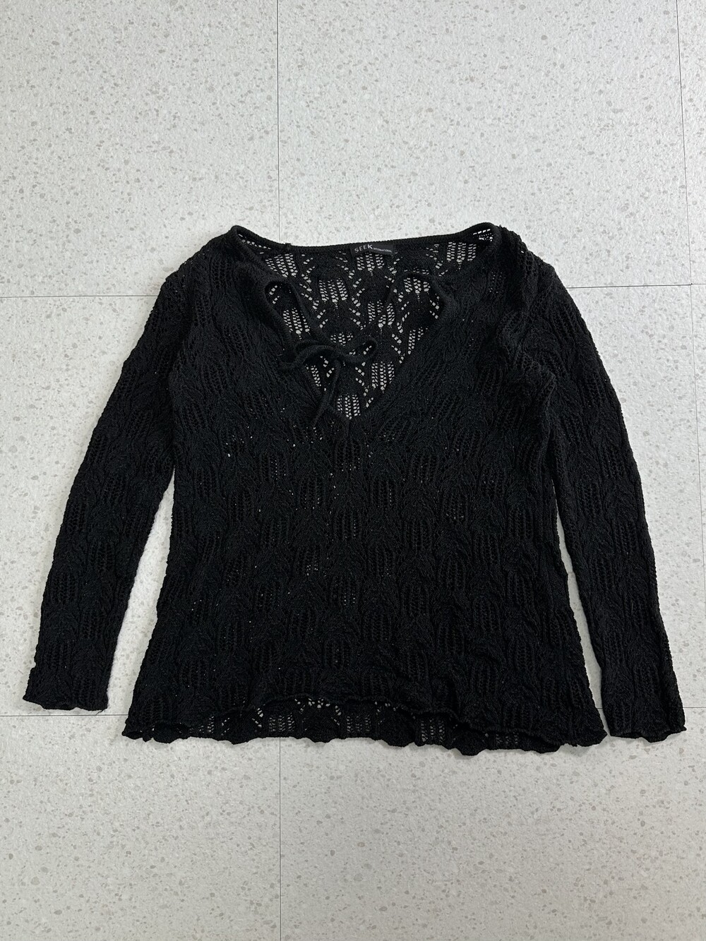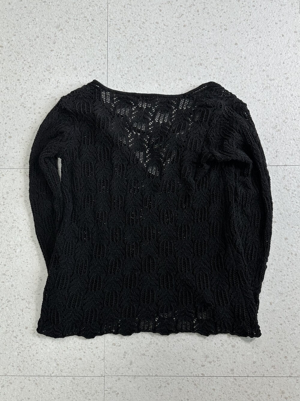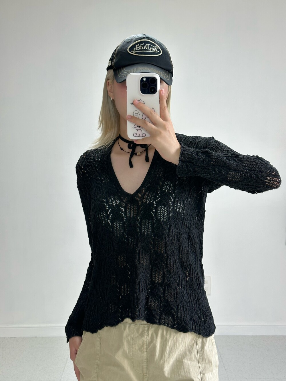 •두가지 연출방법이 가능한 크로셰 니트에요! 기장이 언발란스해 더욱 빈티지한 무드가 돋보이는 니트랍니다🖤