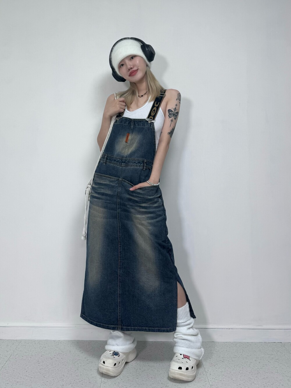 •저번에 동일한 디자인으로 오버롤 팬츠 업데이트 했었는데! 이번에도 넘 예쁜 디자인과 핏으로 오버롤 스커트 버전으로 준비해보았어용! 밑단쪽 살짝 트임이 있어 활동성도 편하고 무난한 디자인에 포인트로 입을 수 있어 더욱 추천드리고 싶은 제품이랍니다! 맨투맨이나 롱슬리브, 후드티랑 코디해서 입어주셔도 귀엽고 사랑스러워용 🖤