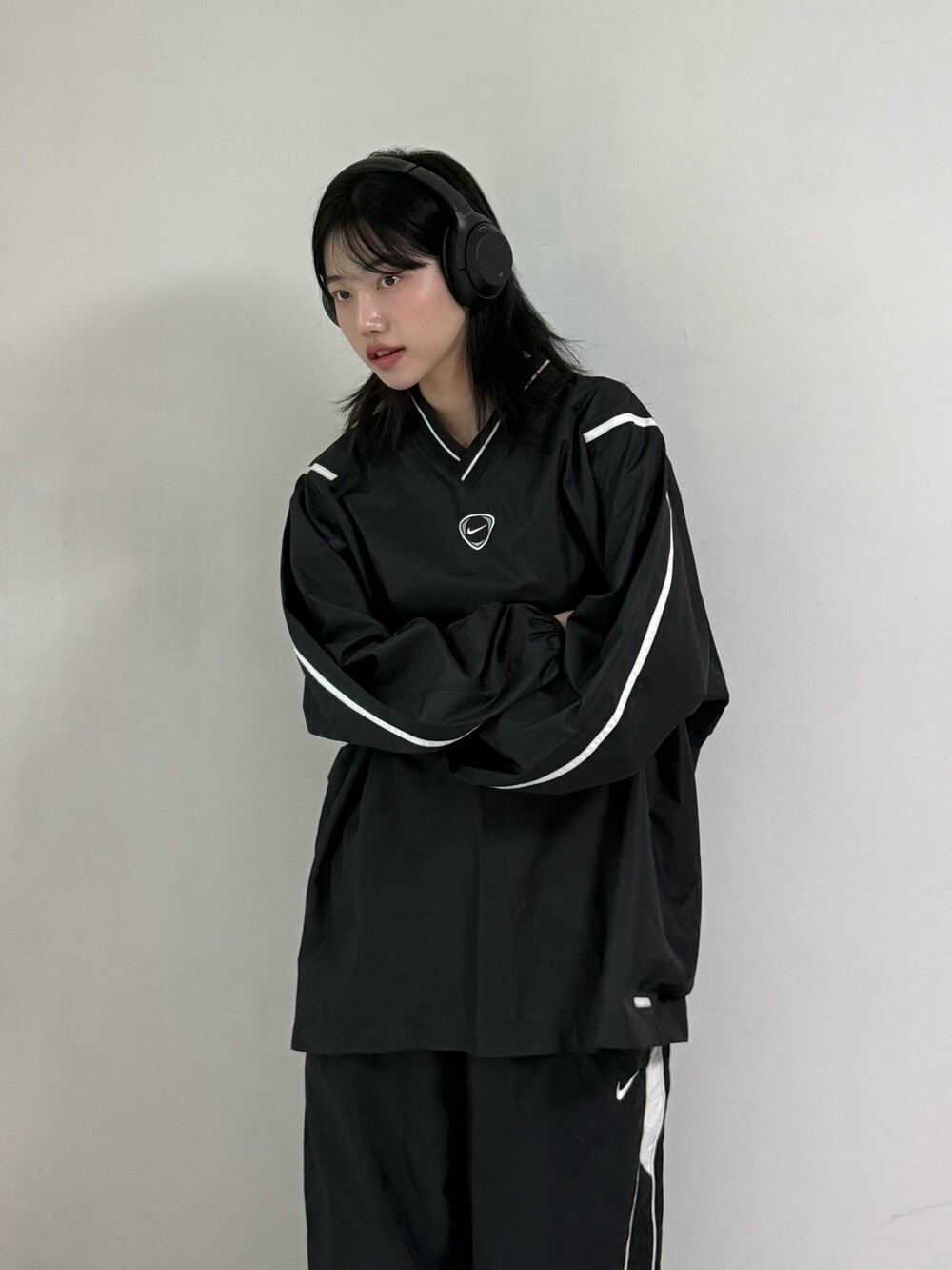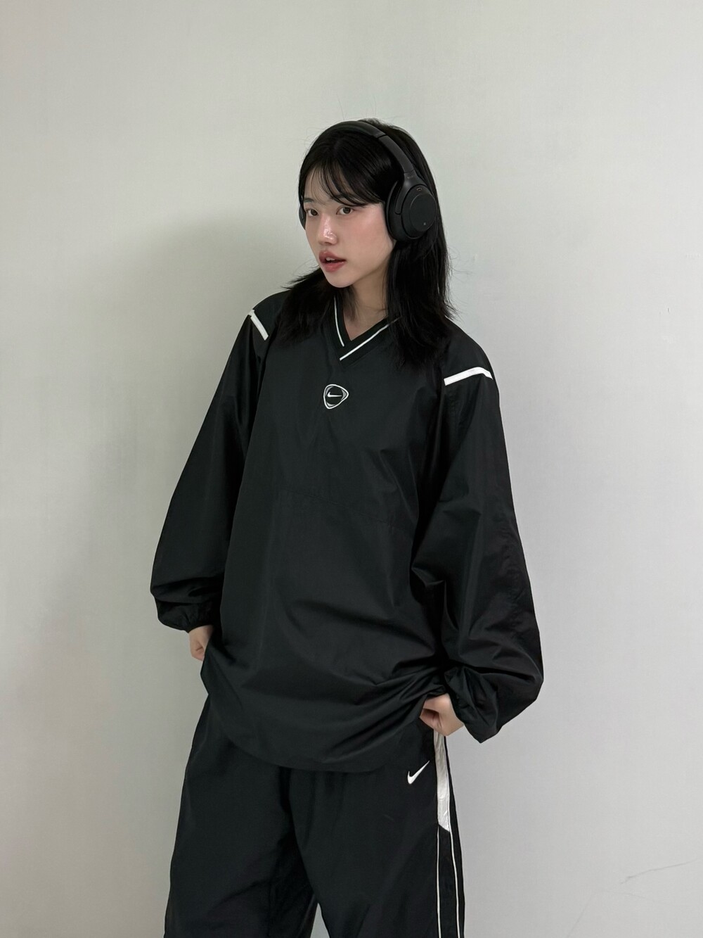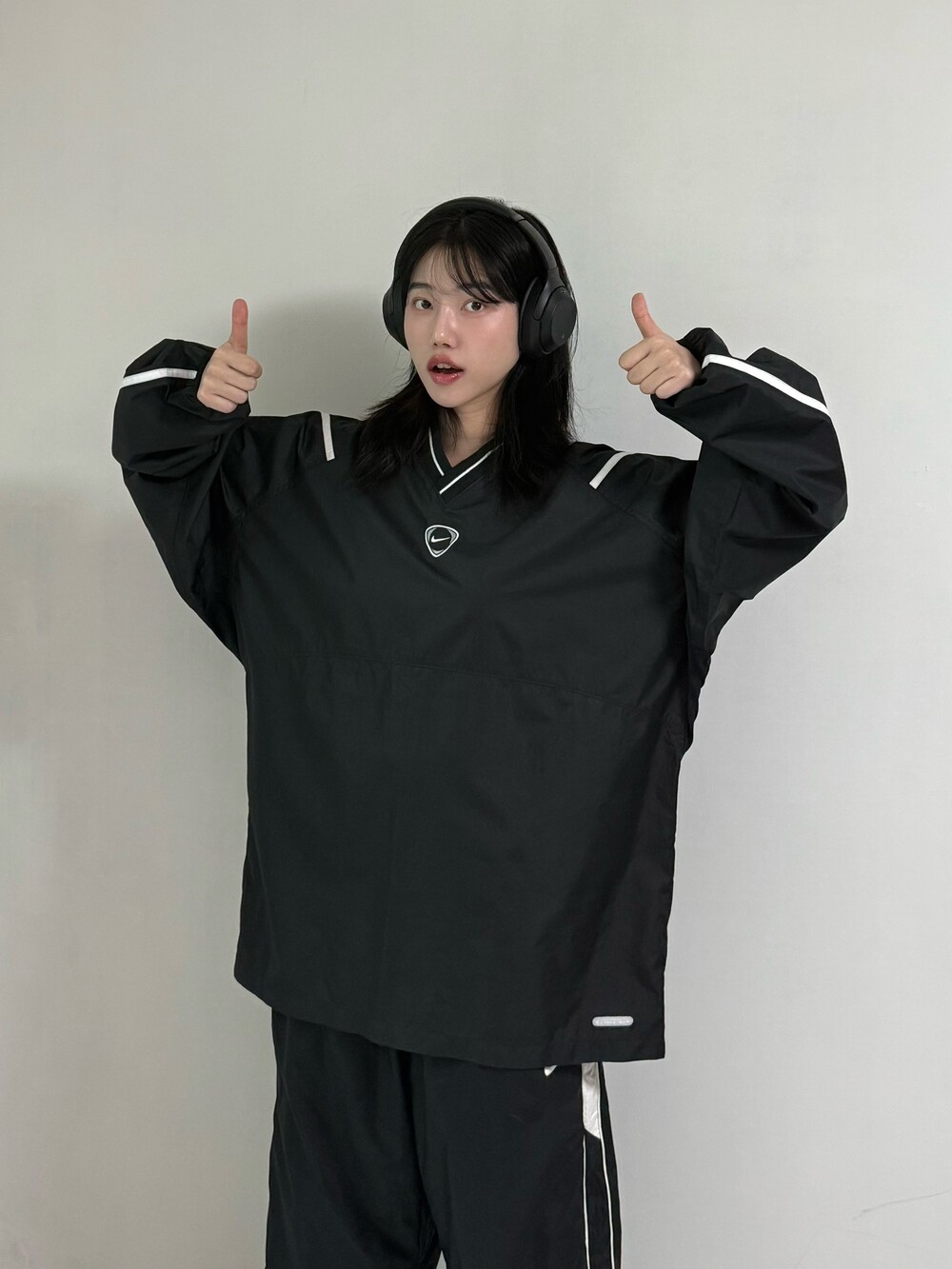 •깔끔아방 나이키 웜업! 단독으로 입어주셔도 좋고 안에 후드랑 헤이어드해주셔도 좋습니다ㅎ.ㅎ 남성분들도 충분히 오버핏으로 착용하실 수 있어요!
