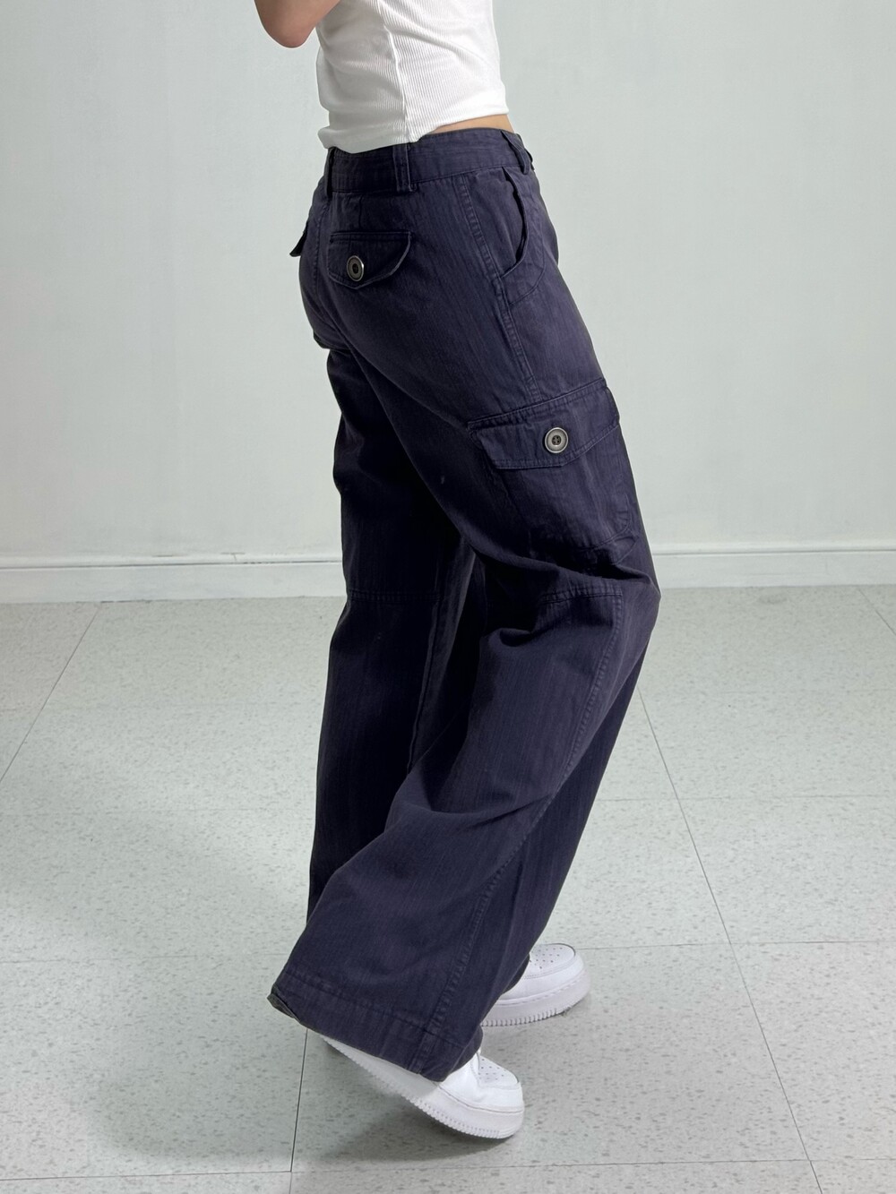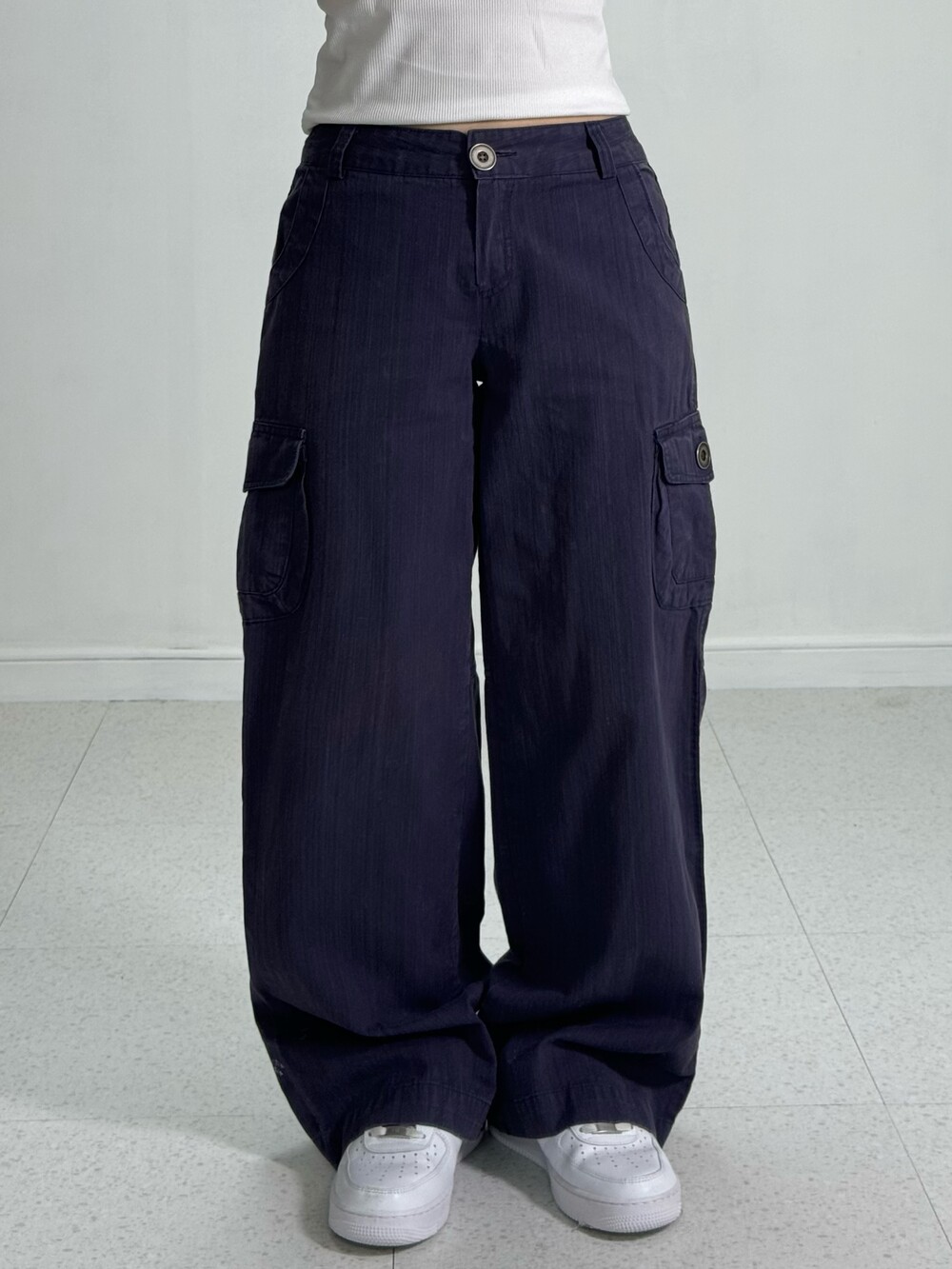 •보라빛이 낭낭하게 도는 와이드루즈 카고팬츠에요! 전체적으로 깔끔루즈 느낌이라 아주 굿 아이템 입니다