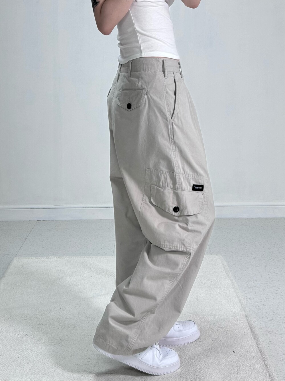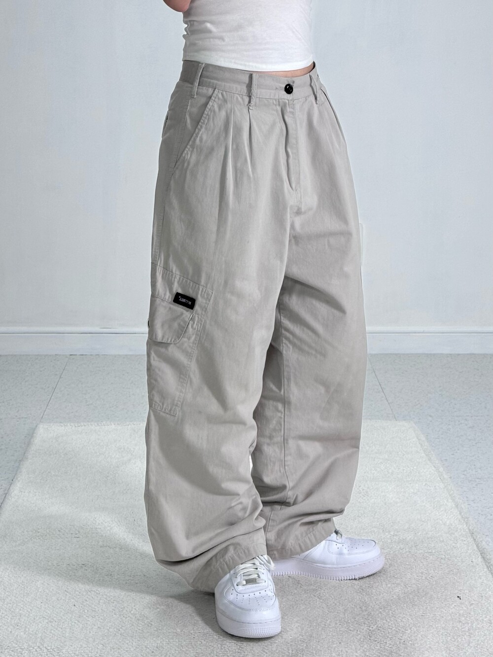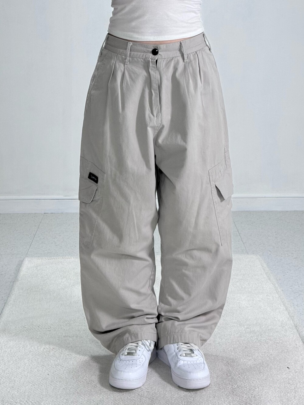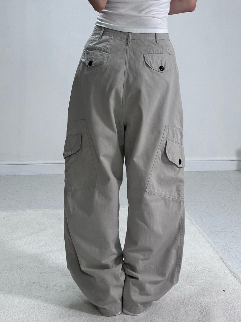 •살짝 라이트한 컬러감의 와이드루즈핏 카고팬츠에요! 투핀턱 디테일과 적당한 무게감이라 편안하고 데일리로 입어주기 좋아요!