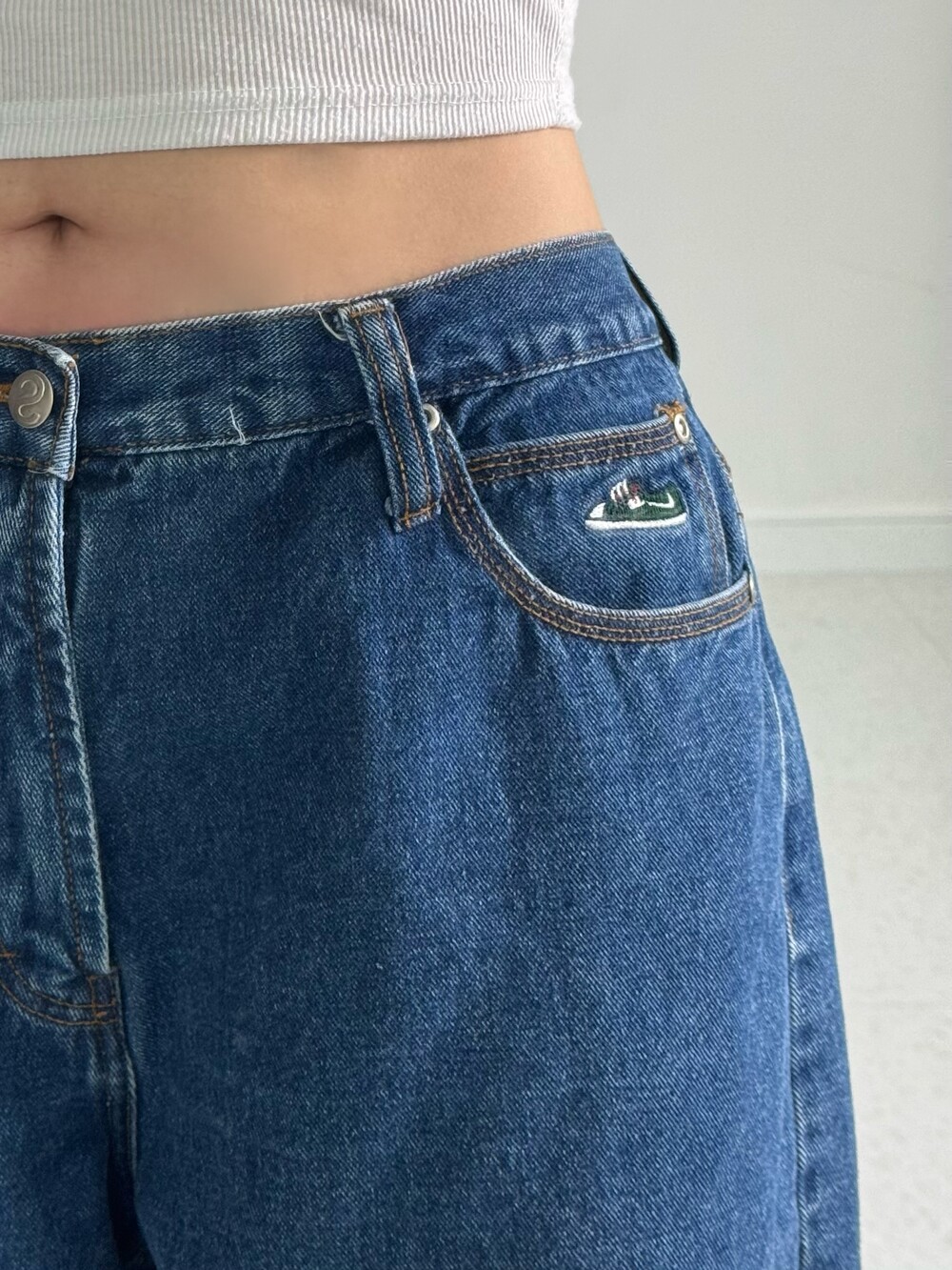 •완벽 묵직와이드 데님팬츠>,< 핏감 완전 도라방스고 특히 자수디테일로 들어간 디자인이 너무 귀여운거있죠 🖤