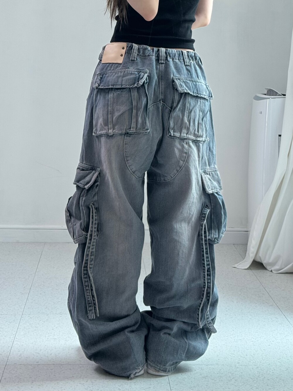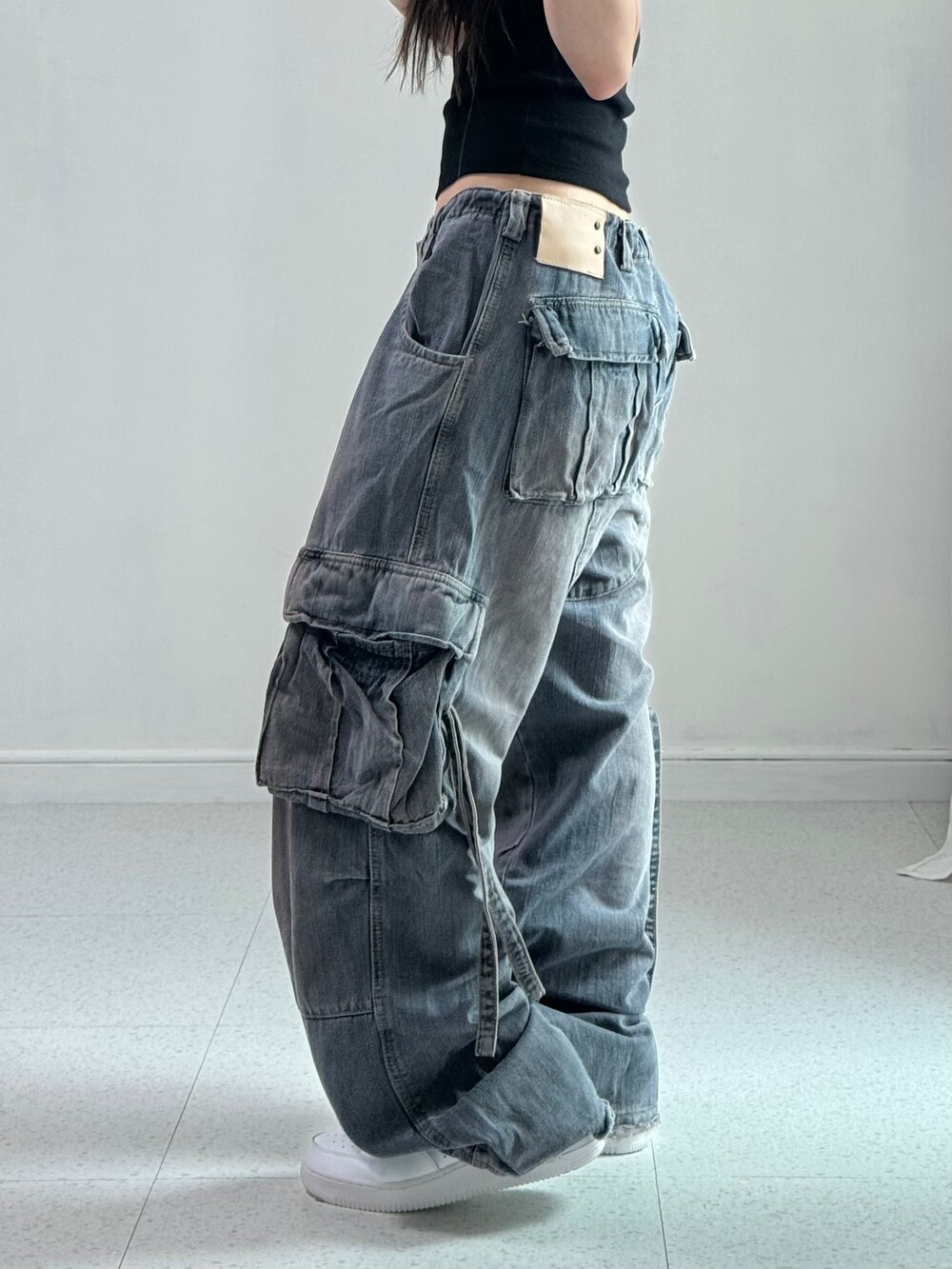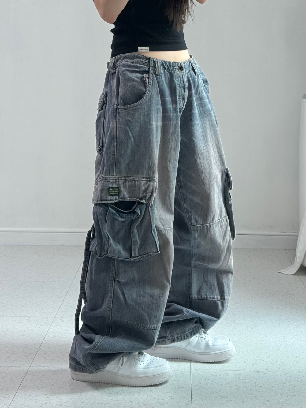 •제가 입을까 하다가 판매하는 아이입니다..ㅜㅜ 적당한 와이드루즈묵직함과 데님인데 은은한 저 컬러감.. 후리추리한 느낌과 포켓에 달려있는 스트랩 디테일까지!! 앞에도 넘 예쁘지만 뒤에 디테일이 대박인듯하오..