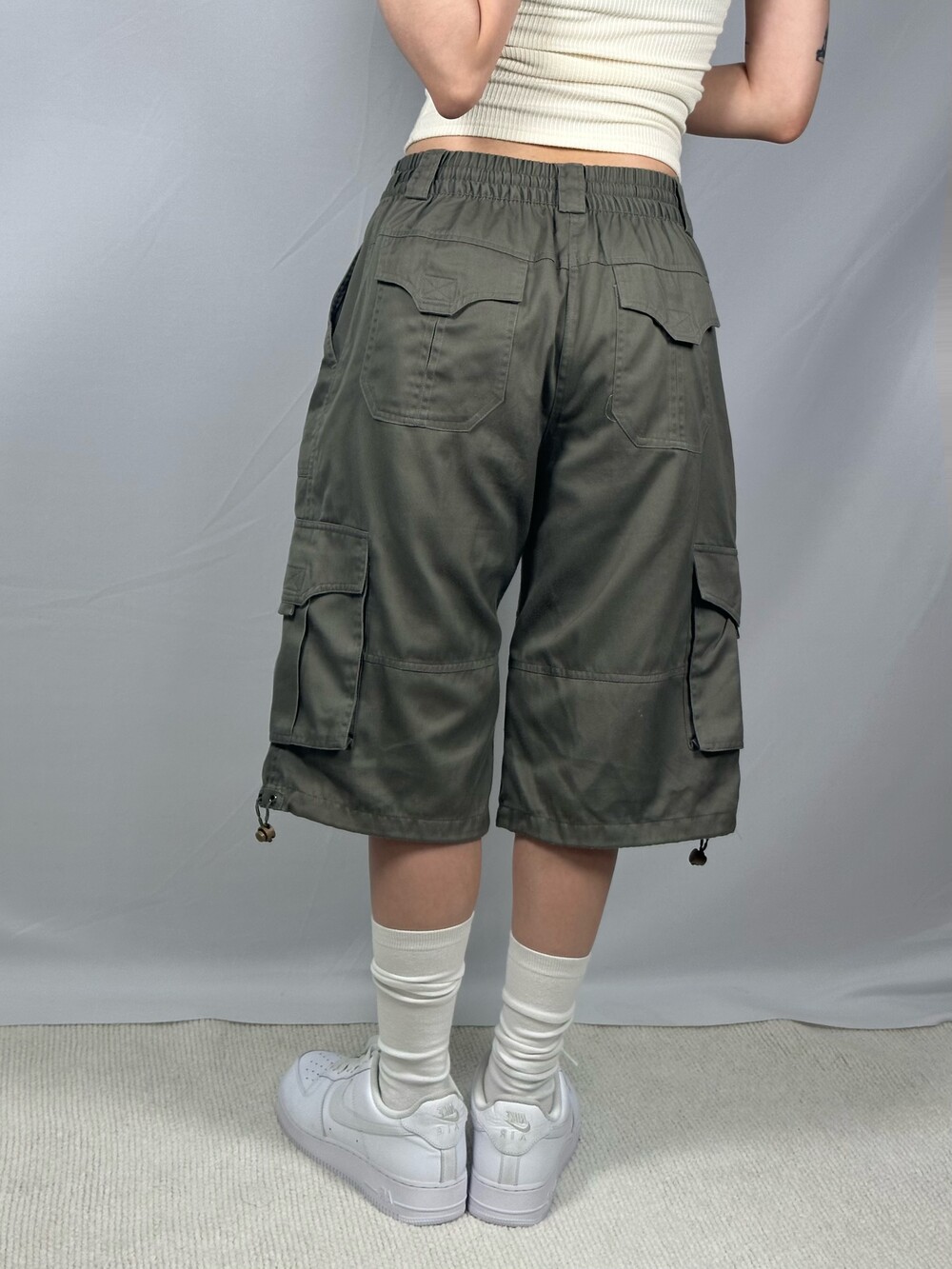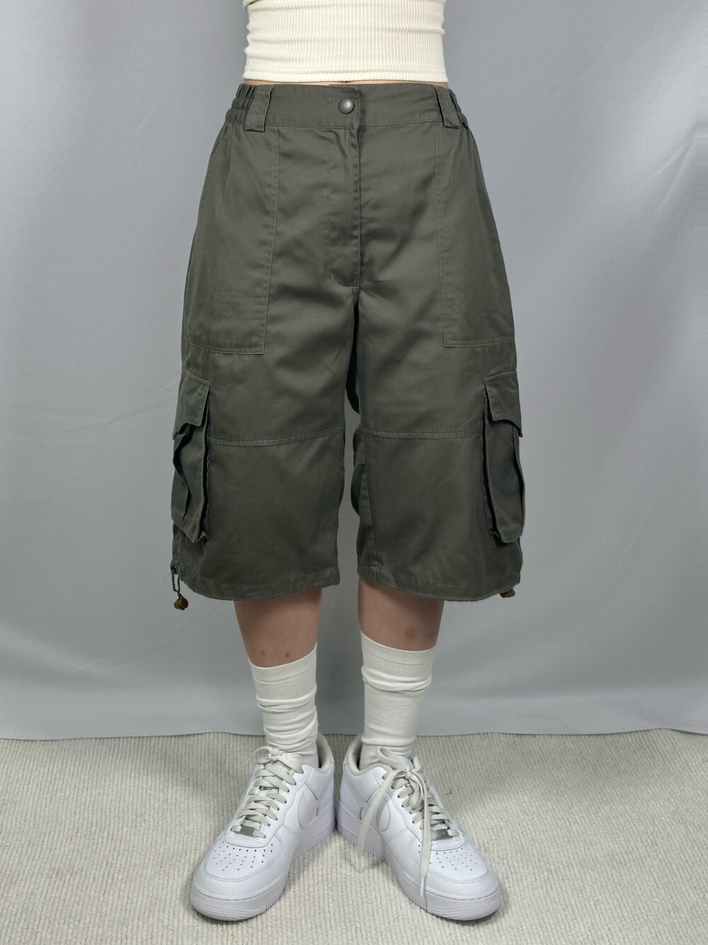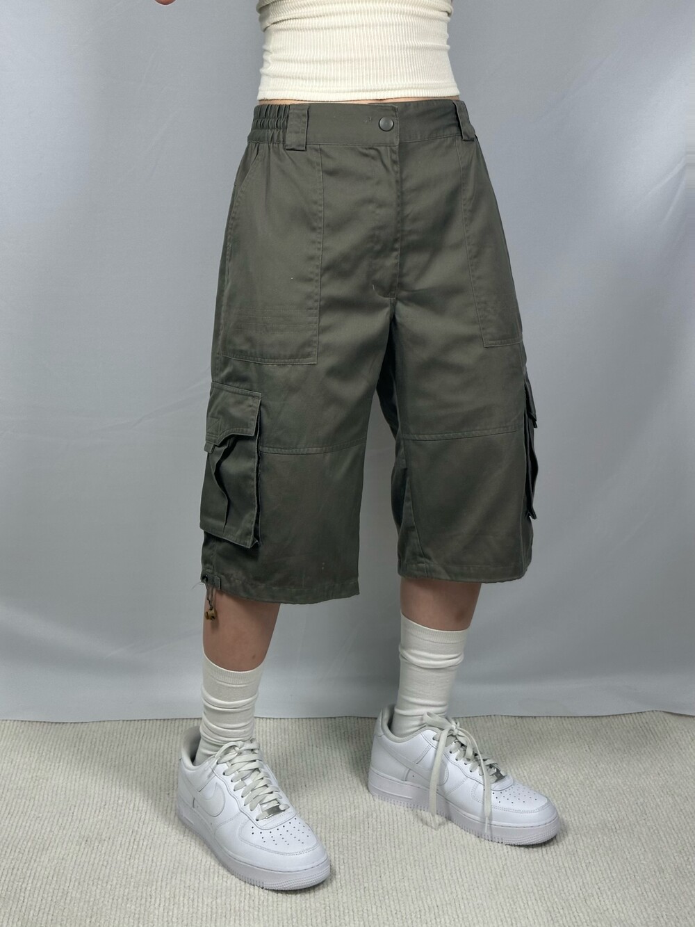 Loose fit khaki half cargo pants