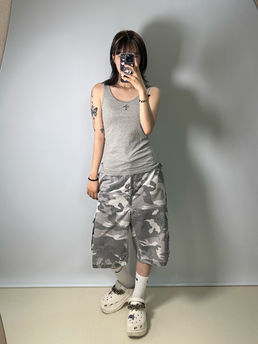 •밝은 카모 디자인이라 더워보이지도 않고(실제로도 안더움) 루즈핏이라 툭 떨어지는 것이 정말 예쁘답니다🤍🖤