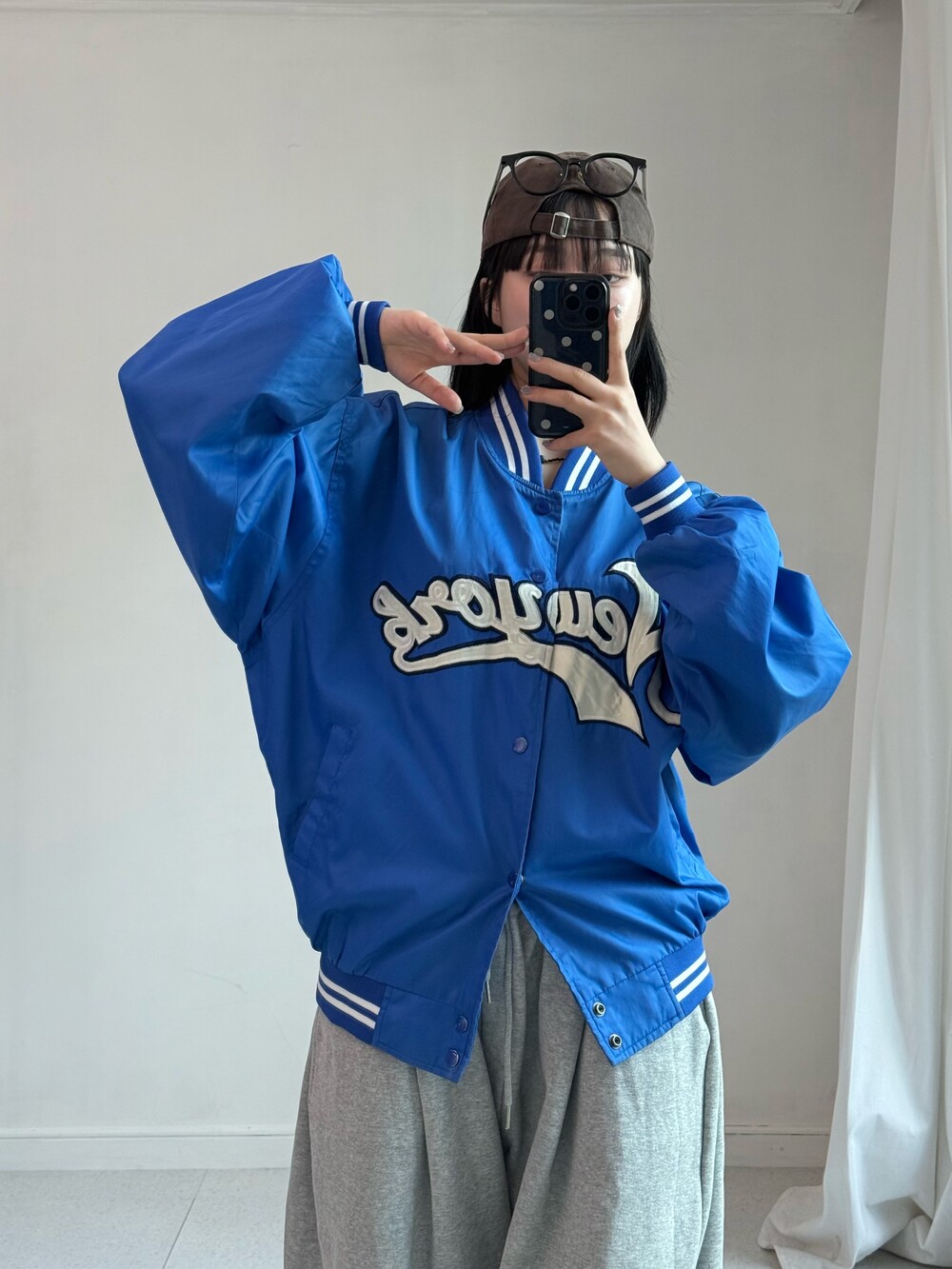 •빈티지 바시티 자켓 입니다! 색감과 디자인이 귀엽지요ㅎㅎ안에 후드와 함께 입어주시면 넘 귀여울것같아요-