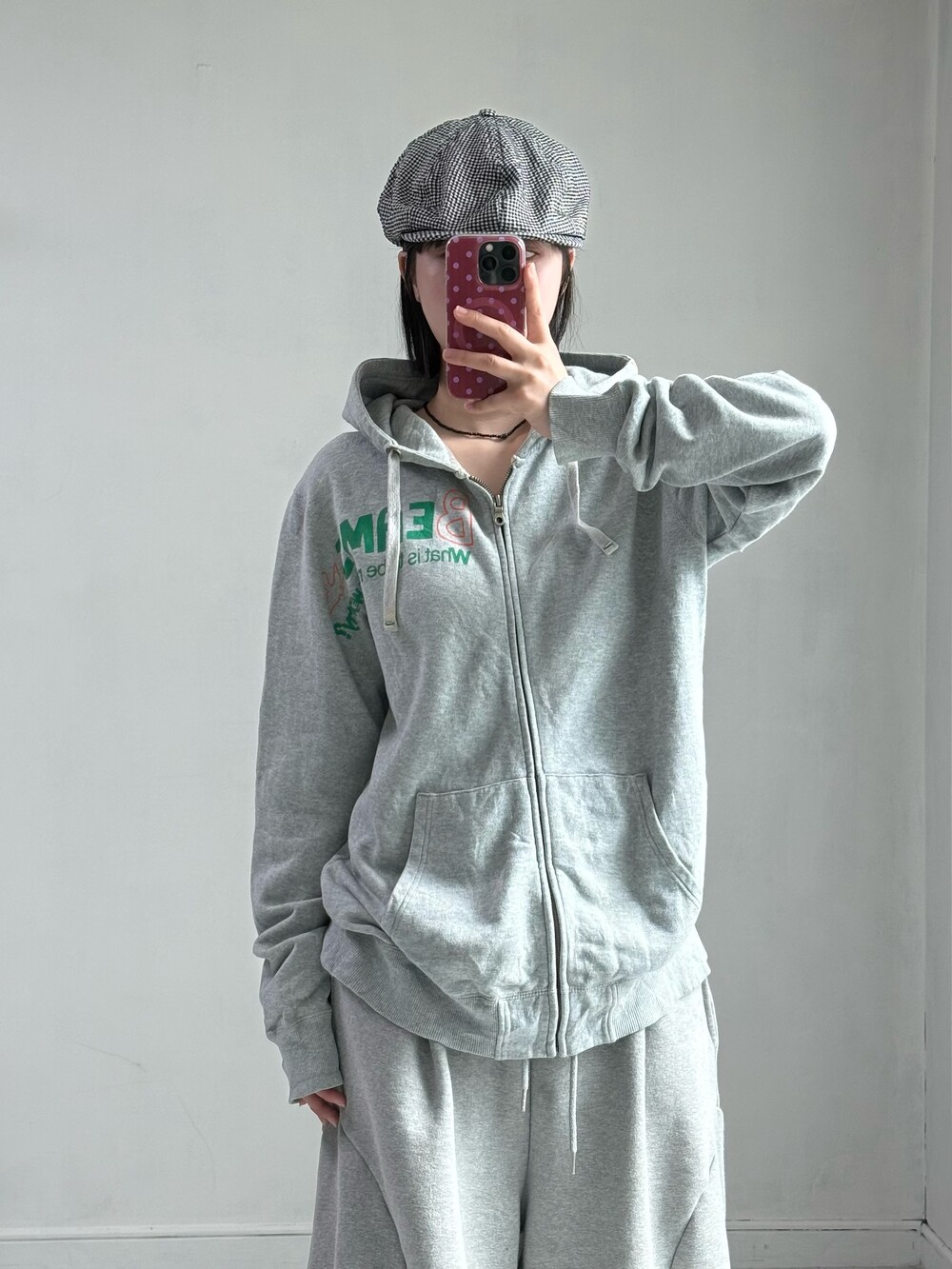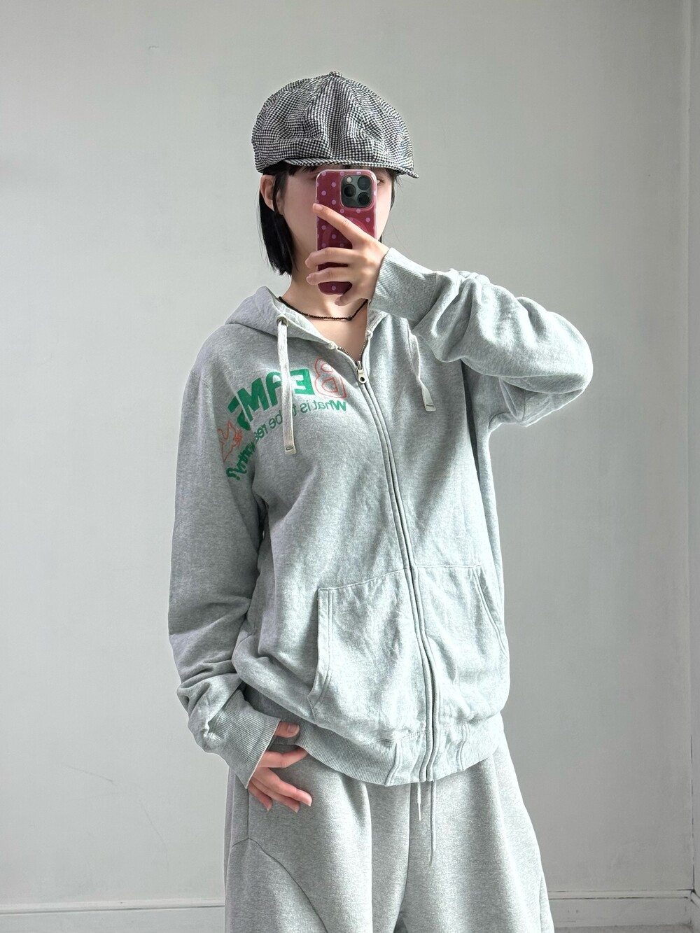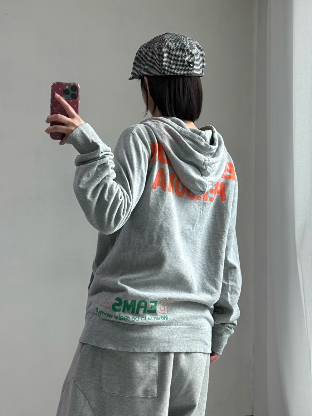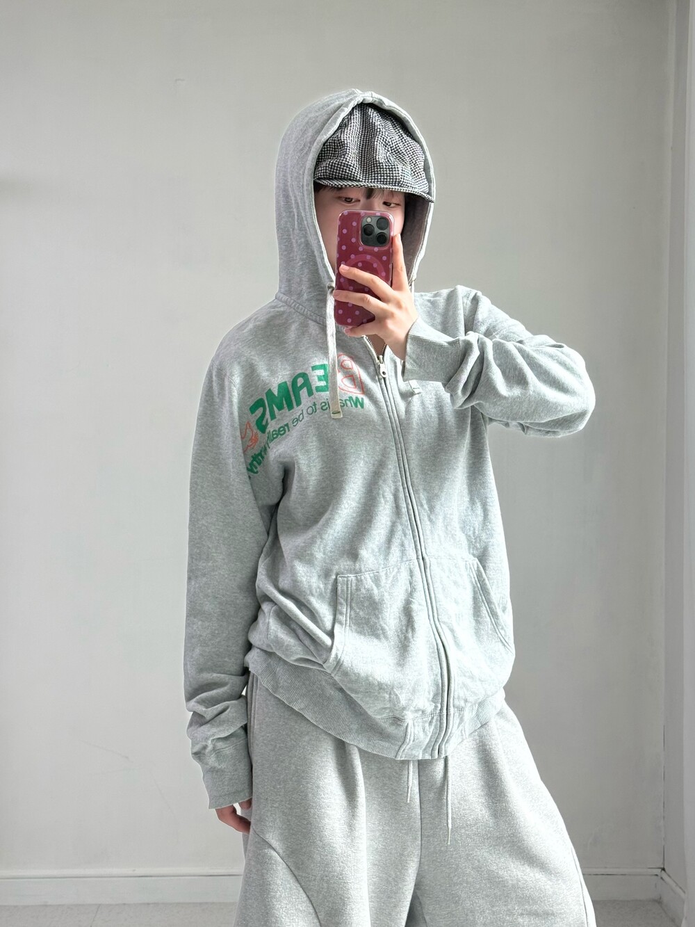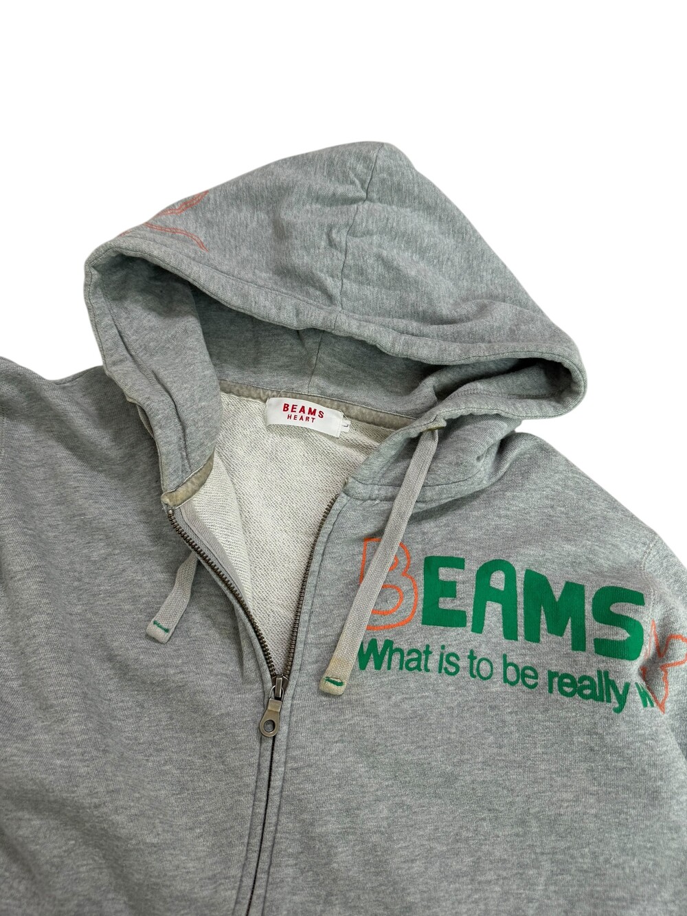 •빔즈의 하트 라인에서 출시한 그레이 후드집업 입니다. 아방루즈핏에 그린+오렌지 로고 조합이 뽀인트로 들어가있는 요물템이에요-