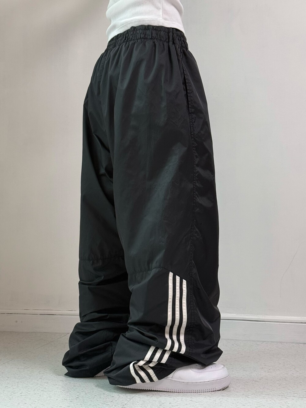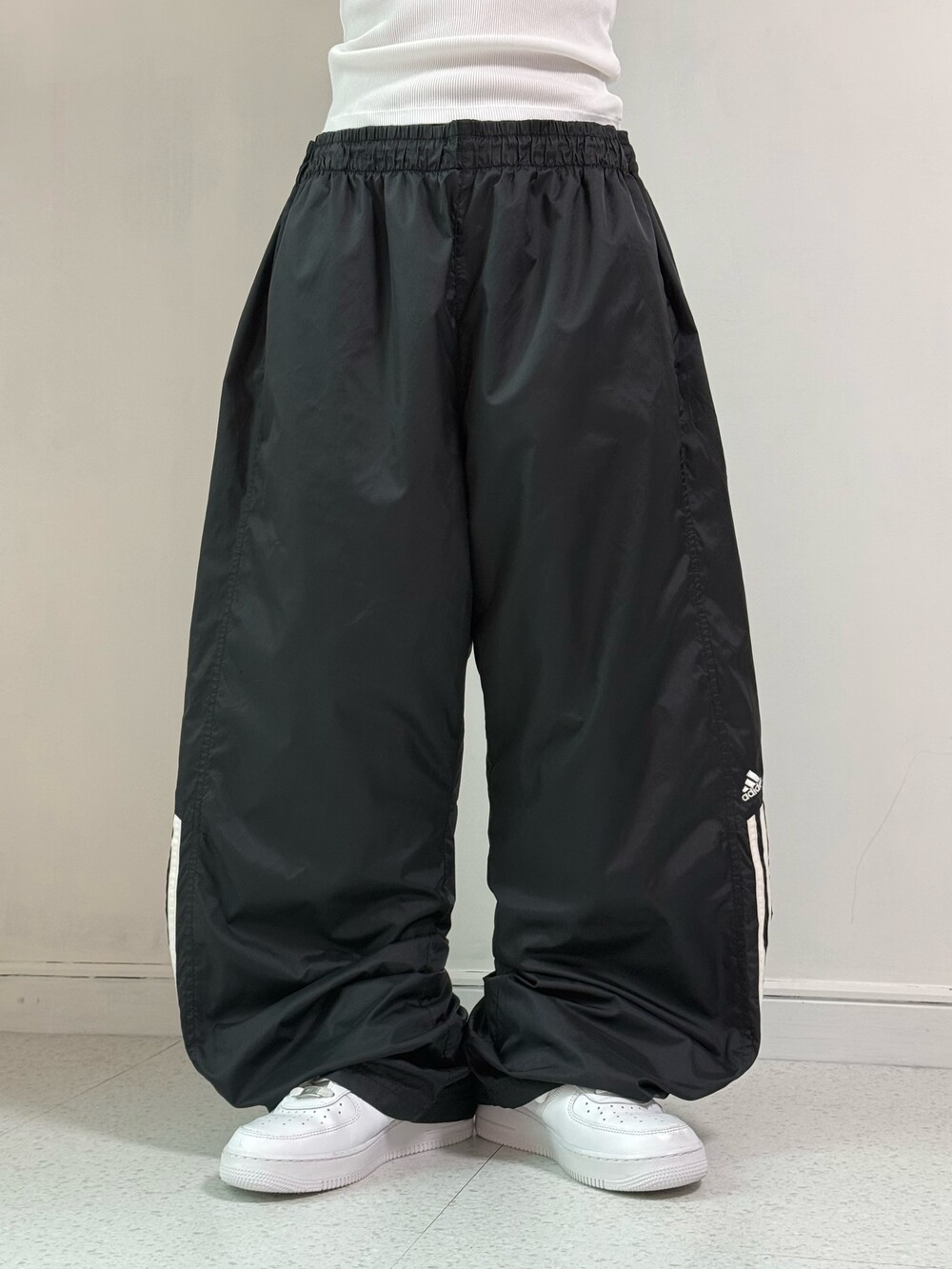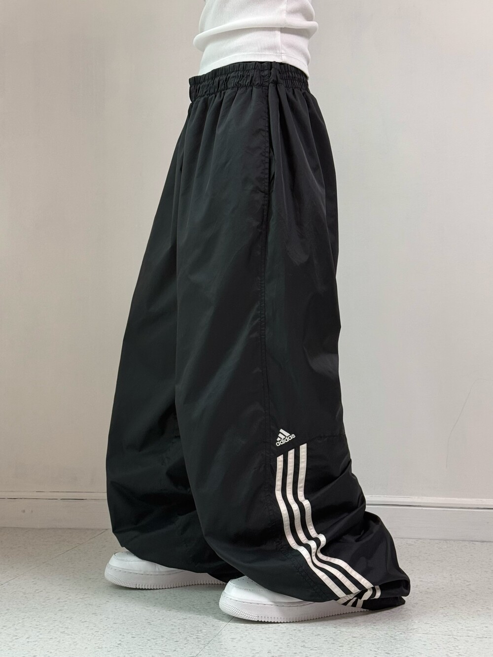 •대장급핏 아디다스 블랙 나일론 팬츠에요-! 와이드한 핏감이라 핀터무드 바로 나오는 아이템이여요ㅎㅋㅋ