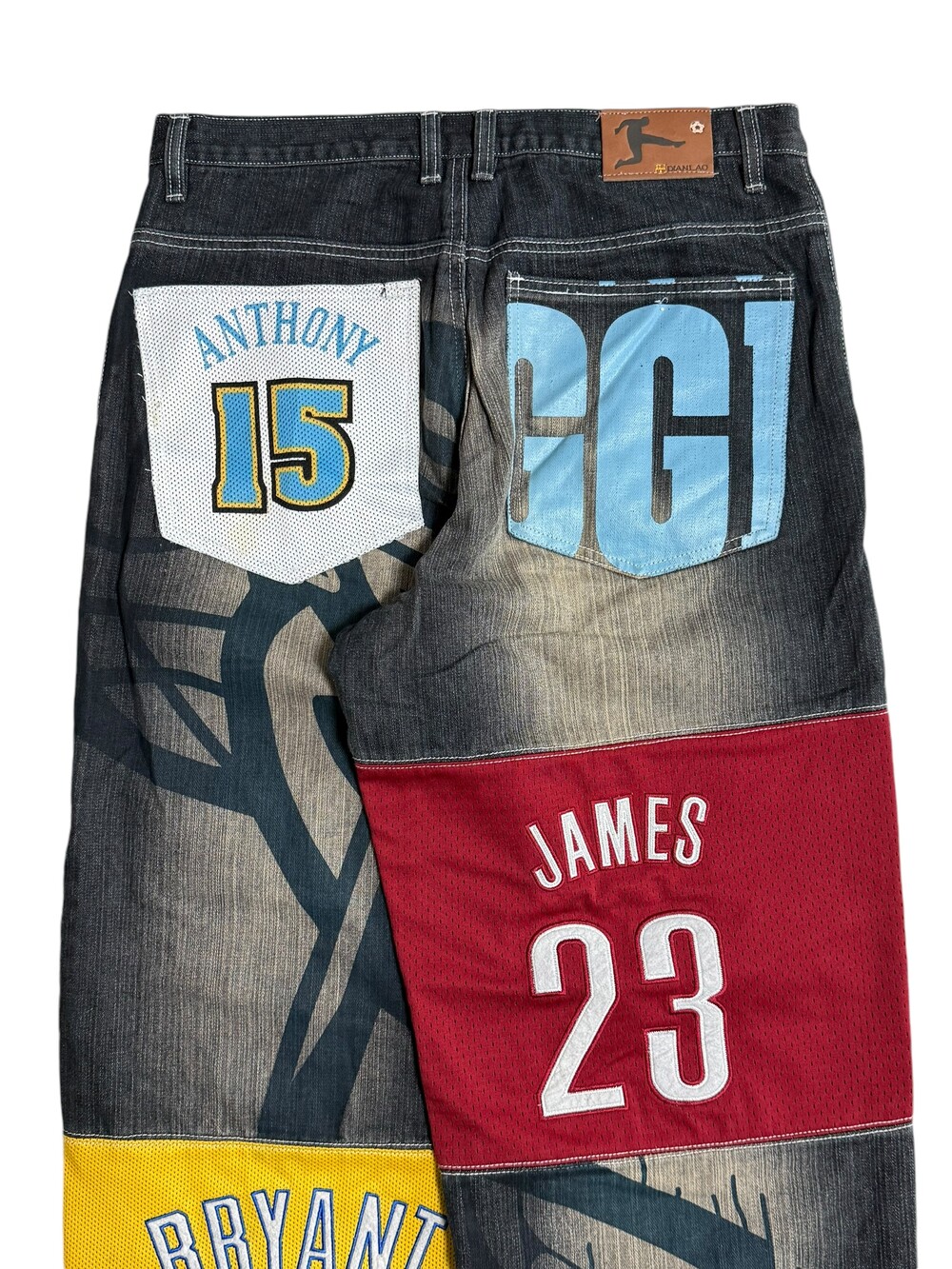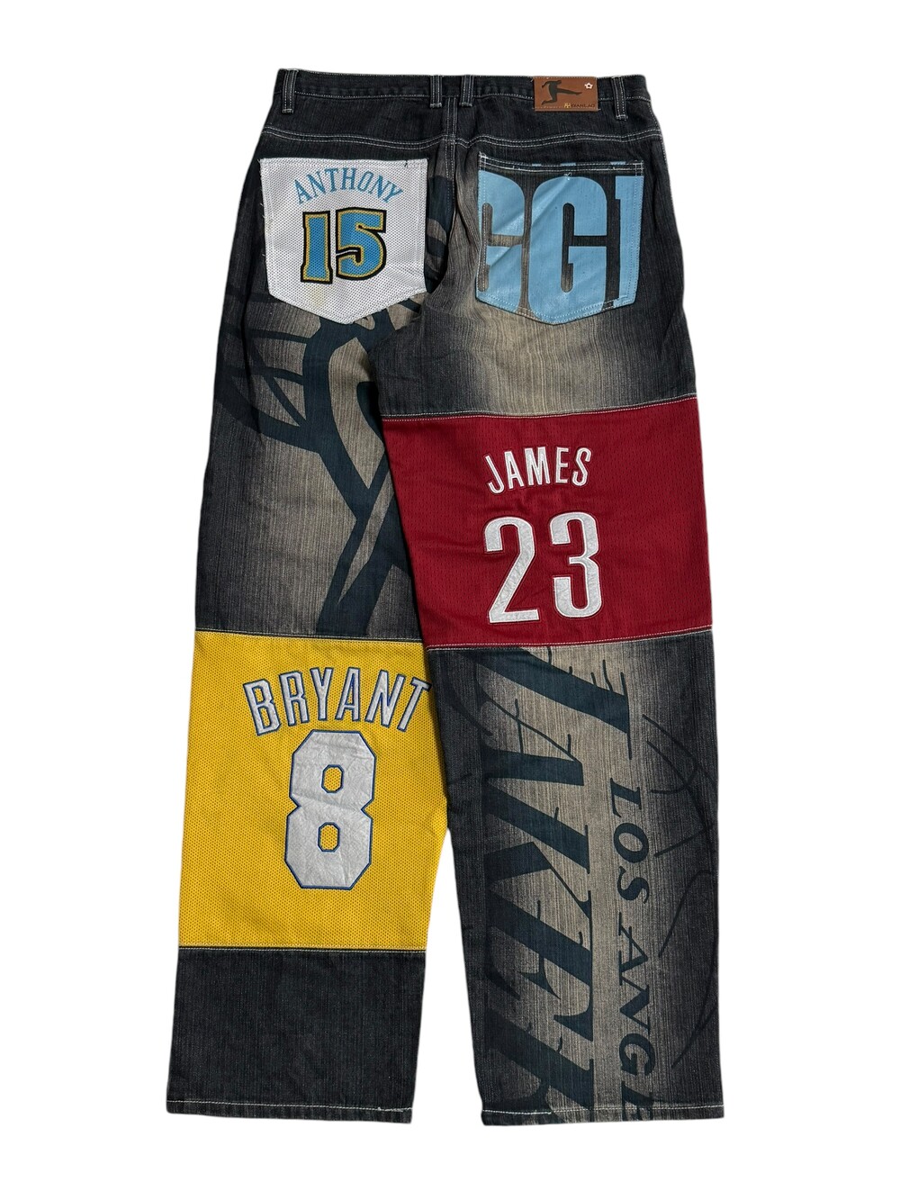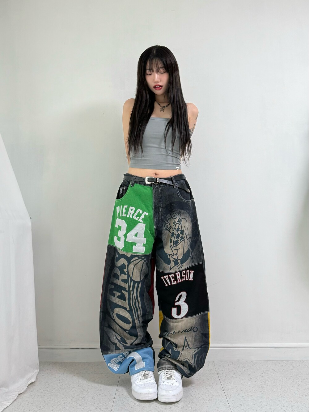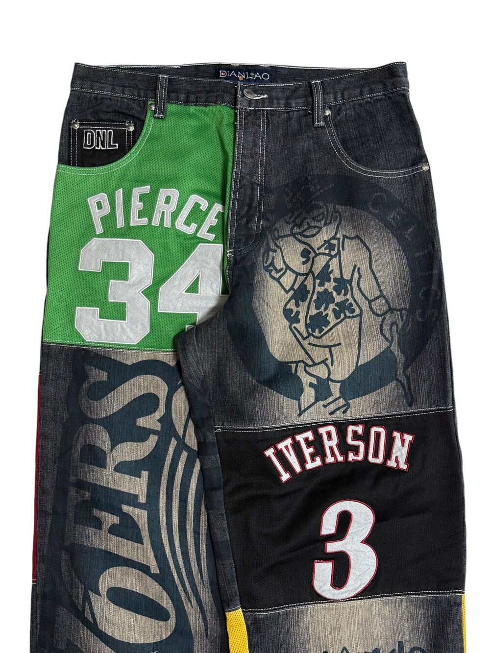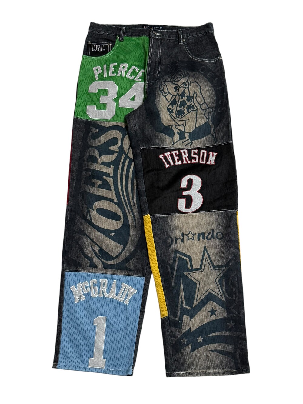 •NBA 올스타 데님 패치 팬츠에요! 디자인도 완전 유니크하고 핏도 힙해버리는 희귀 매물 팬츠에요! 밑단이 좁은편이라 기장이 길어도 바닥에 끌리지 않아서 깔끔한 밑단 유지가능 ㅎㅎㅋ!