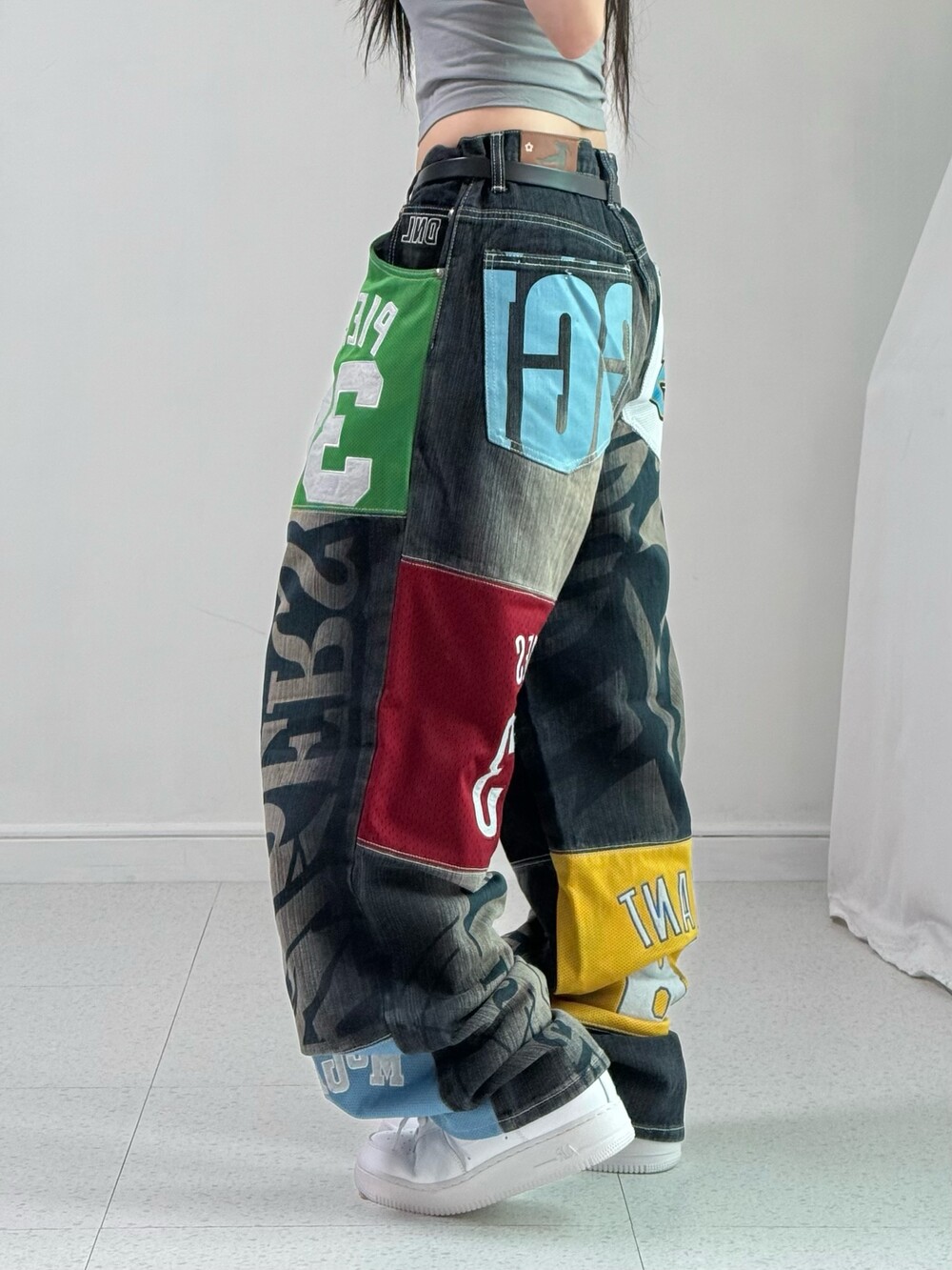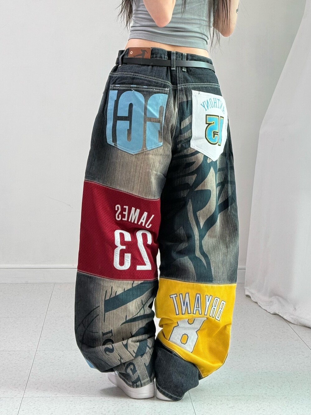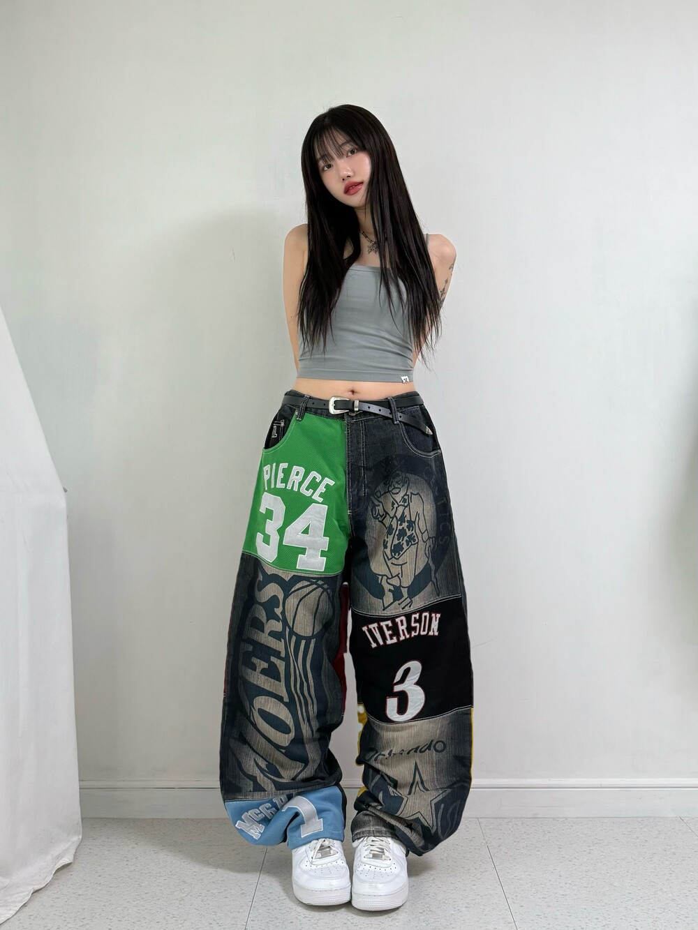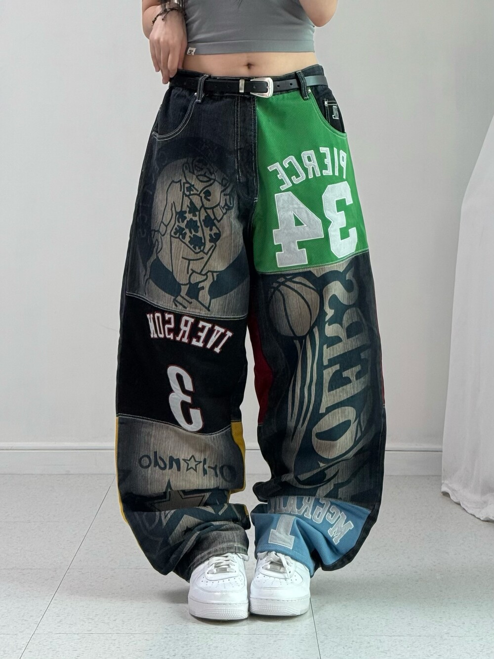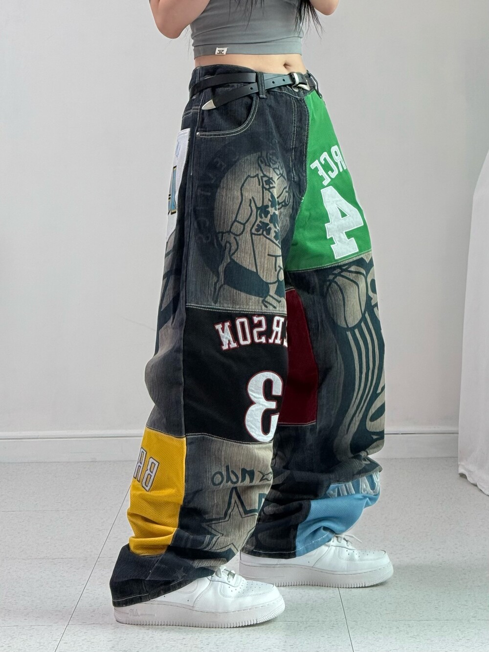 •NBA 올스타 데님 패치 팬츠에요! 디자인도 완전 유니크하고 핏도 힙해버리는 희귀 매물 팬츠에요! 밑단이 좁은편이라 기장이 길어도 바닥에 끌리지 않아서 깔끔한 밑단 유지가능 ㅎㅎㅋ!