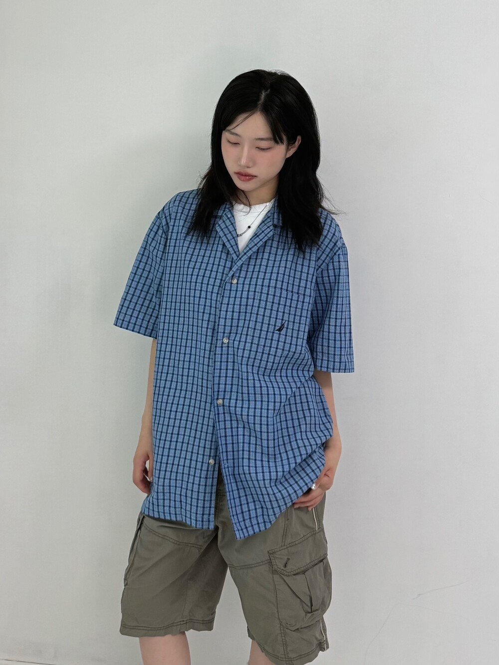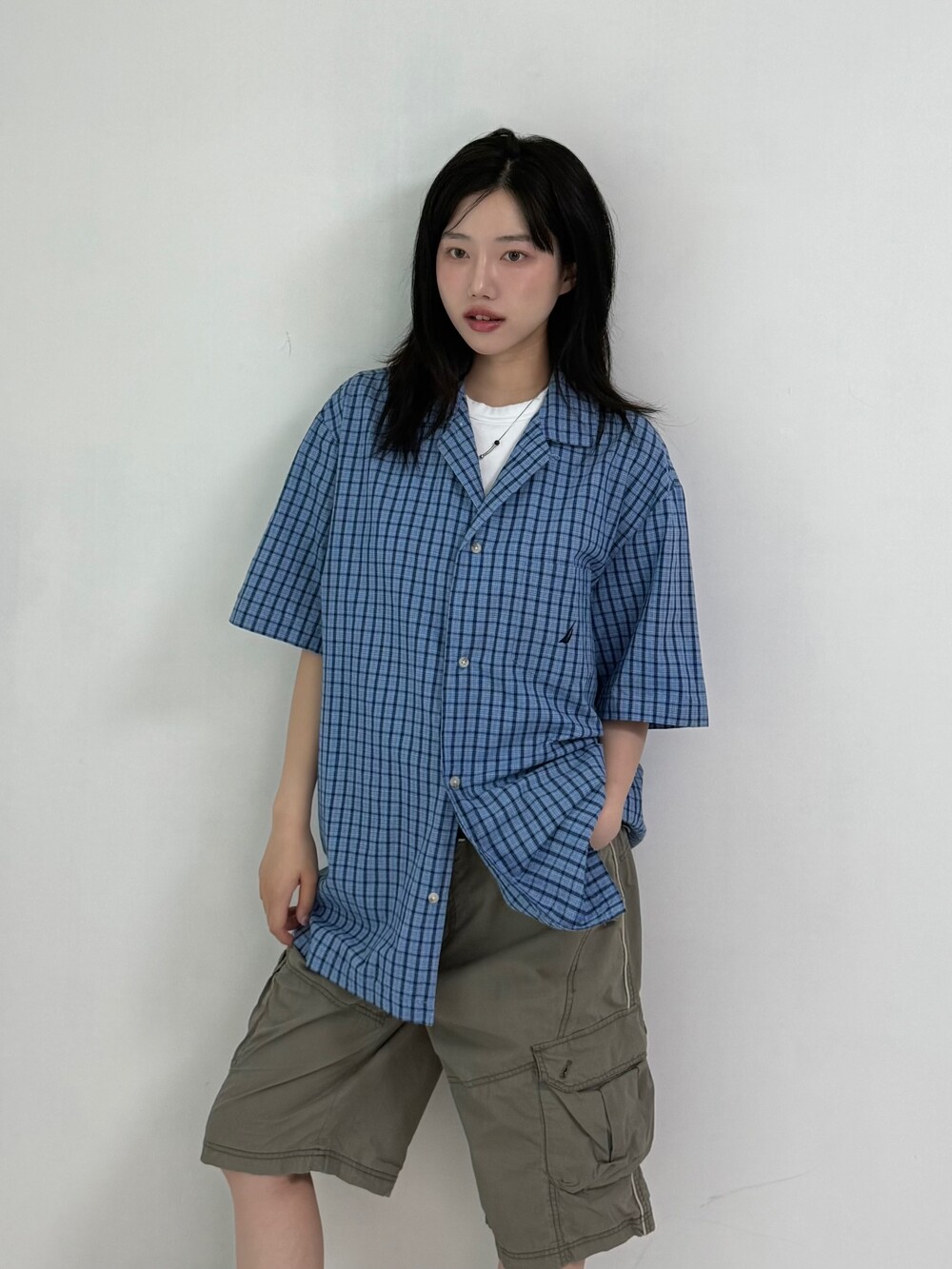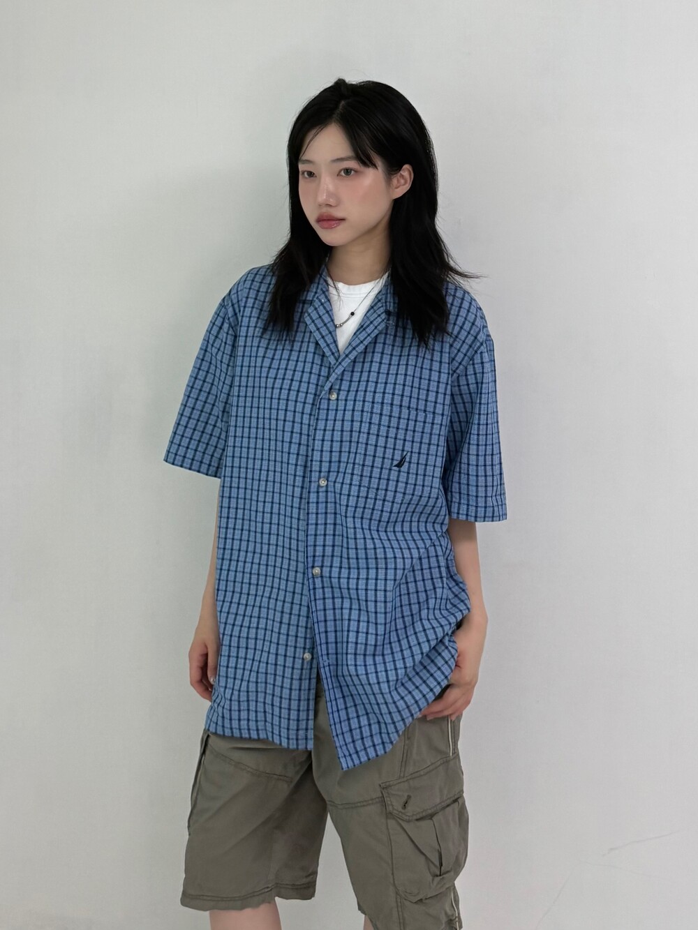 •노티카 블루 반팔체크셔츠 입니다! 여름에 시원하게 입어주시기 좋은 색감과 원단이라 추천드리고 싶어요ㅎ.ㅎ