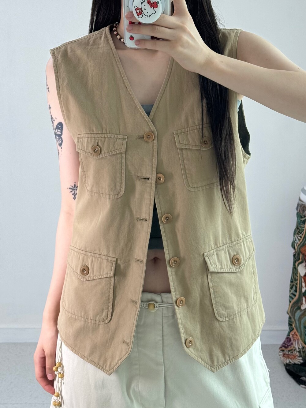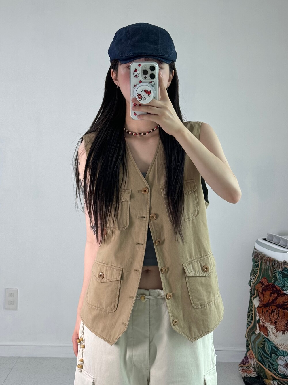 •포켓이 쫑쫑 달려있구 원단도 부드러우면서 탄탄한 고런 베스트라고 보시면 됩니다! 여름에는 안에 나시 입고 단독으로 입어주시고 가을에는 레이어드 느낌으로 입어주세효-