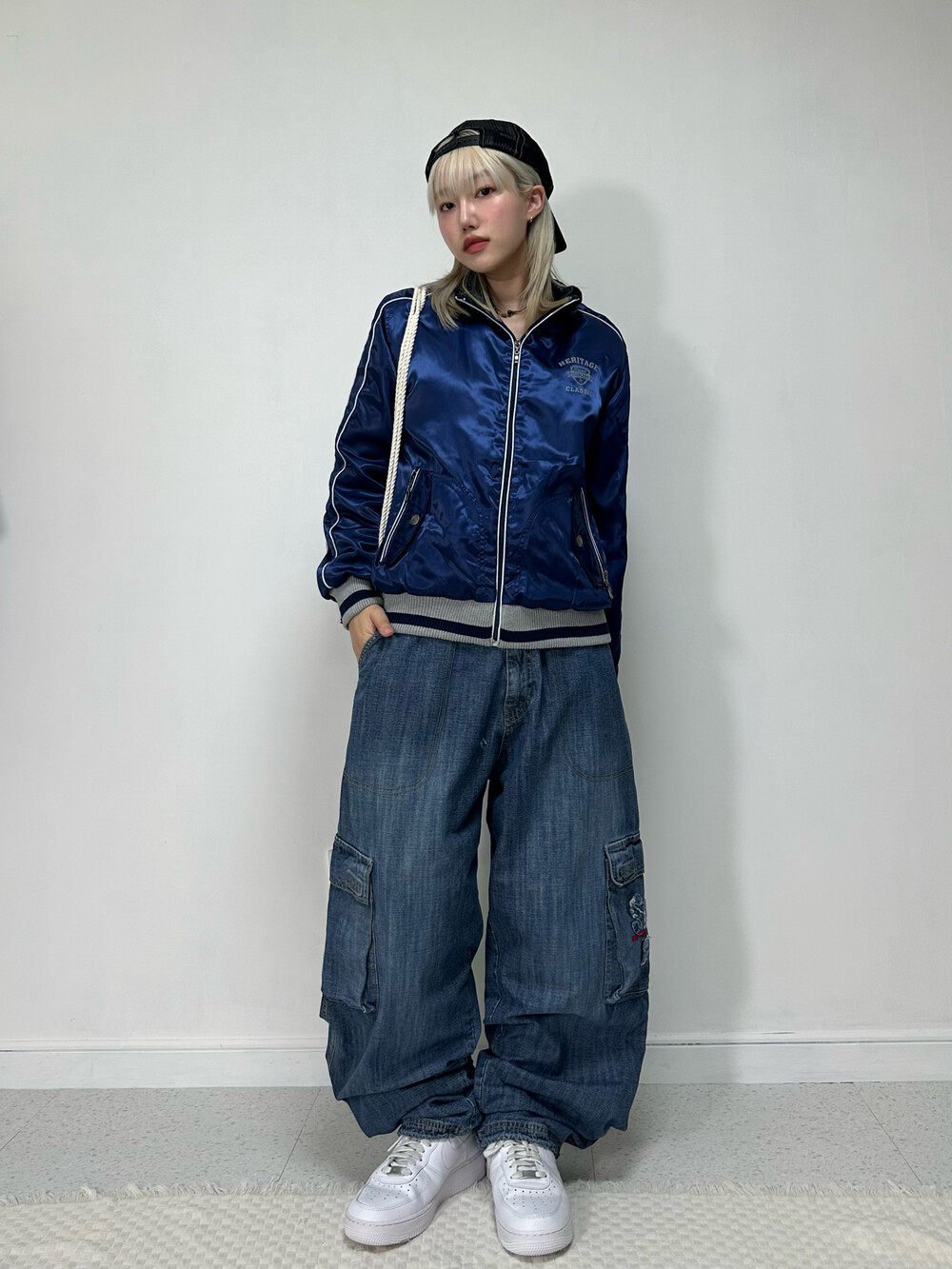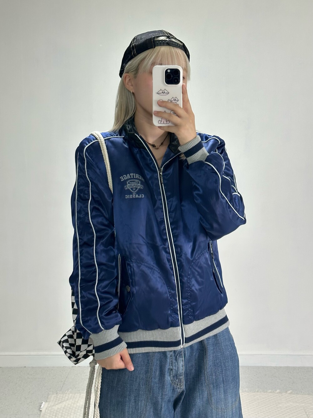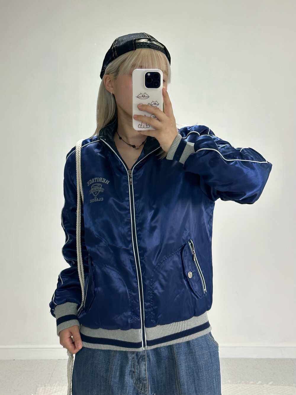 •디테일이 너무 멋진 스타디움 집업이에요! 네이비 컬러에 광택감까지 돌아 정말 멋진 제품이구요! 특히 주머니에 지퍼 디테일과 단추 디테일이 빈티지에서만 만나볼 수 있는 디자인 인거같아요- 밑단,소매 시보리는 니트원단으로 적당히 잡아줘서 착용했을때 편안함까지! 가을부터 초겨울까지 착용하시는걸 추천드려요ㅎㅎ