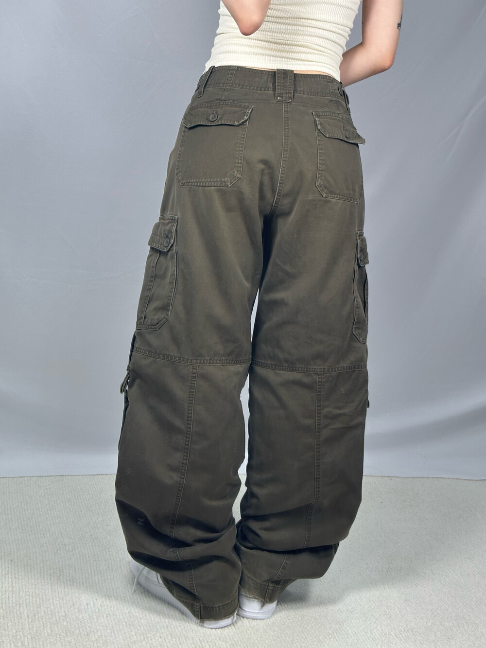 •카키컬러의 와이드 루즈핏 카고 팬츠에요! 원단이 묵직해서 각잡힌 실루엣이 정말 멋스러운 팬츠에요! 식구님들께 자신있게 추천드릴 수 있는 완전 무오데 스타일 카고 팬츠, ㅎ ㅎ