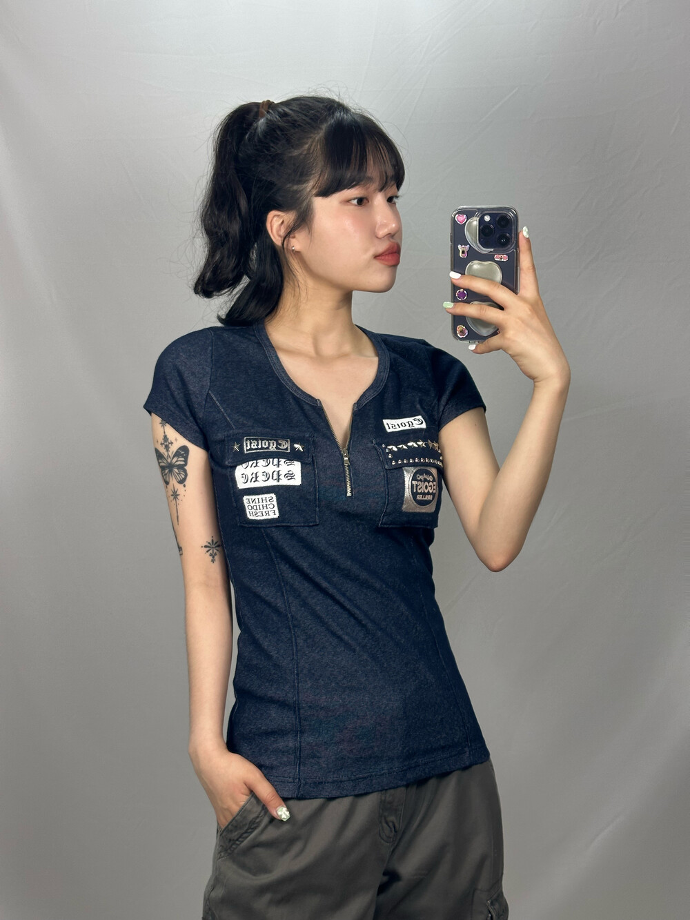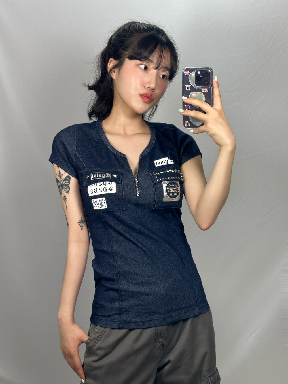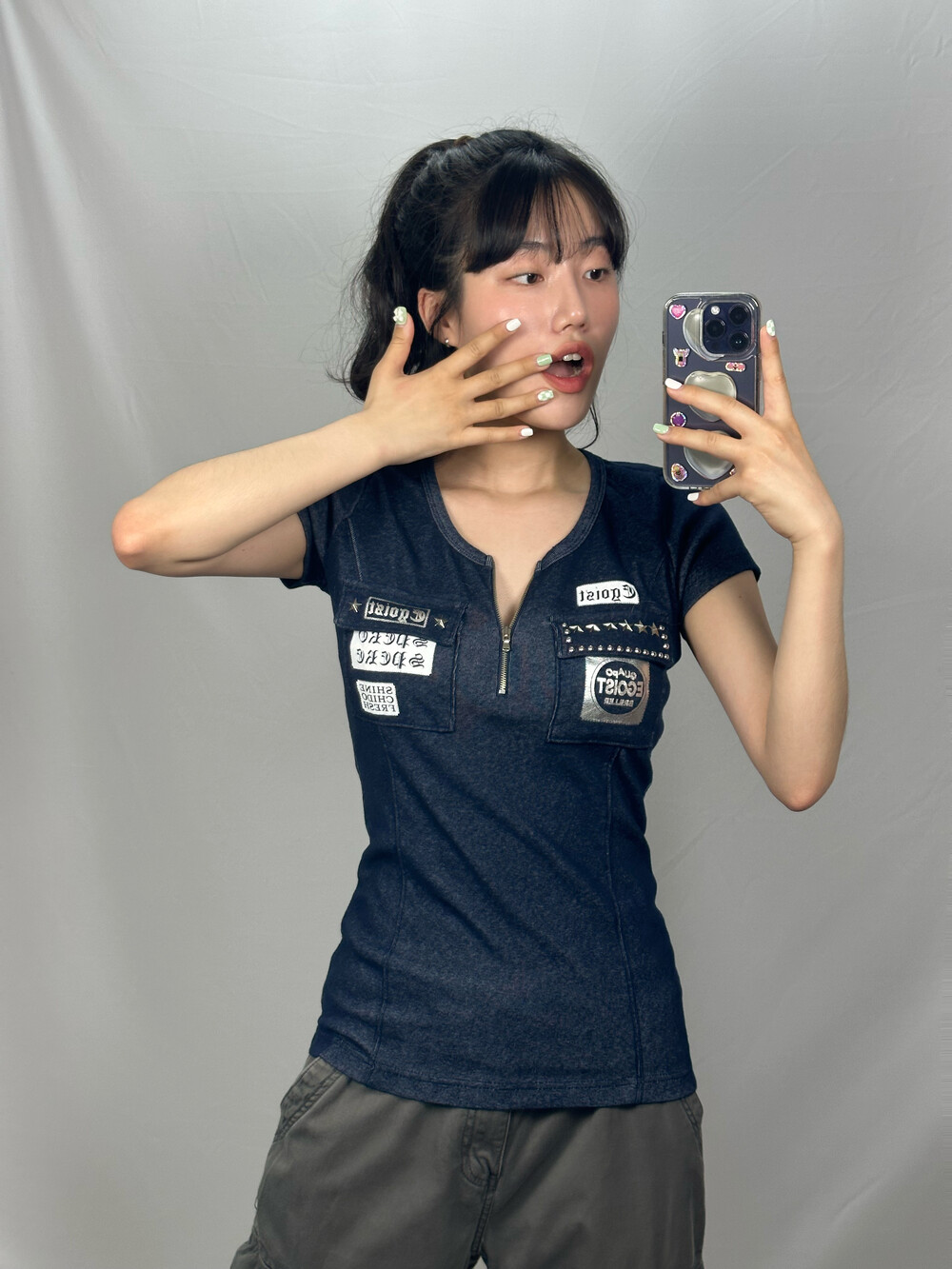 •쫀쫀하게 상체라인을 잡아주는 반팔이에요! 지퍼가 있어 더욱 섹시하게 연출 가능하고 디테일 정말 대 박 💙