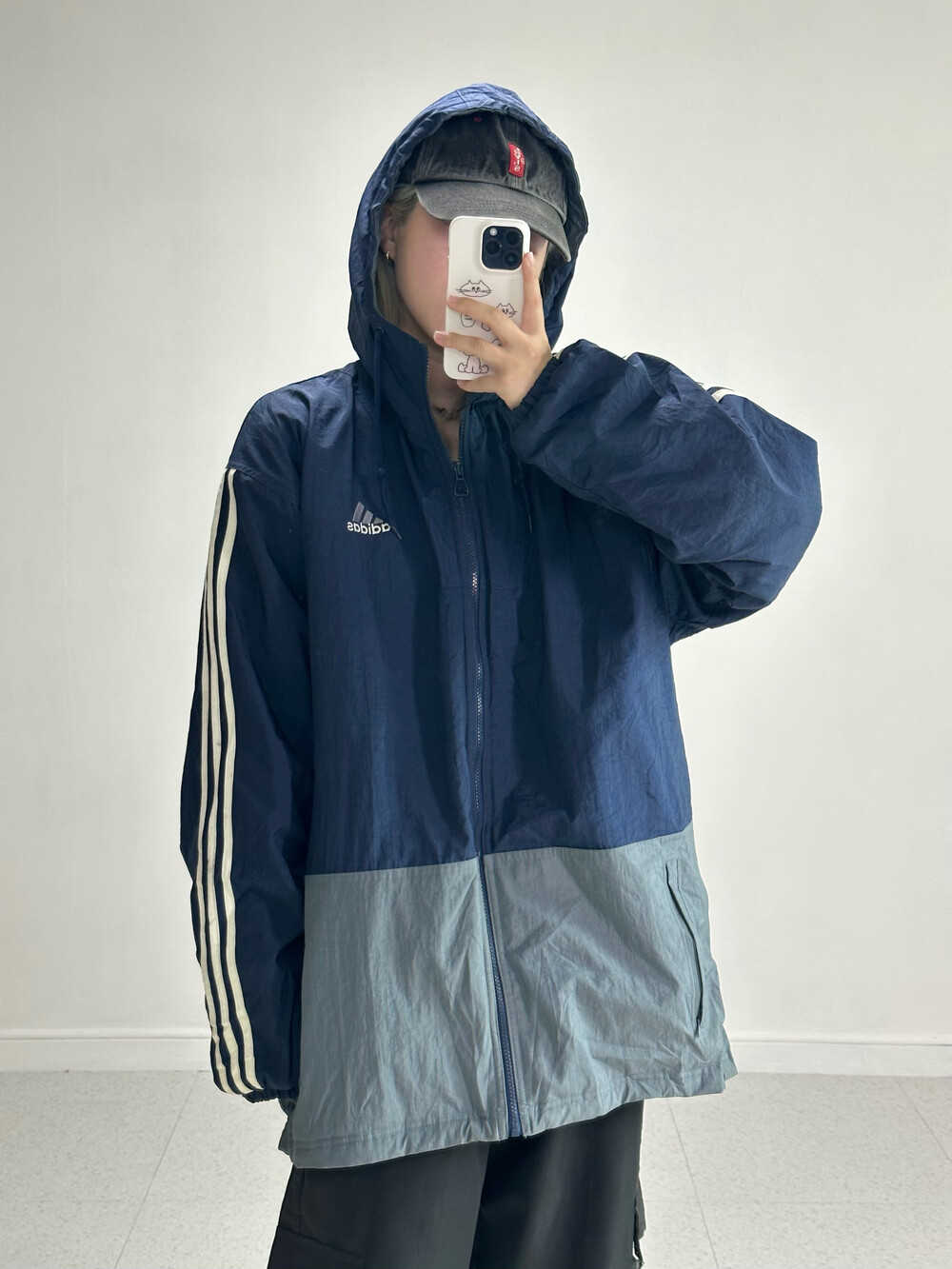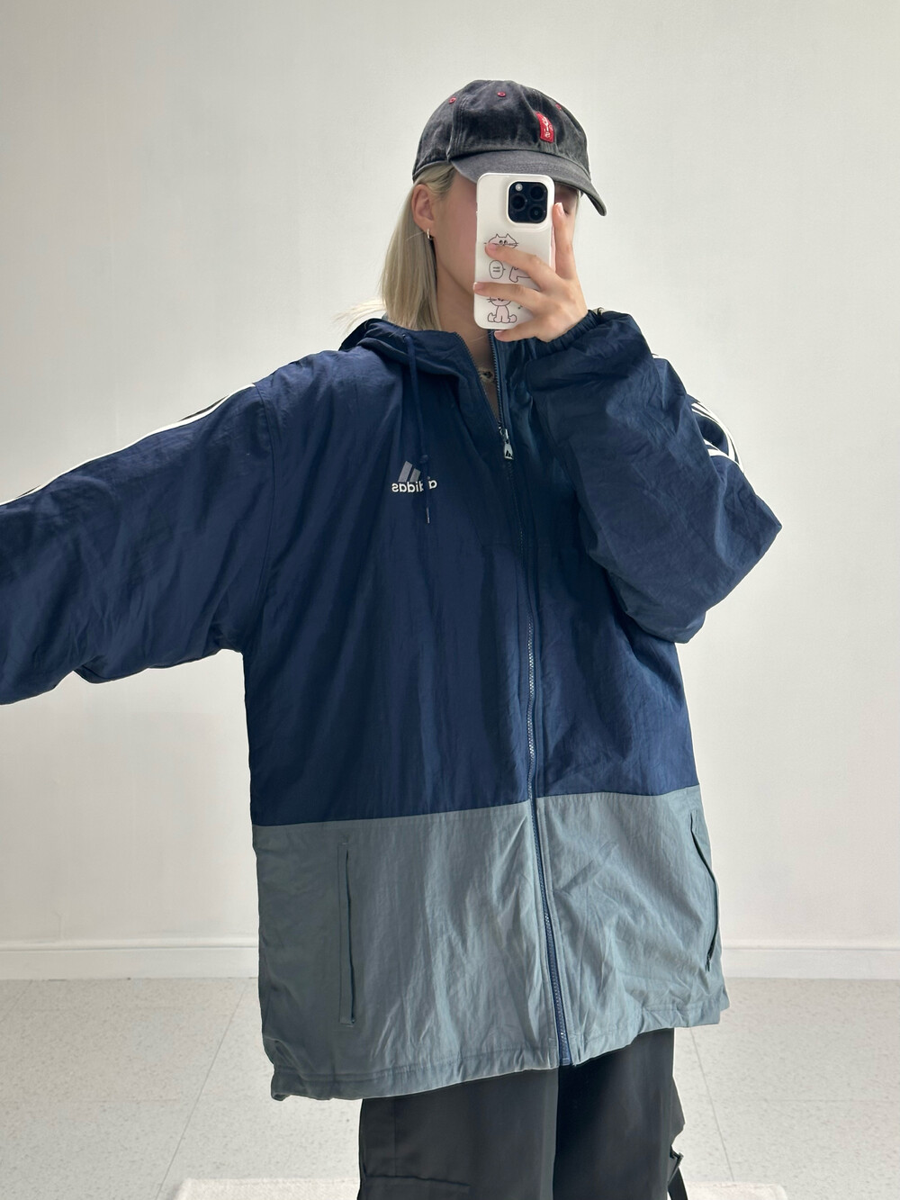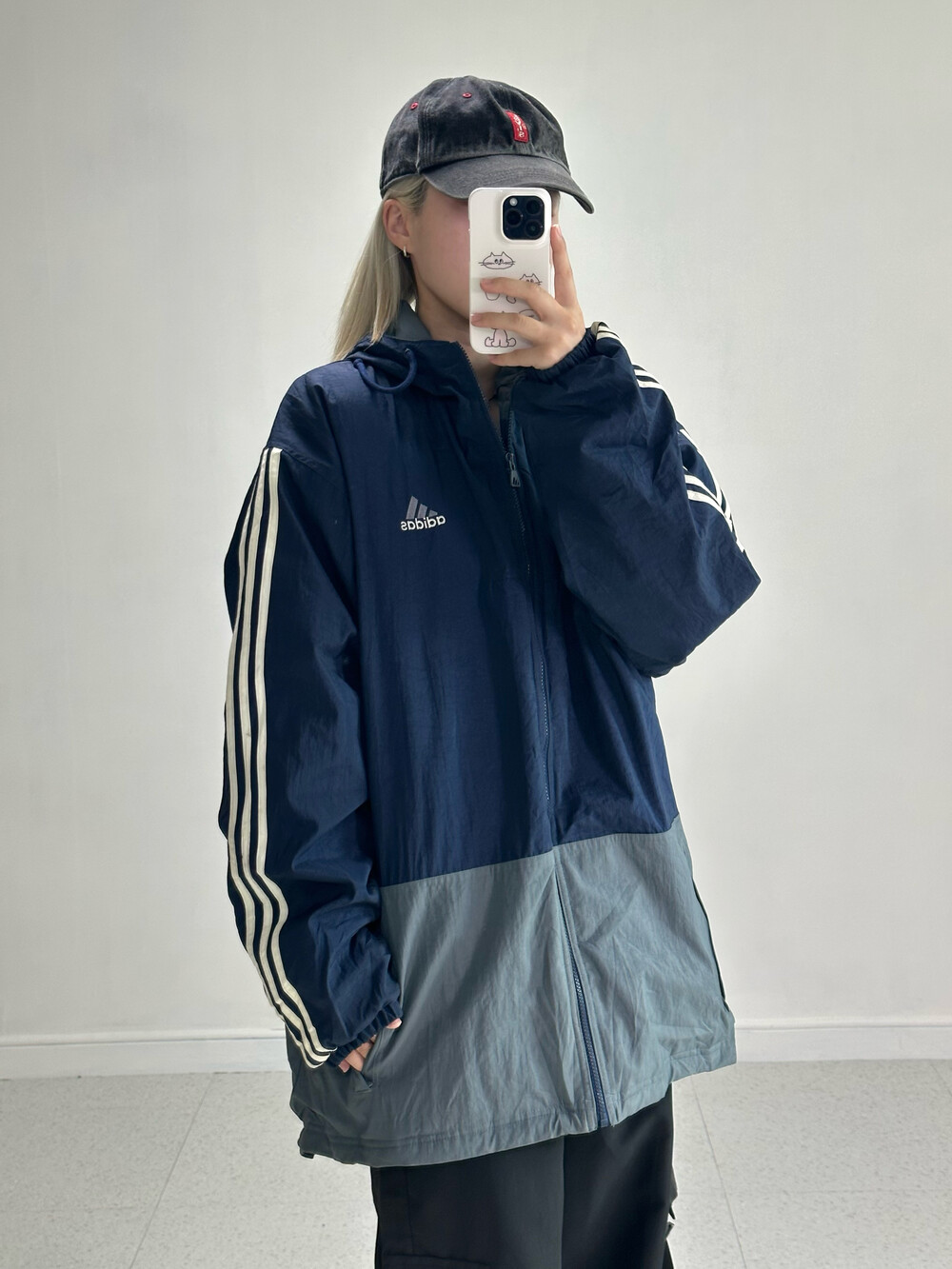 •아디다스 올드스쿨 빅로고 점퍼에요! 겨울에도 충분히 착용가능하시고 네이비 그레이 색상 조합이 완전 예쁘더라구요ㅎㅎ 특히 저 빅로고가 무진장 마음에 듭니다ㅜㅜ.. 강강추요!!🖤👍🏻