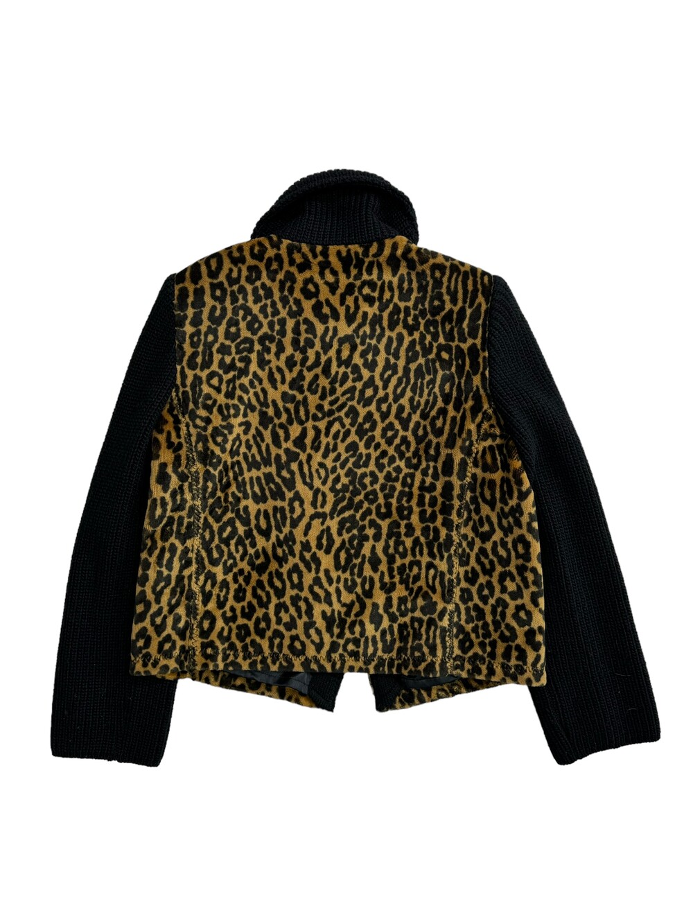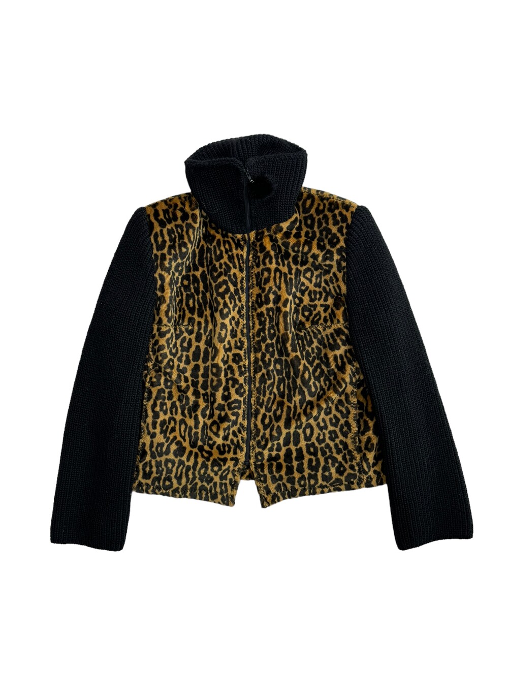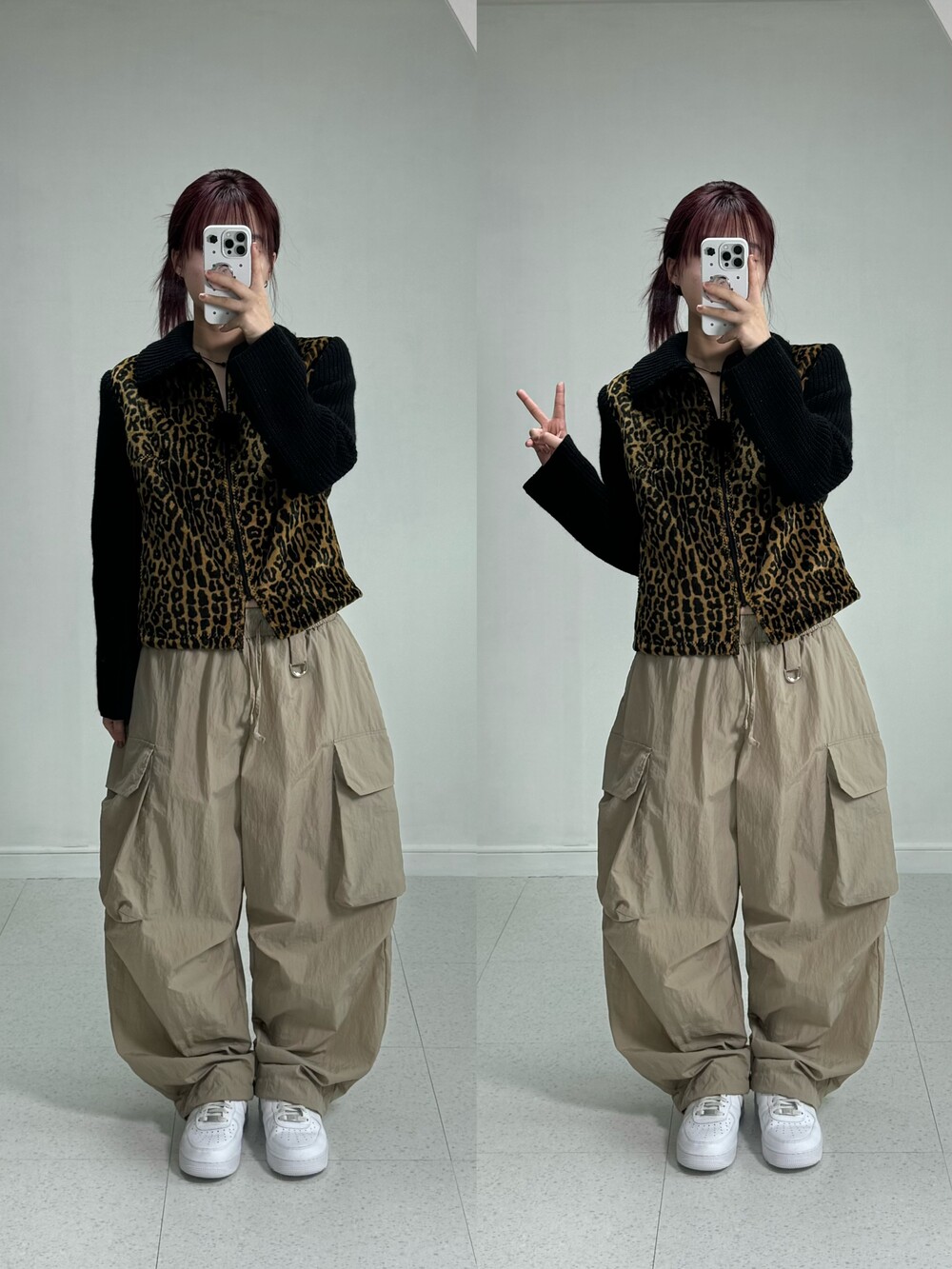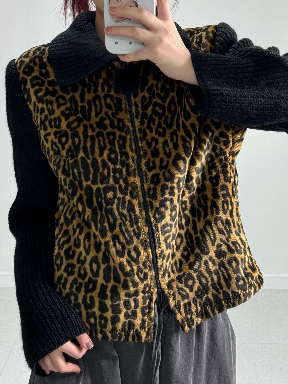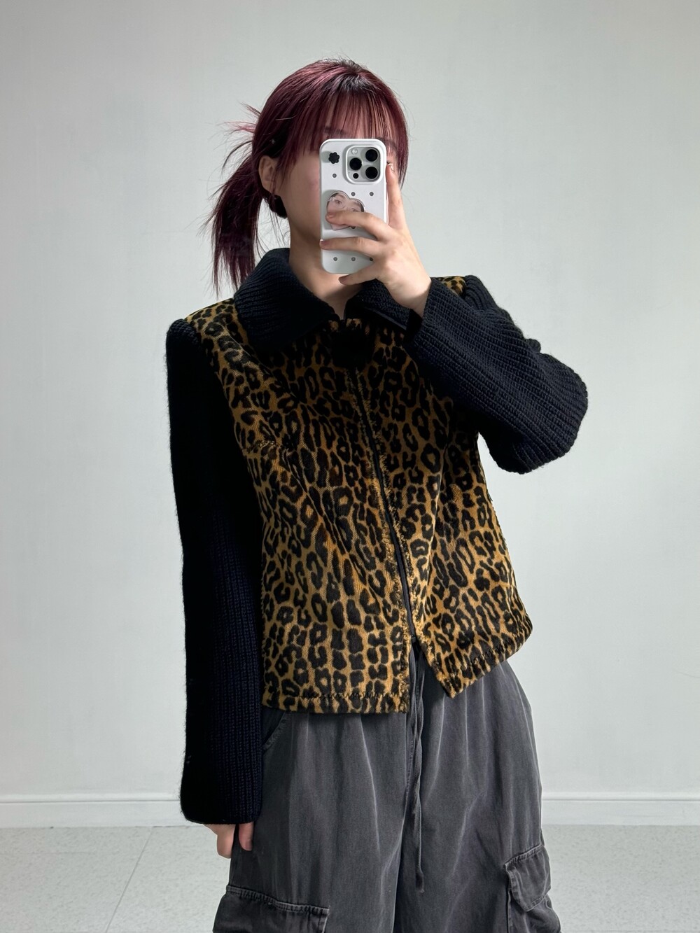 •소매부분은 블랙 니트, 호피는 짧은 에코퍼로 되어있습니다:) 지퍼에는 귀여운 폼폼퍼가 달려있어서 귀엽구, 밑단쪽이 자연스럽게 트려있는 디자인이라 착용했을때 어색함 없이 밑단 단추를 하나 풀어준듯한 루즈함을 연출하실 수 있는 아이에요 ㅎㅎ🖤