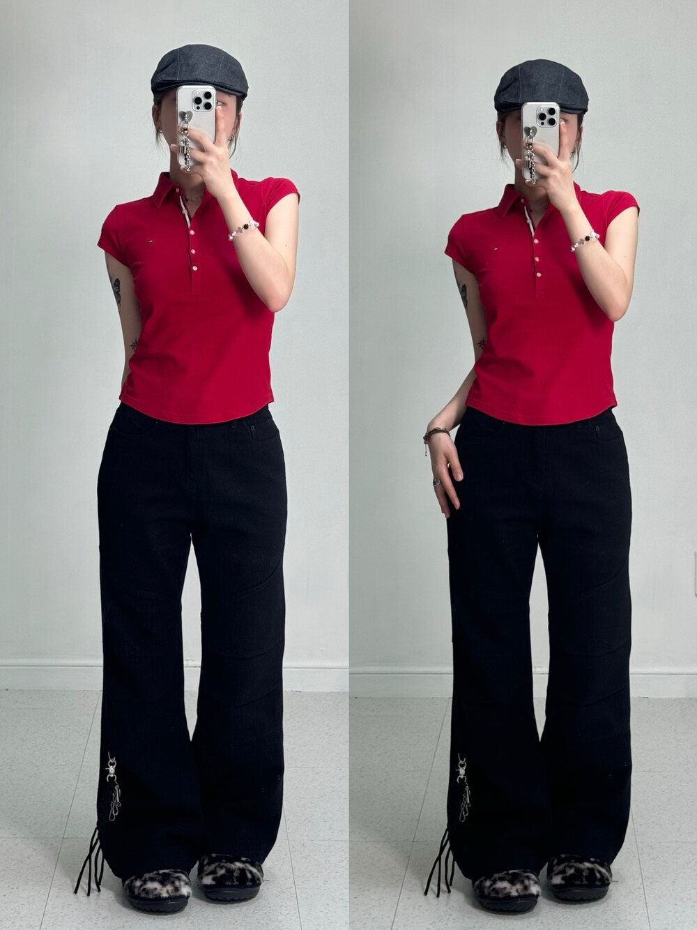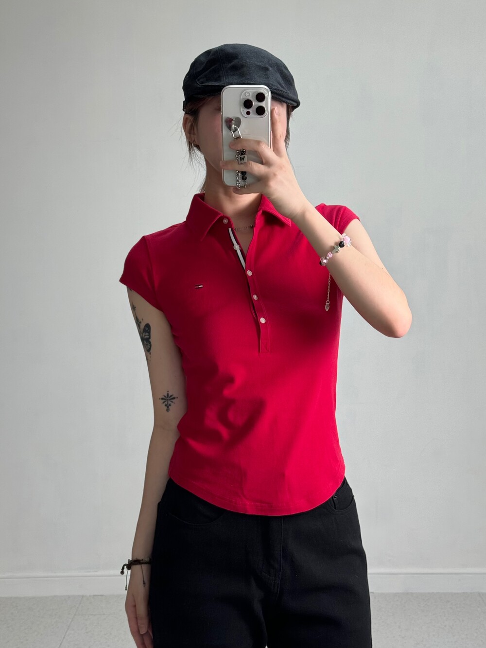 •깔끔하면서 키치하고 섹시한 느낌이 가득한 타미 반팔..! 소매가 짧아서 더 귀엽구 군살을 싹 잡아주면서 허리도 얇아보여서~~ 진짜 진짜 맘에드는 반팔이에욤!