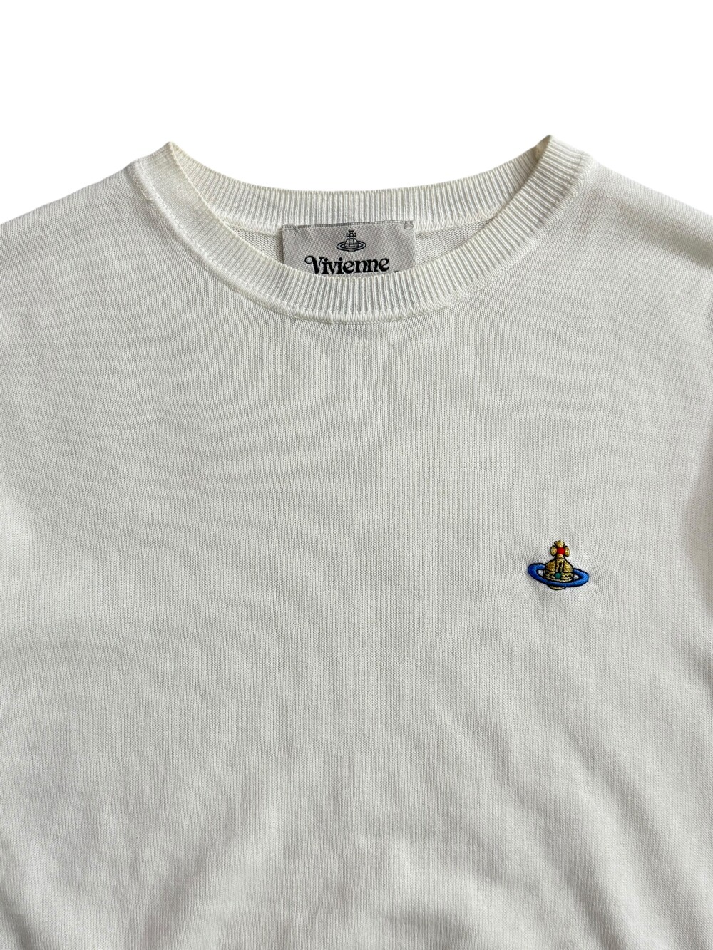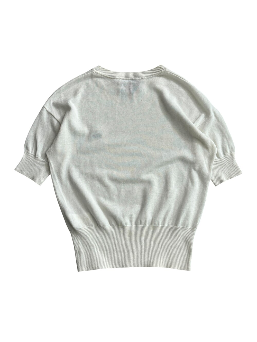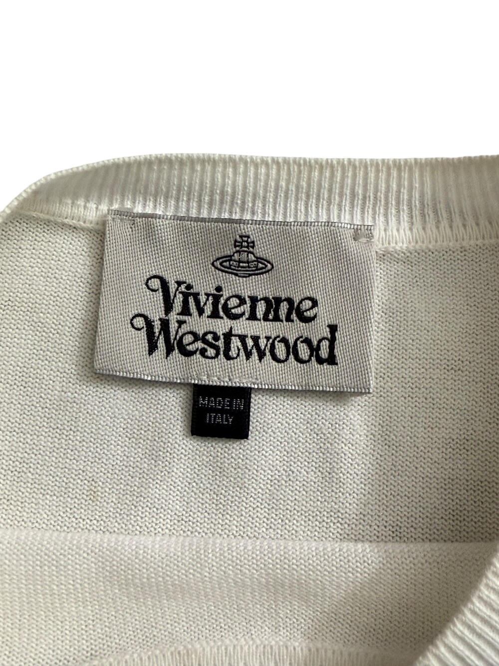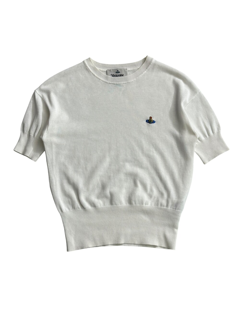 •비비안웨스트우드 정품 반팔 니트에요! 소매,밑단 시보리가 어느정도 팔뚝과 허리를 잡아줘서 말라걸로 만들어준답니다.. 여름에는 단독으로 나머지 계절은 가디건,아우터와 함께 입어주셔요!!