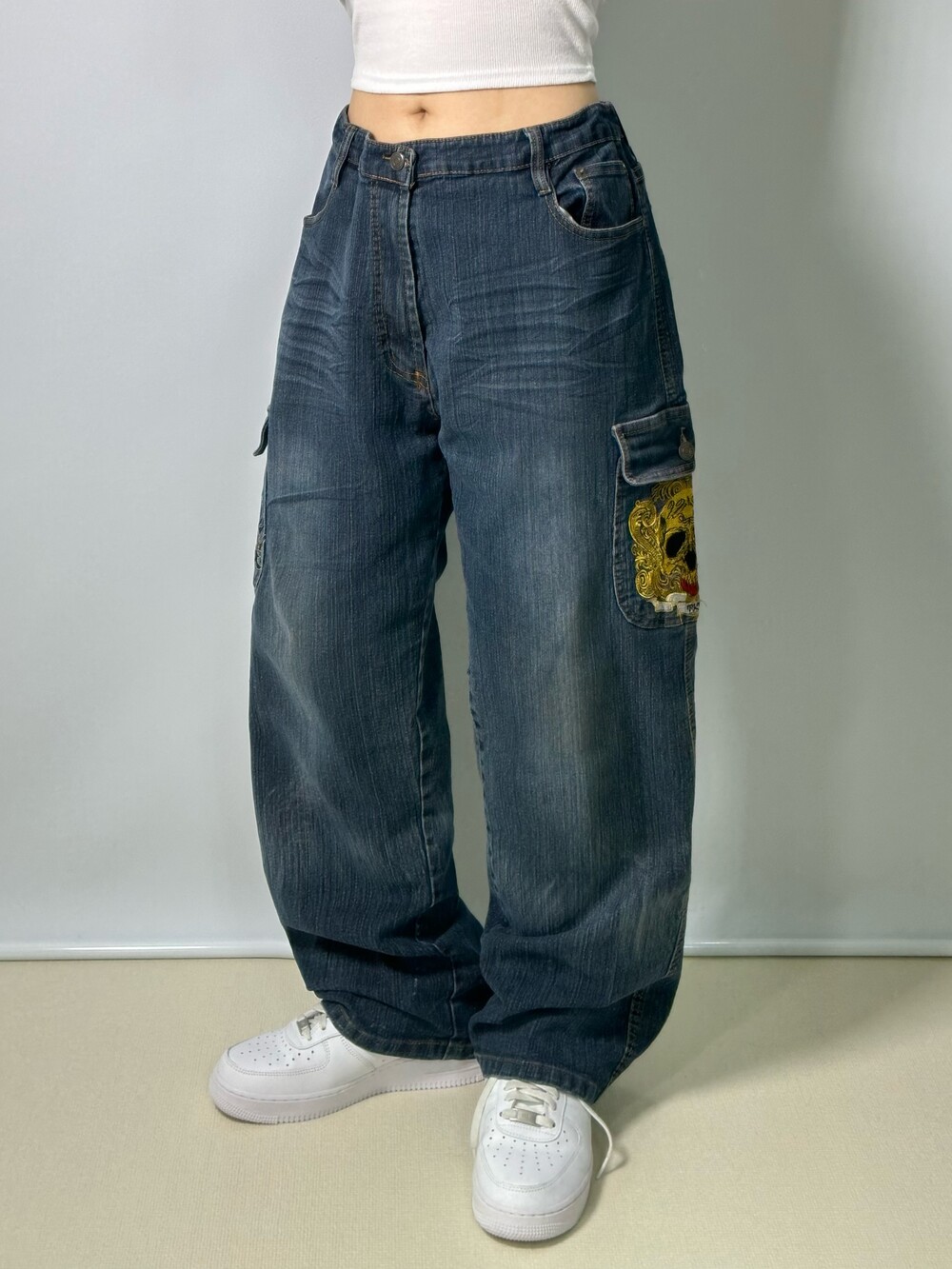 •대장급 핏과 스컬 자수가 엄청 스트릿하고 멋스럽지 않나요🖤 엉덩이 포켓도 자수로 박힌 디자인이라 완전 고퀄이에요💙