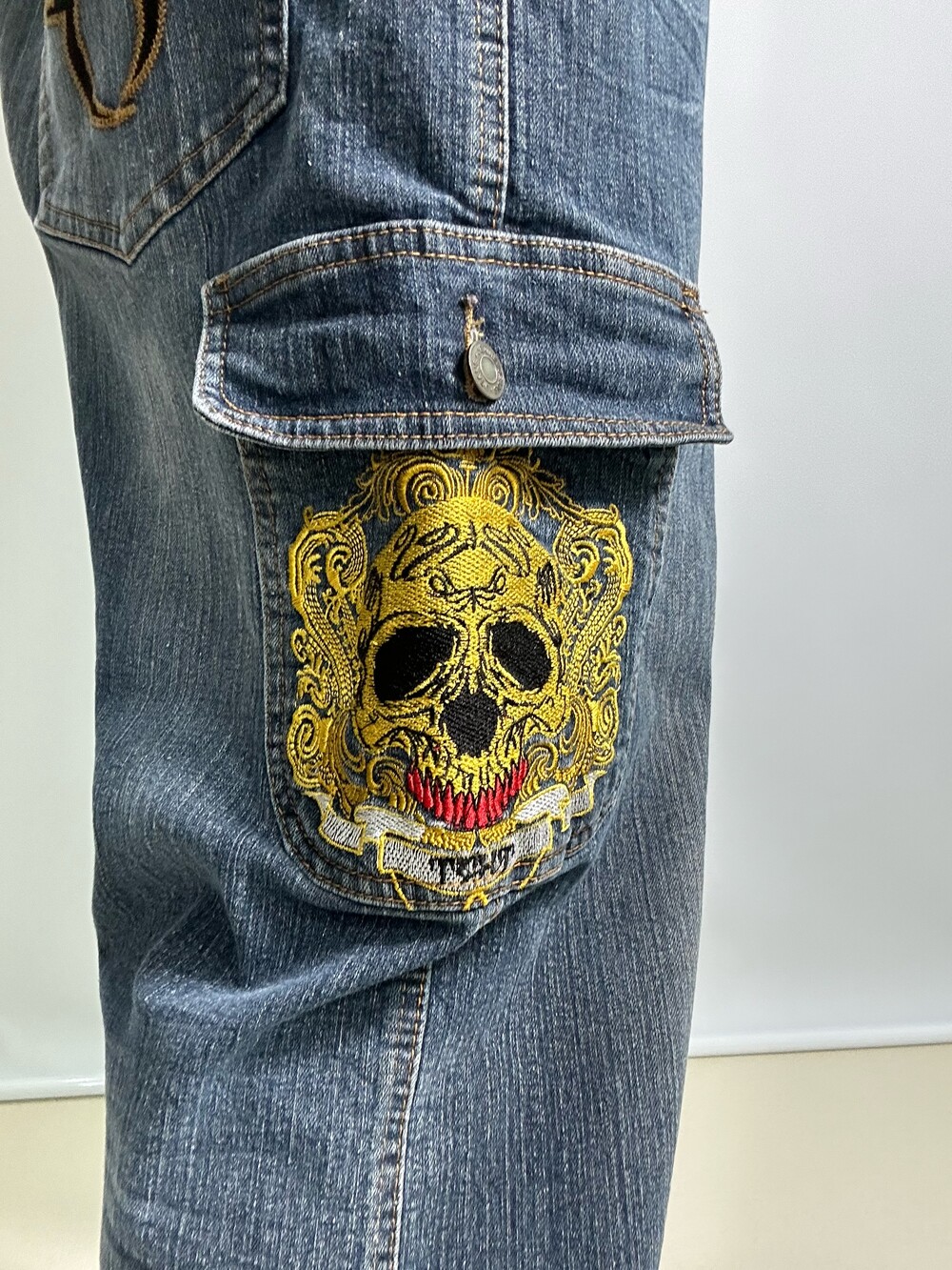 Skull denim cargo pants