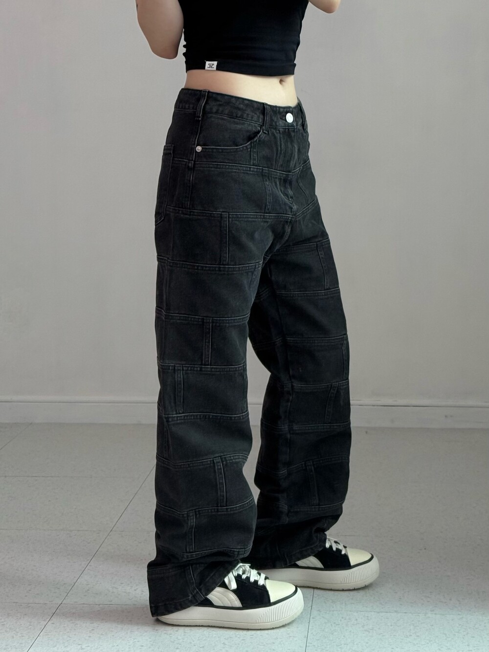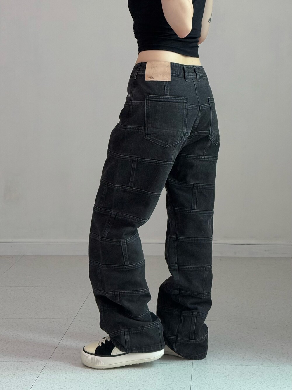 •노메뉴얼 흑청 브릭팬츠 입니다! 패턴이 굉장히 독특해요, 단품으로 입어주셔도 좋고 스커트와 레이어드해도 예쁜 아이템ㅎㅎ 깔끔루즈핏 이옵니다 (새상품 16만9천)