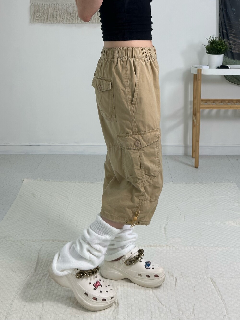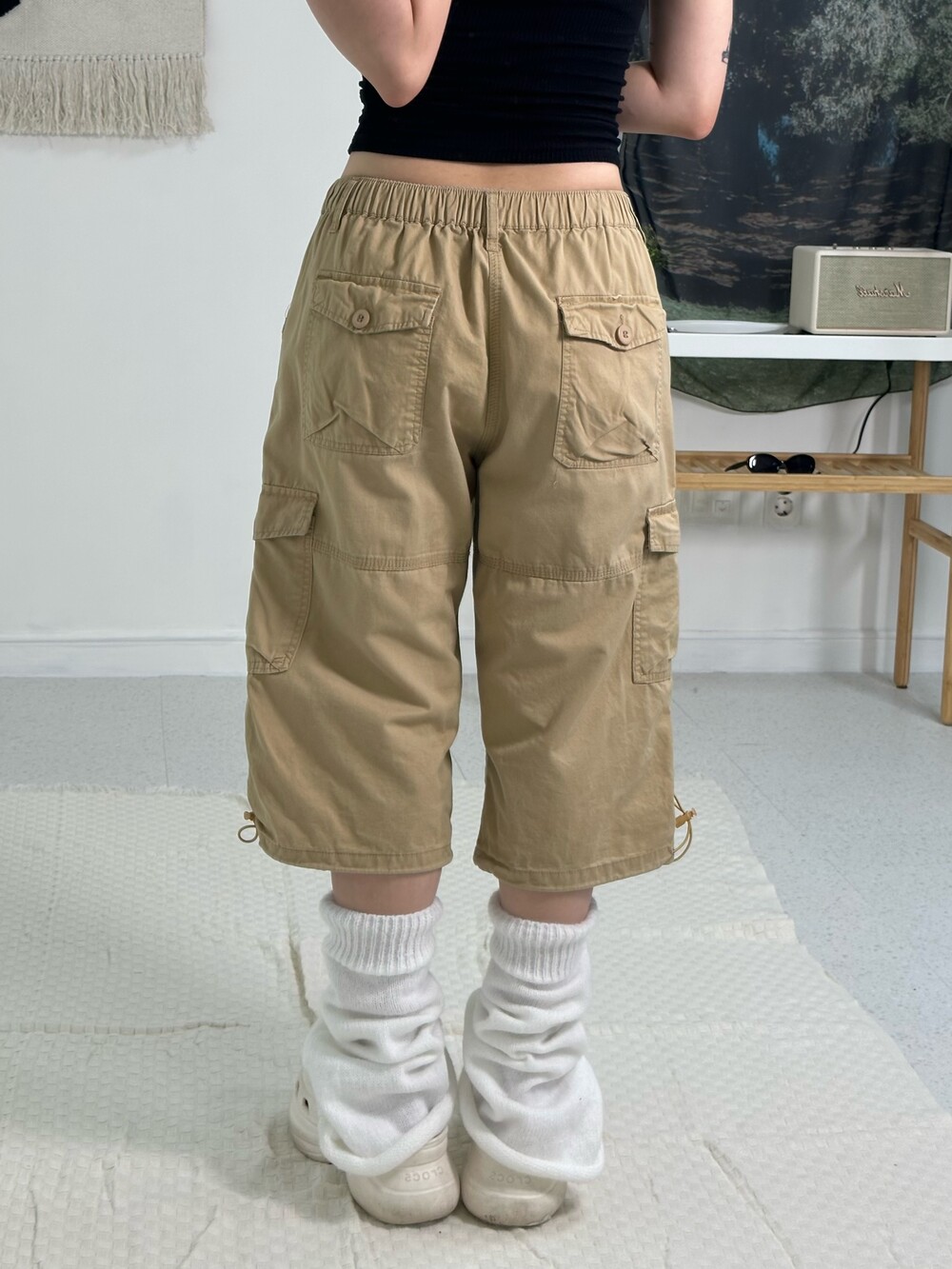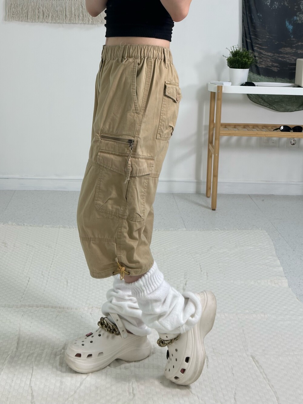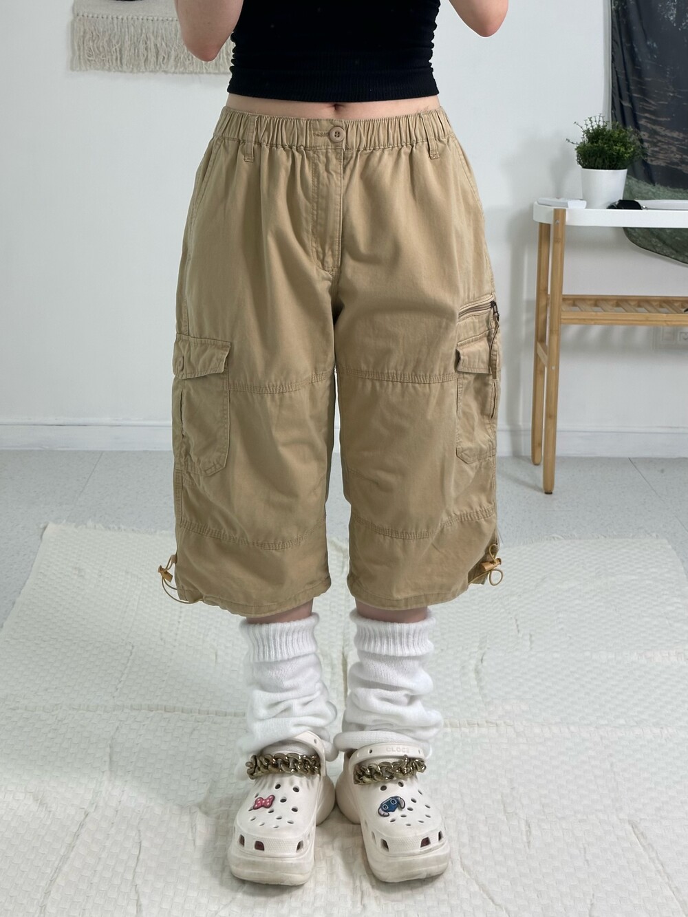 •하프팬츠 중에서도 살짝 롱한 기장을 갖고 있는 팬츠에요! 밑단 스트링과 사이드에 지퍼 디테일까지 있어 더욱 빈티지에서만 만날 수 있는 디자인인거같아요^,^!