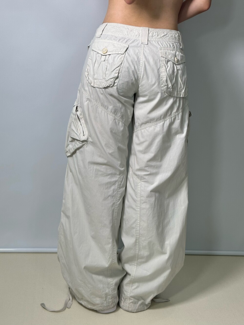 •대장급 사이즈와 핏이 아닐까 싶은 팬츠에요, 사이드에 포켓 디자인과 밑단 스트링이 있어 취향대로 착용하시기 좋은 아이보리 컬러 카고에요!