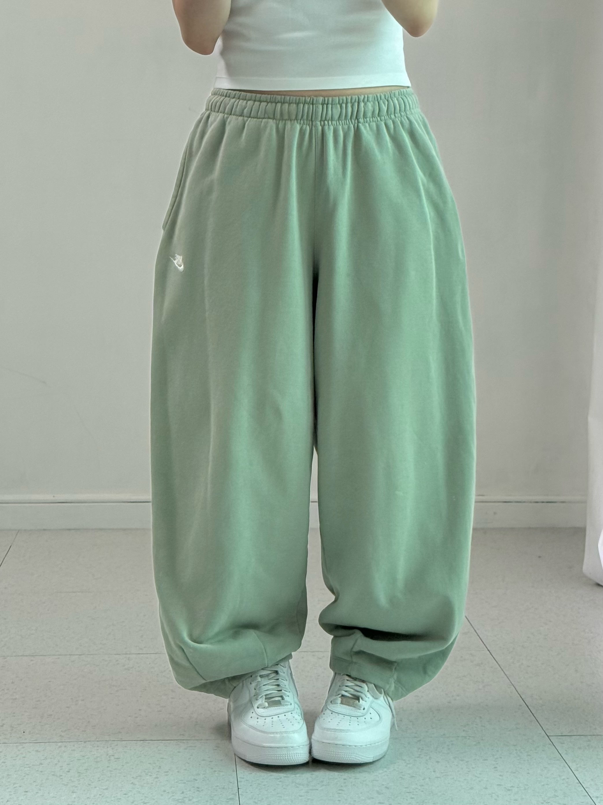 •멀멀뮤트 피스타치오 컬러의 나이키 코튼 팬츠 입니다! 따뜻한 날에 산뜻하게 착용해주시면 넘 좋을듯해요ㅎ.ㅎ🍏