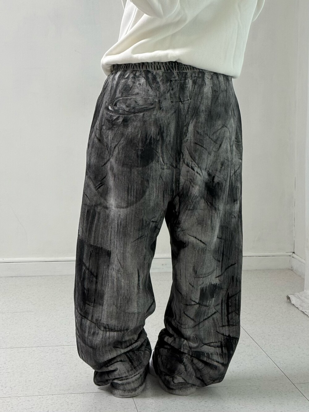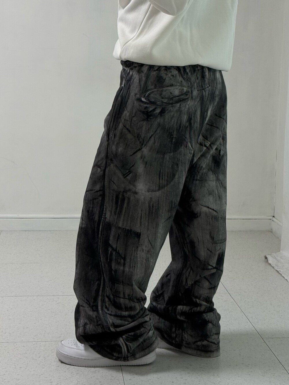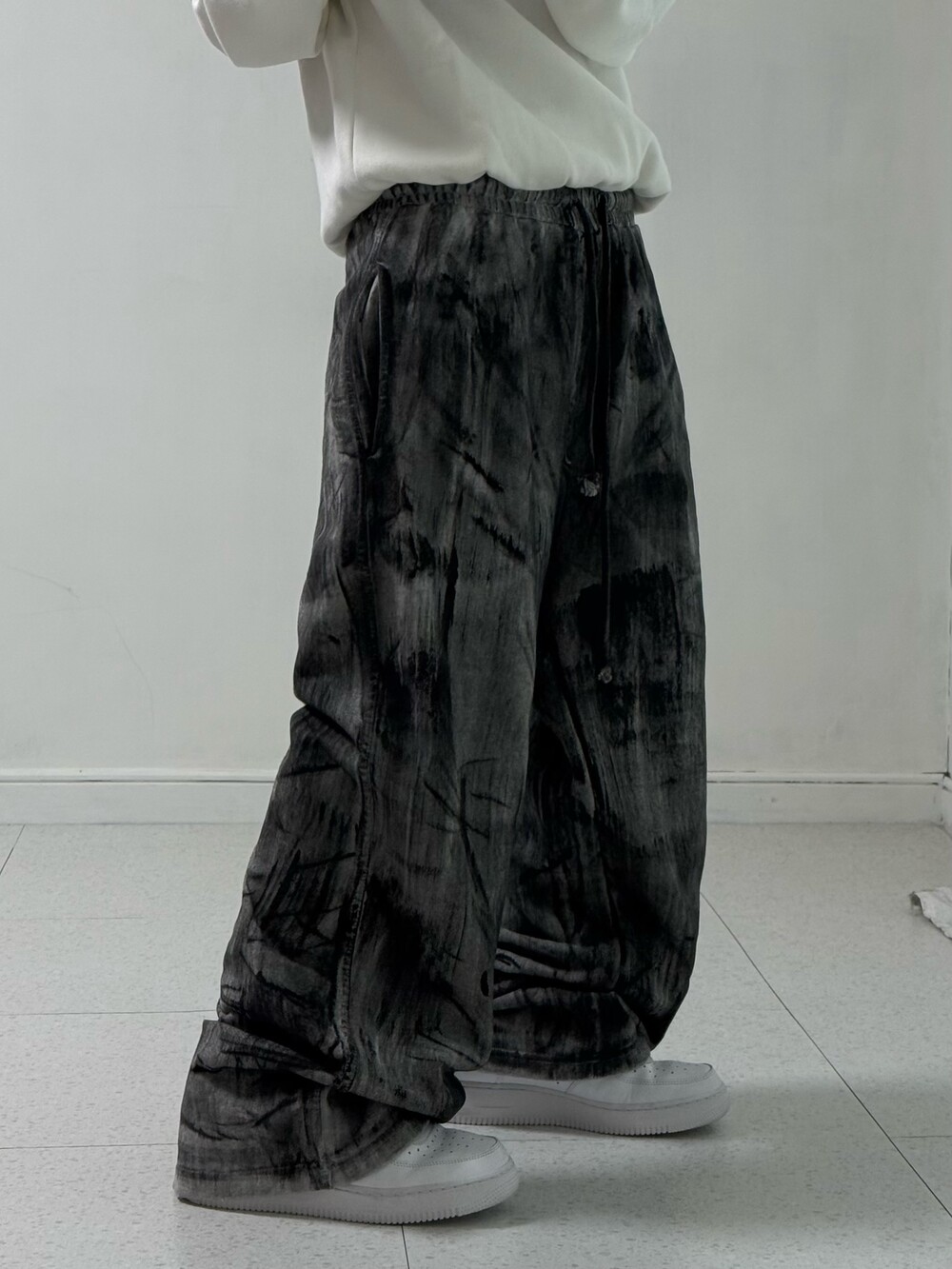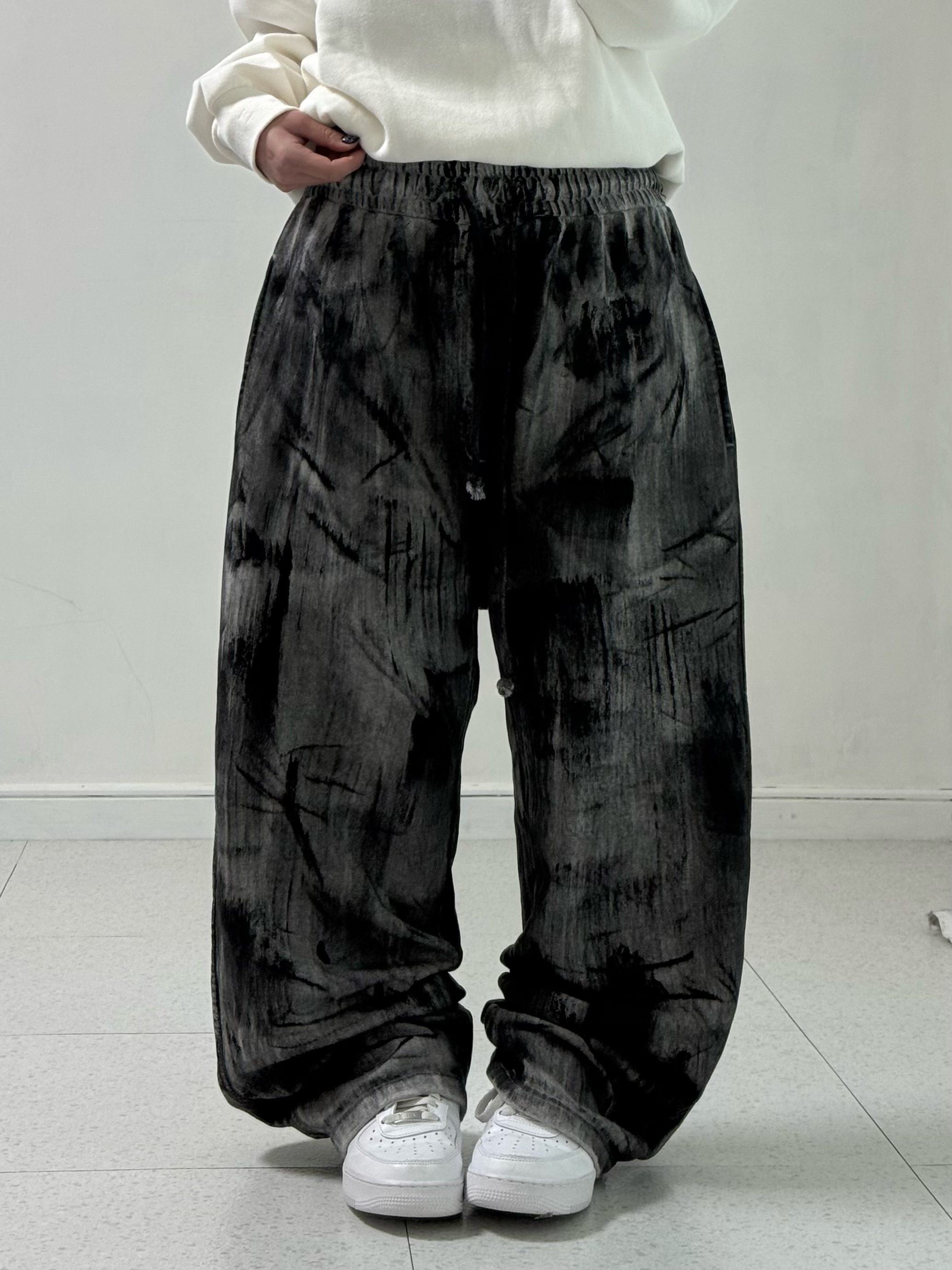 •언더마이카 러프 오일 코팅 스웻팬츠 입니다. 말 그대로 러프하게 떨어지는 핏감이 예술이에요,, (발매가 12만9천원->크림에서 더 비싸게 거래되고 있어요) 1사이즈에요.
