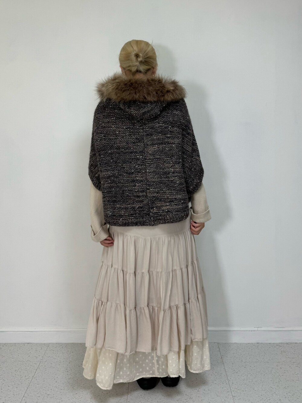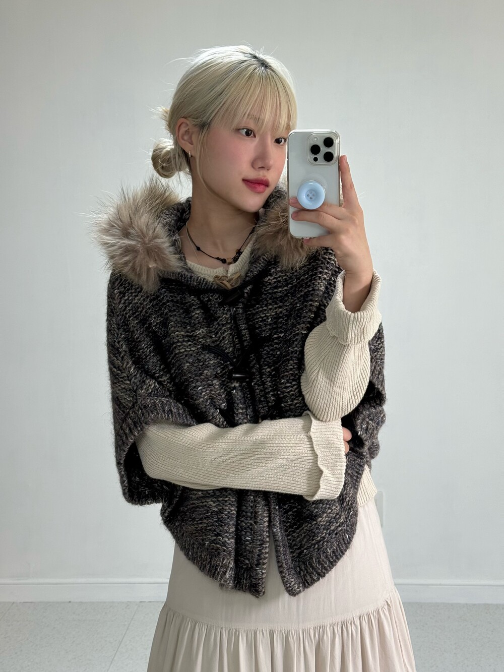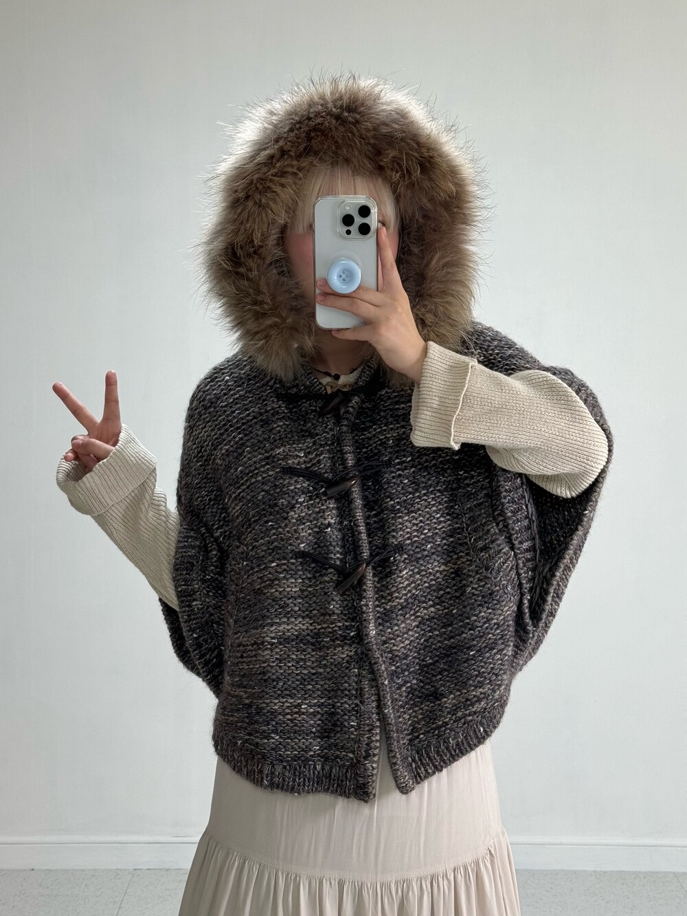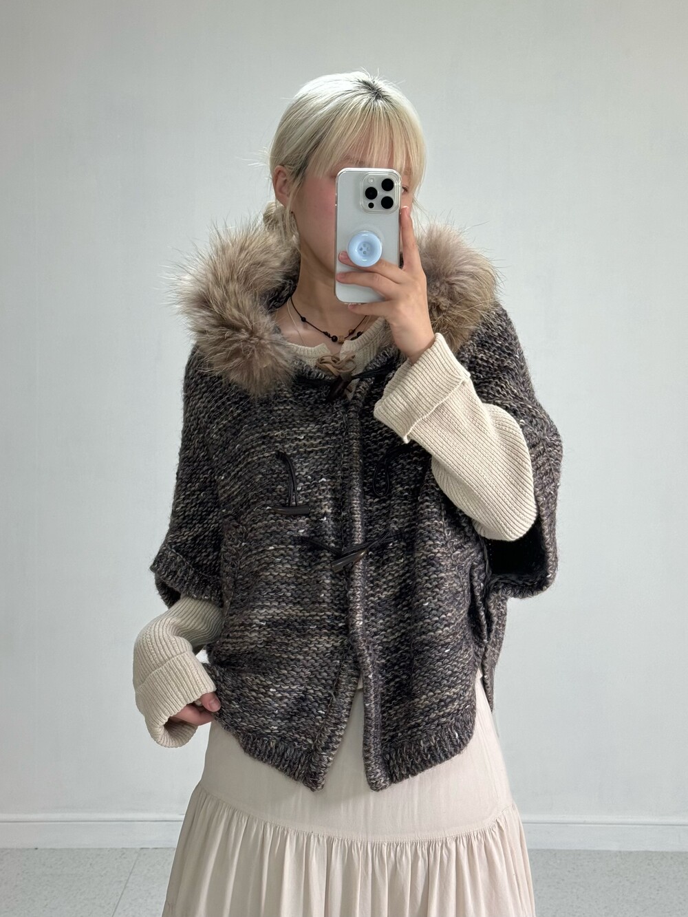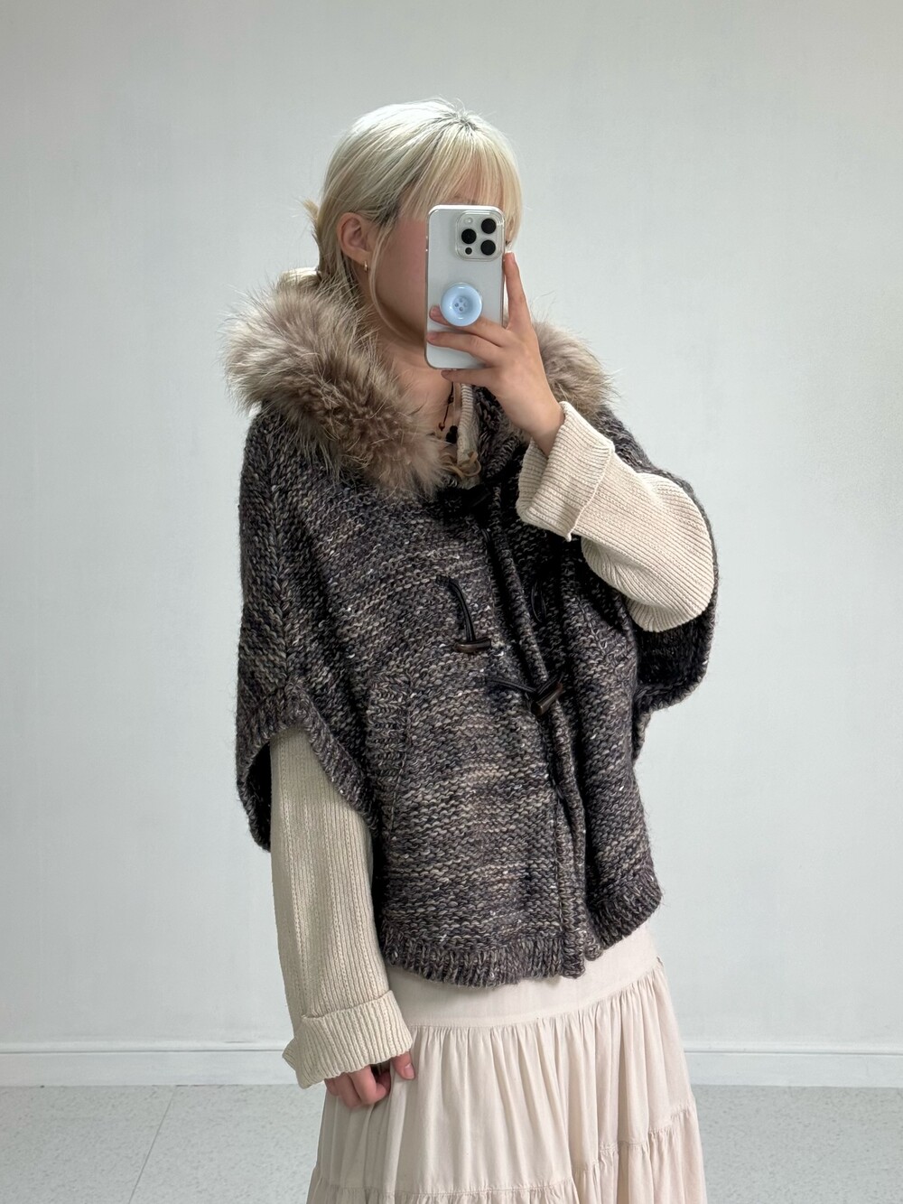 •후드에 퍼까지 달려있는 브라운 톤의 케이프에요! 떡코 감성+오두막 소녀감성 가득 케이프🖤