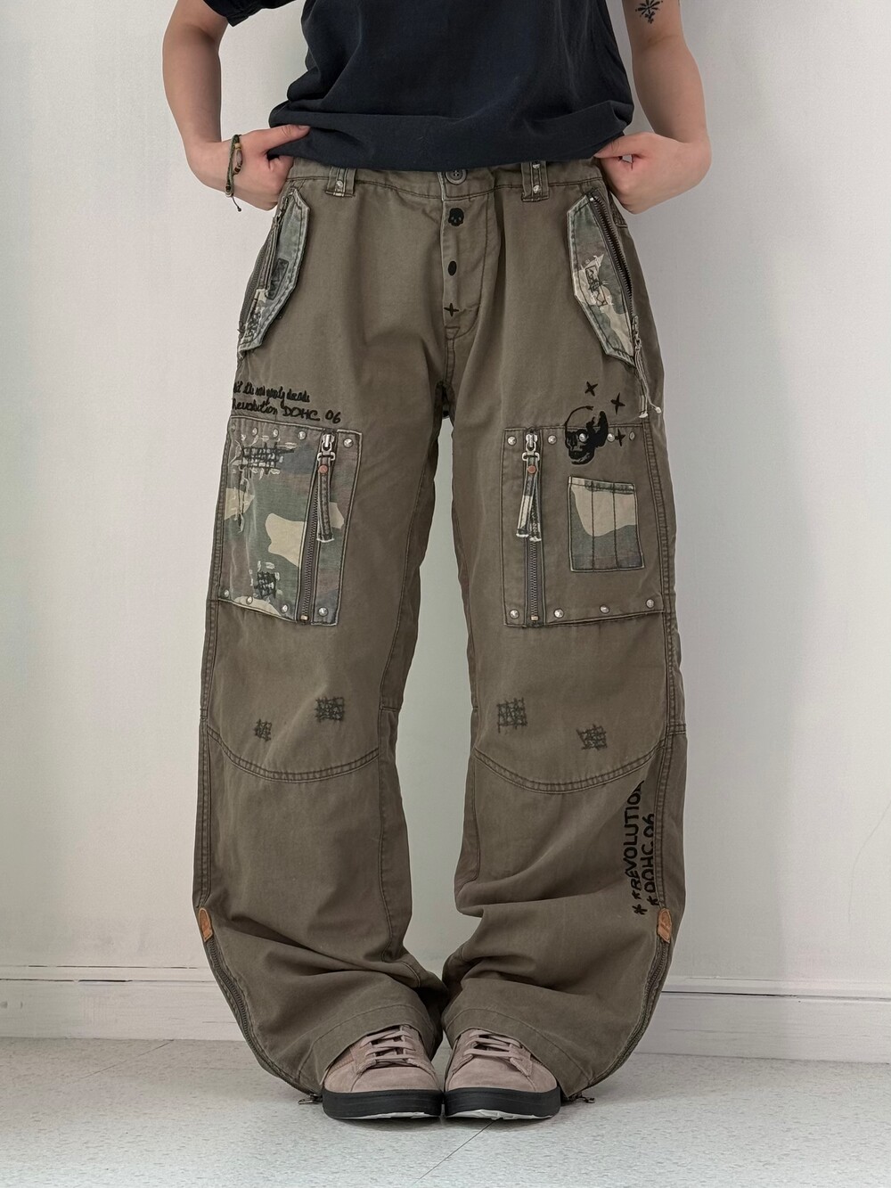 Doch skull camo khaki cargo pants