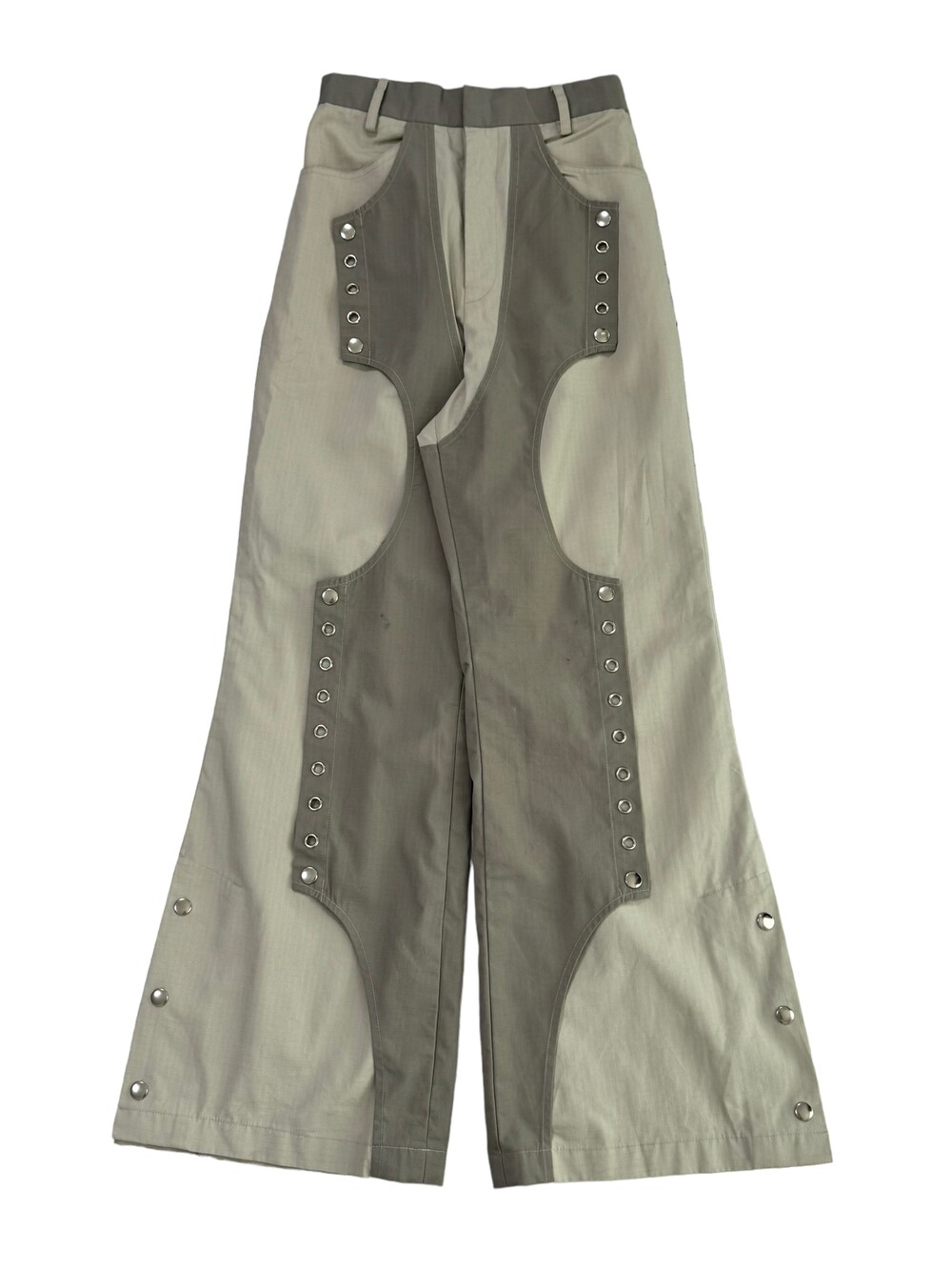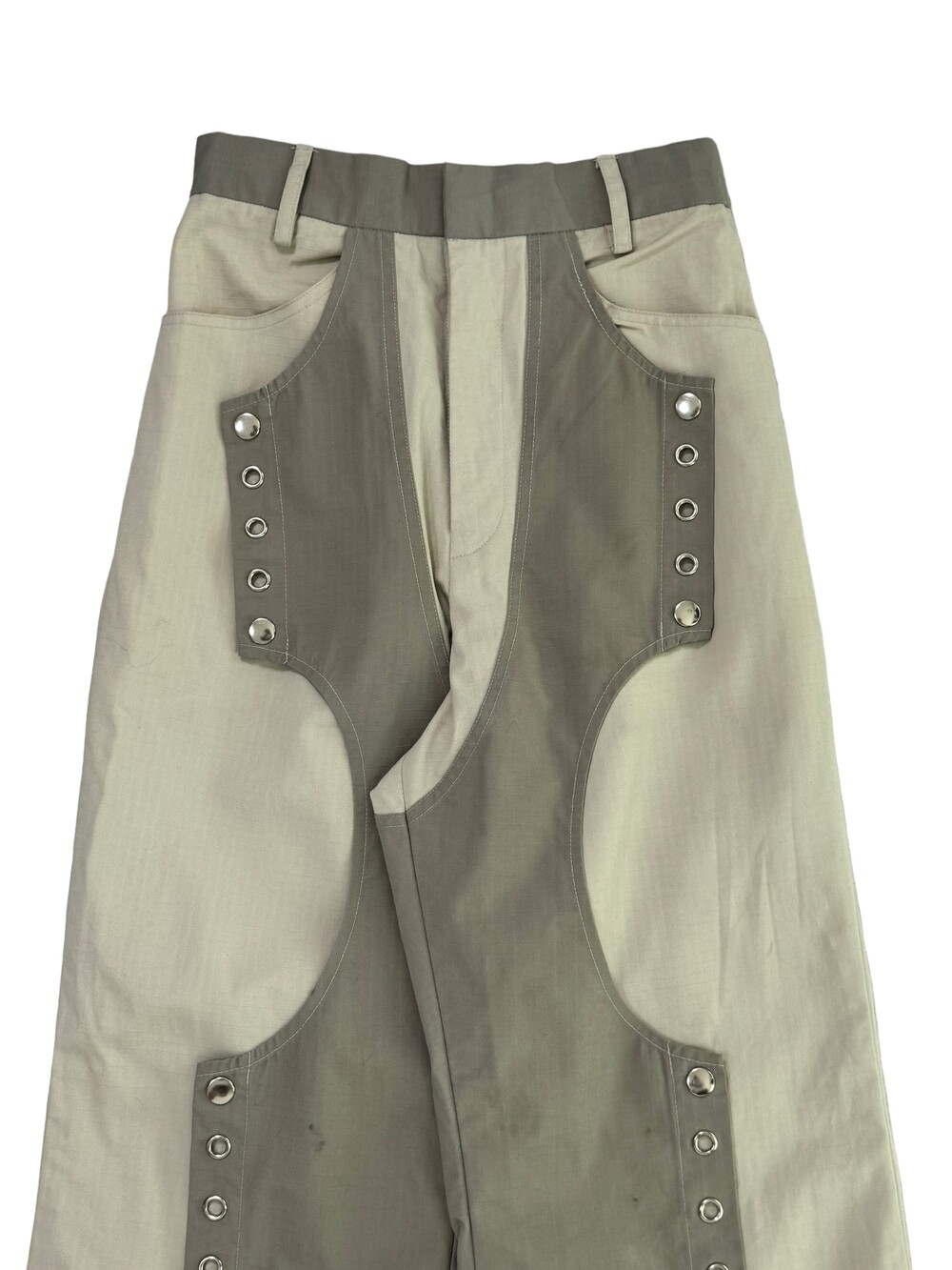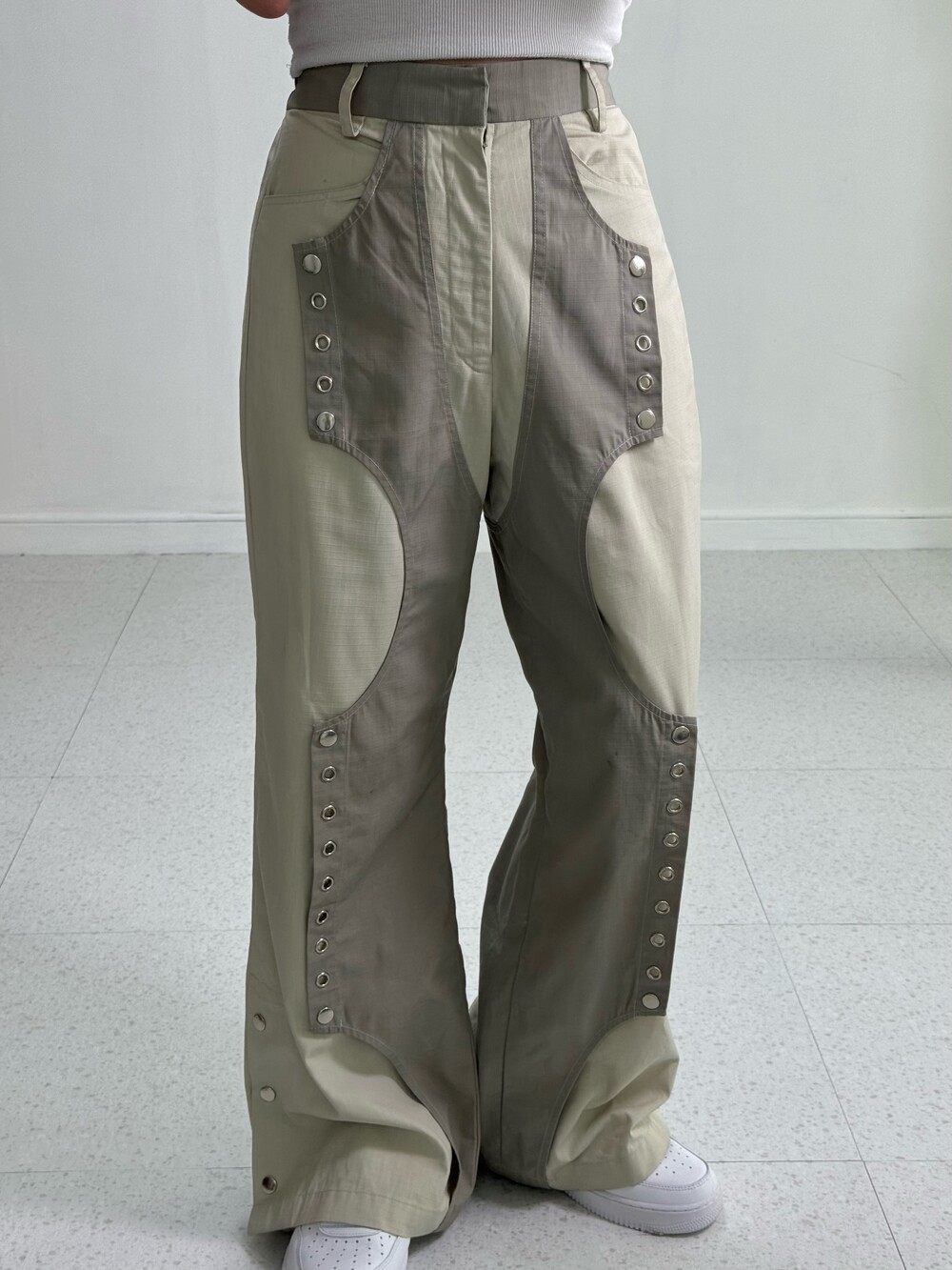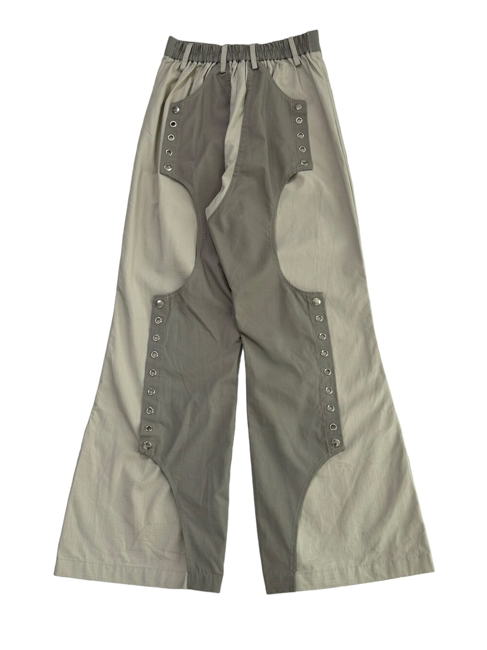 •보자마자 헉! 했던 디자인이에요! 아일렛펀칭이 들어가 더욱 멋스럽고 배색 패치 디자인이 들어가 독특한 디자인의 팬츠 니다:) 심지어 사이드 버튼 디테일도 들어가있고 하이웨스트로 착용해주시는 제품입니다. 허리가 밴딩이라 더욱 편안하게 착용하실 수 있습니다.