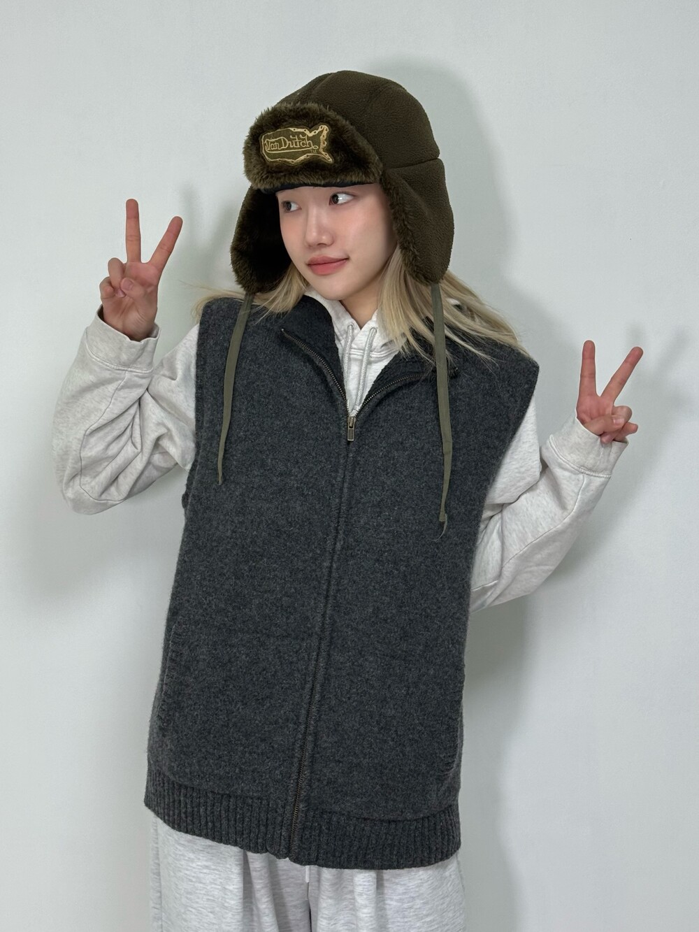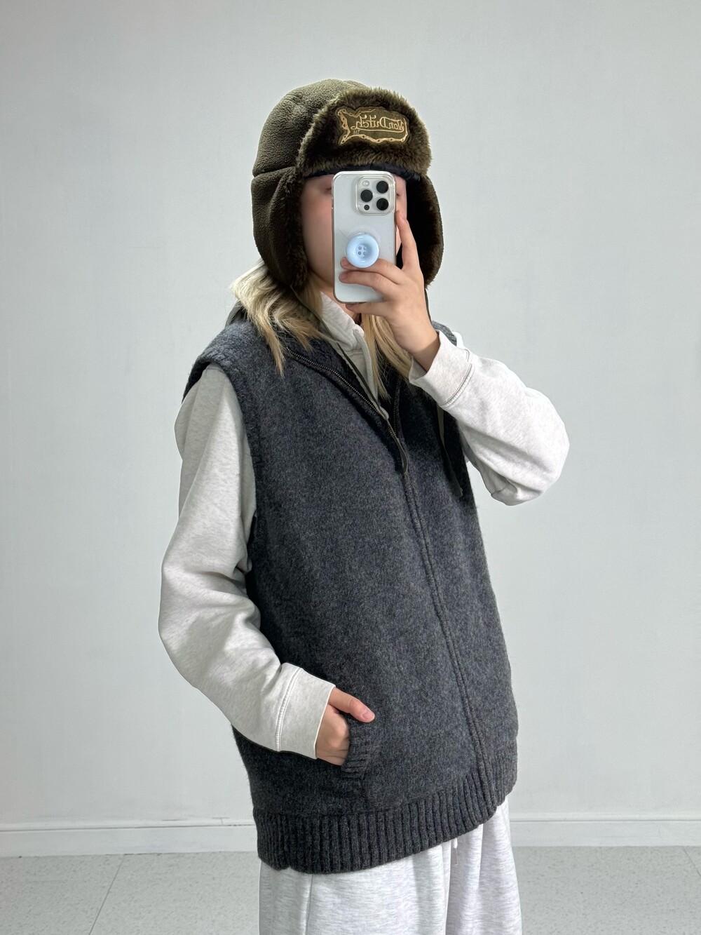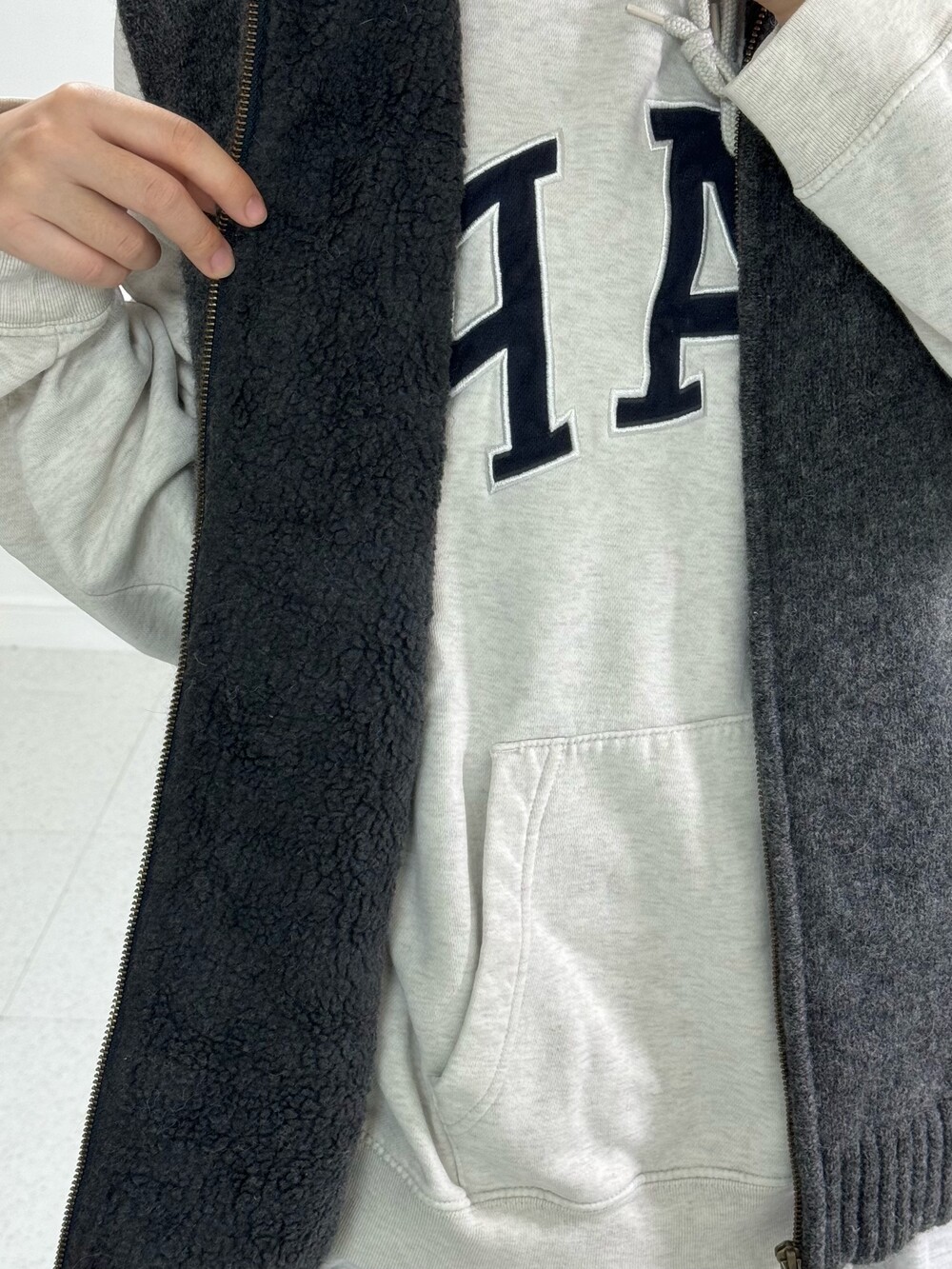 •챠콜 그레이 컬러의 엘엘빈 니트 베스트에요! 안감은 부드러운 양털로 되어있어 착용감도 좋고 따수워요!