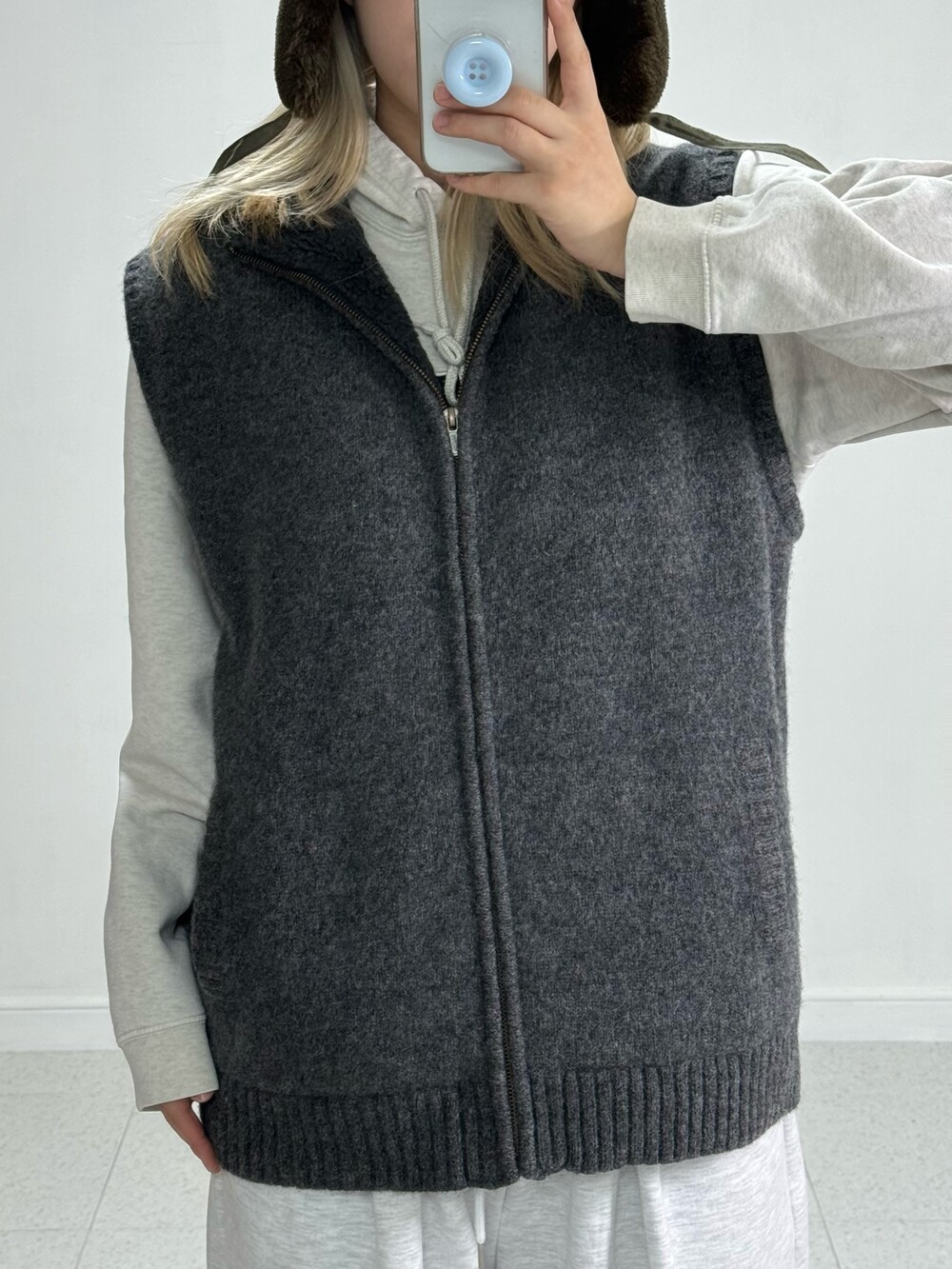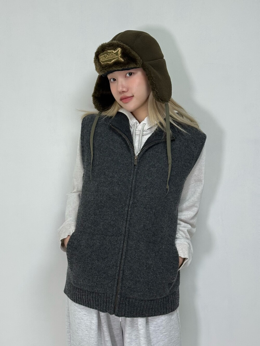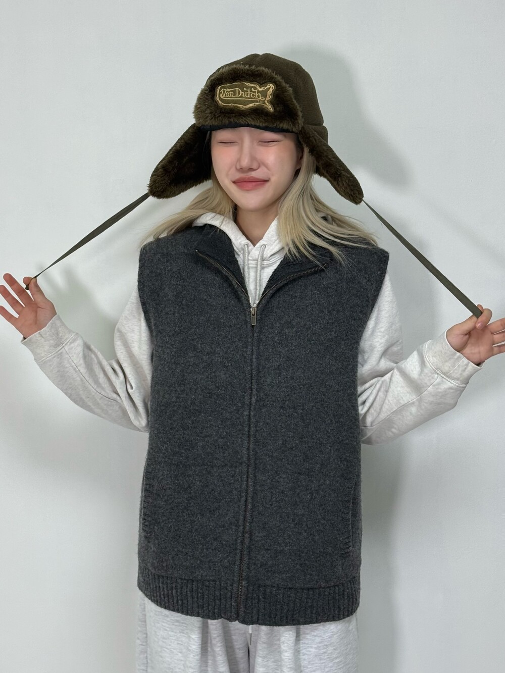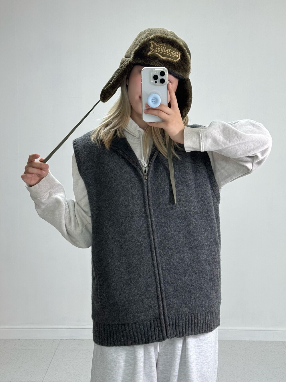 •챠콜 그레이 컬러의 엘엘빈 니트 베스트에요! 안감은 부드러운 양털로 되어있어 착용감도 좋고 따수워요!