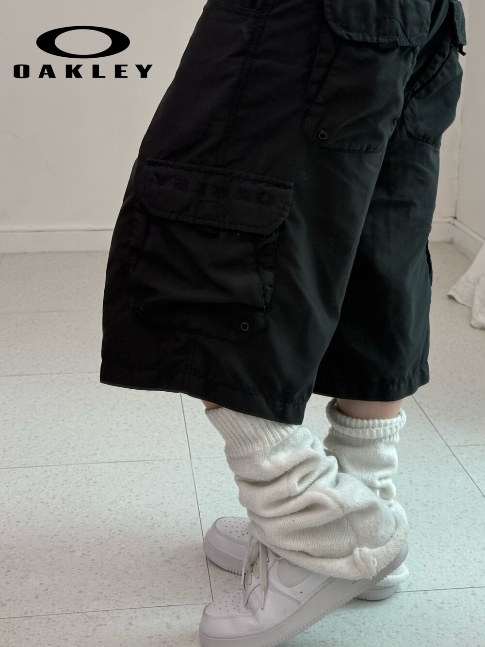 •오클리 블랙 카고 버뮤다 입니다. 가벼운 착용감이라 여름에 착용해주시기 정말 좋은 제품이에요! 은은하게 보이는 오클리 자수 디테일이 포인트 랍니다ㅎㅎ