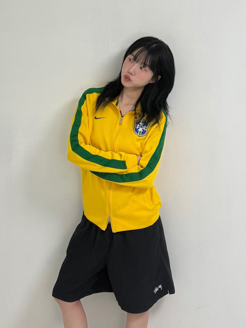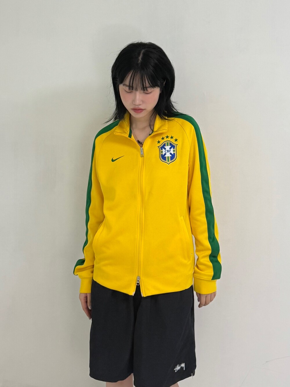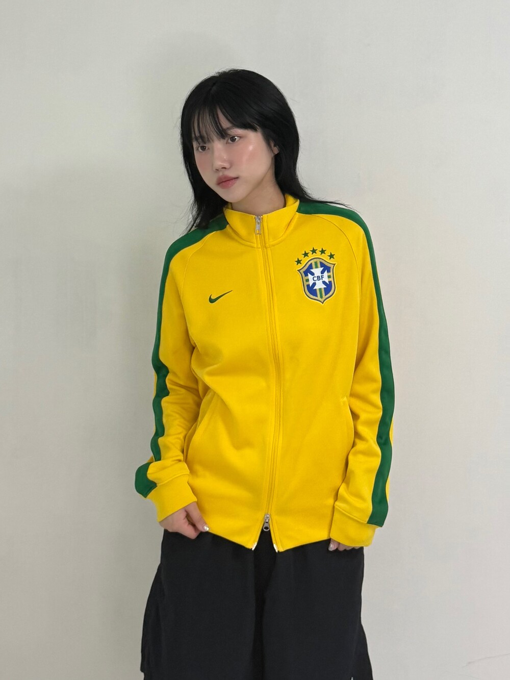•나이키 투웨이 브라질 국대 져지 입니다. 컬러조합이 귀여워 포인트로 착용해주시기 좋은 제품이에요 ㅎㅎ