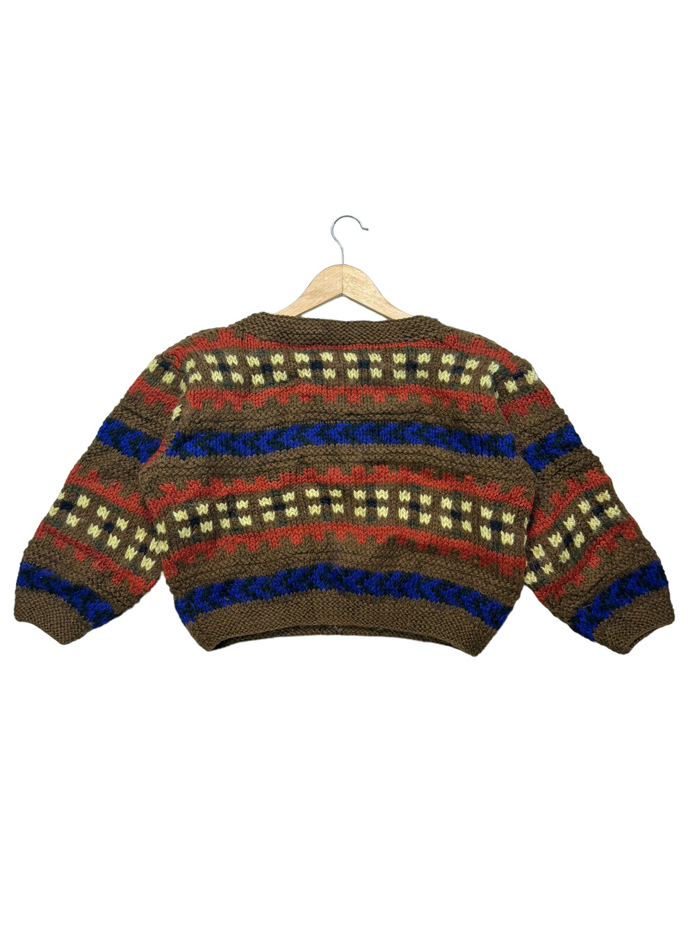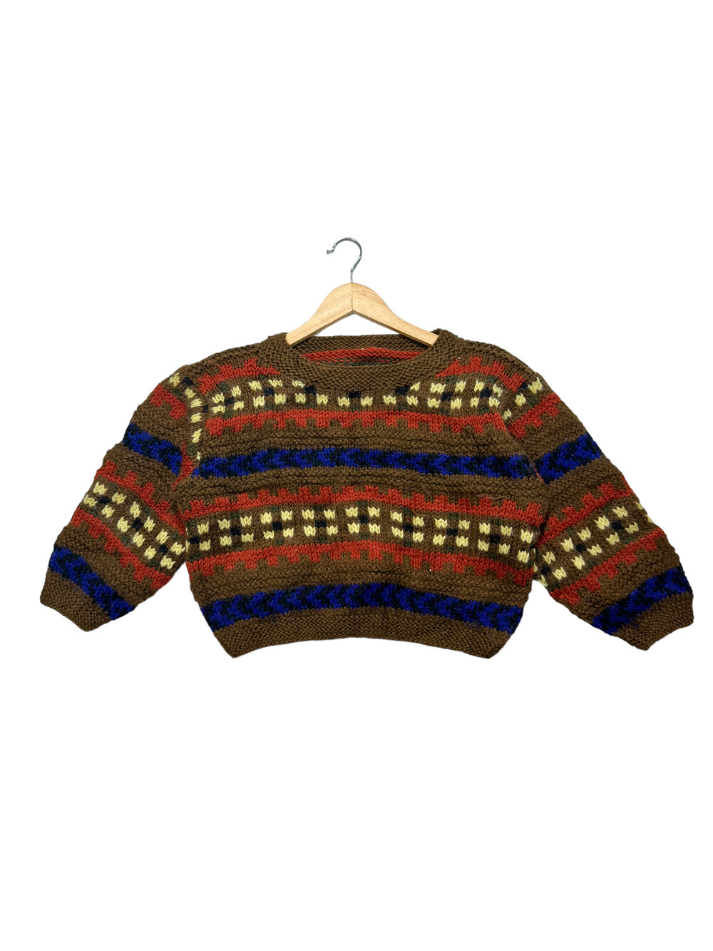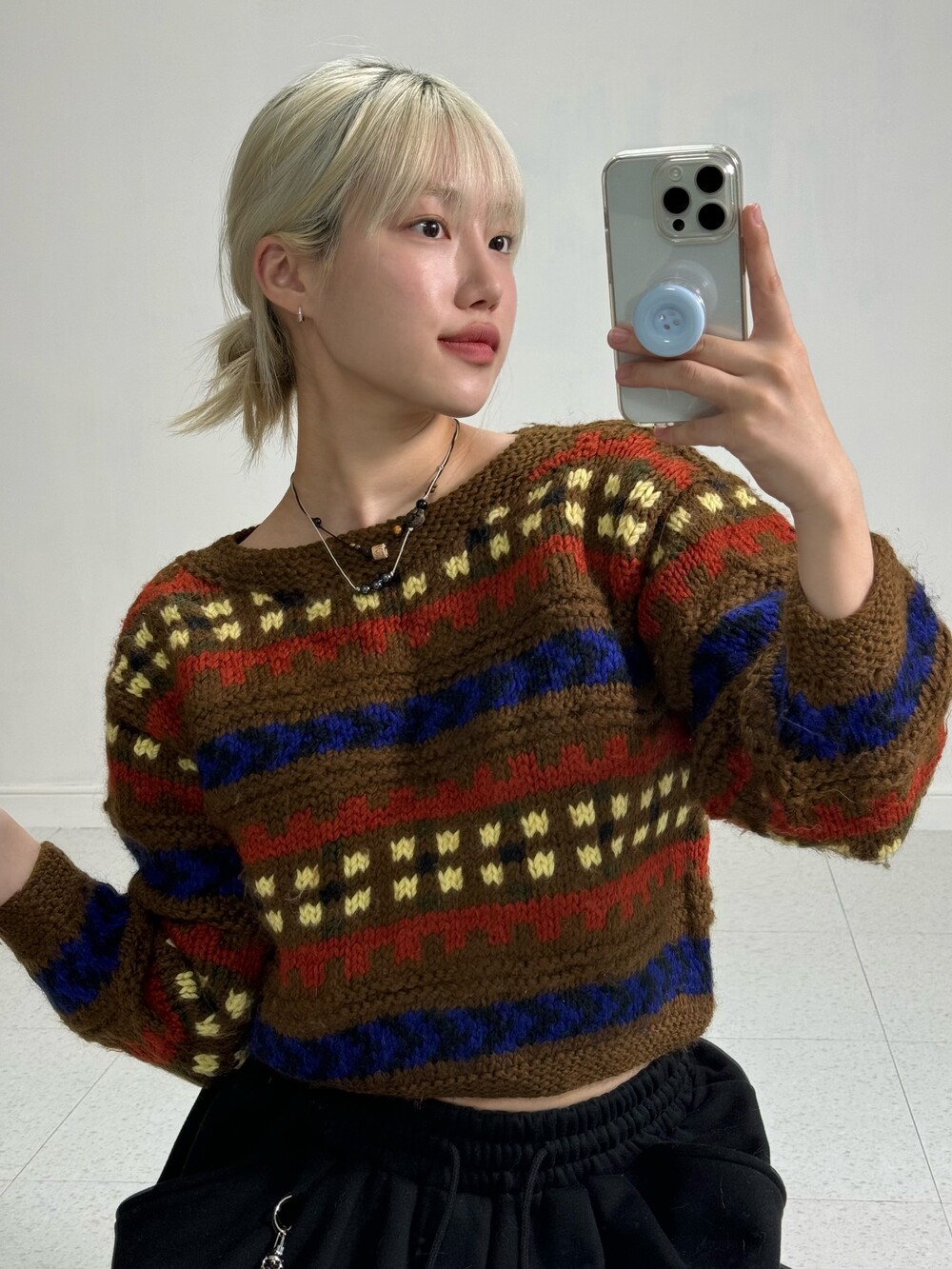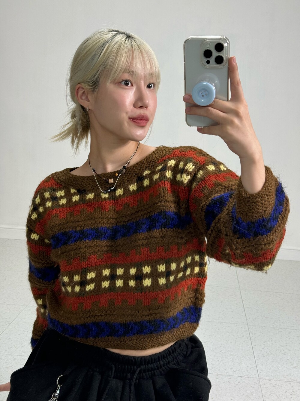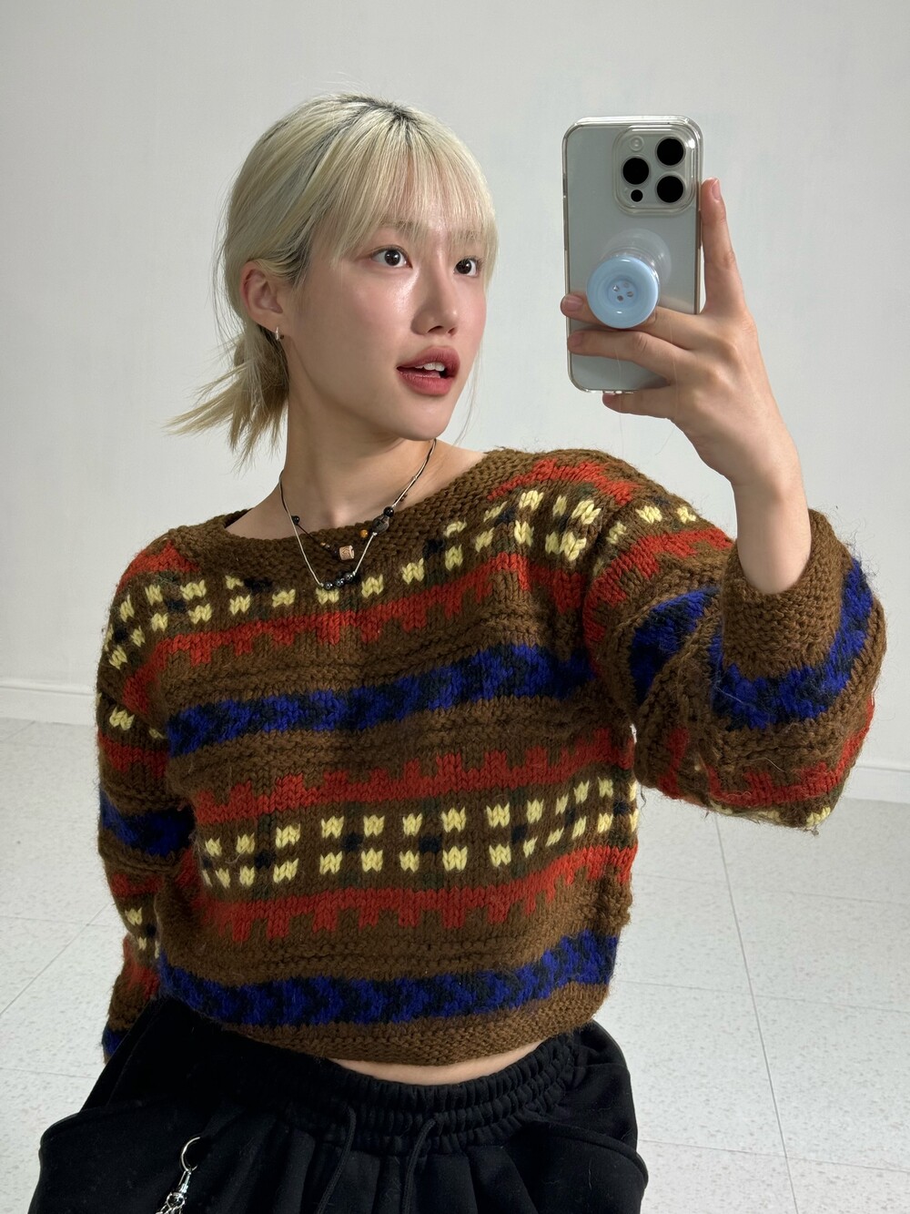 •도톰한 원단의 크롭 니트랍니다- 브라운 컬러를 바탕으로 알록달록 귀여운 디자인이에요ㅎㅎ
