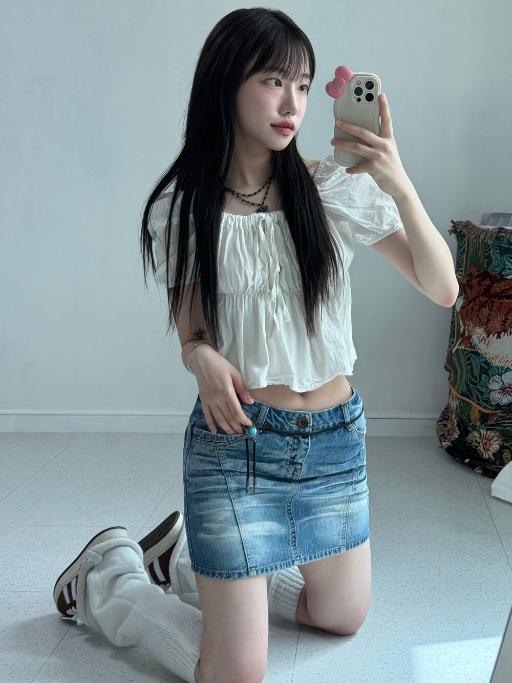 •엉덩이 별 찡 박힌게 넘 예쁜 데님숏스! 과하게 짧지 않아서 편안하게 착용가능하셔요🖤