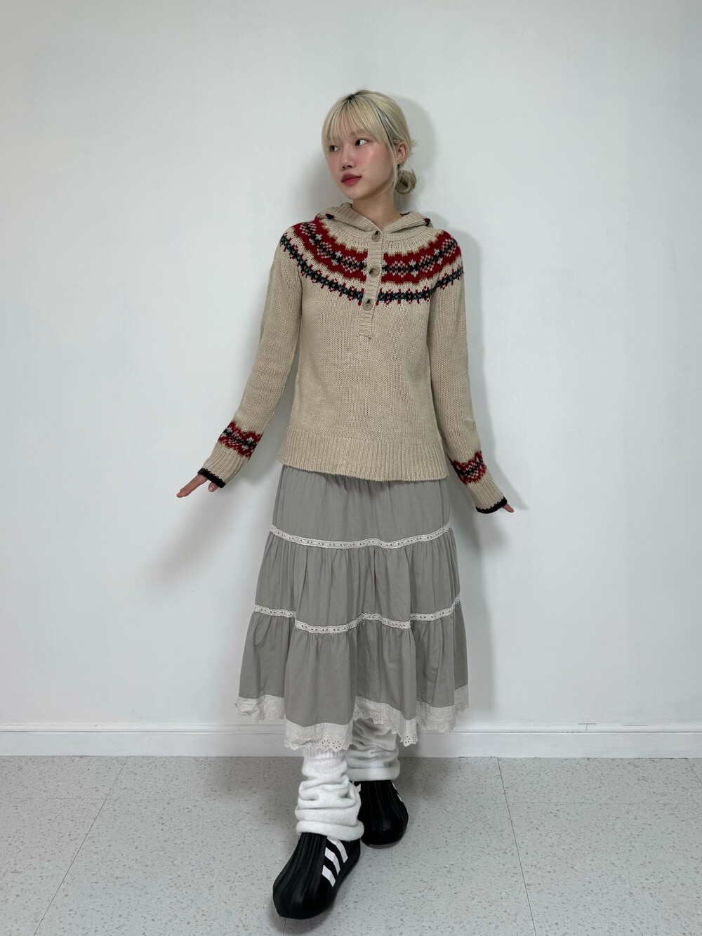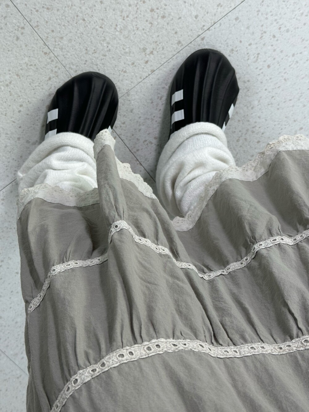 •부담스럽지 않은 뮤트한 카키 컬러 입니다! 러블리하게 레그워머와 함께 매치해주기 좋아요!