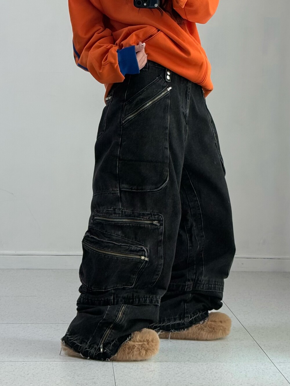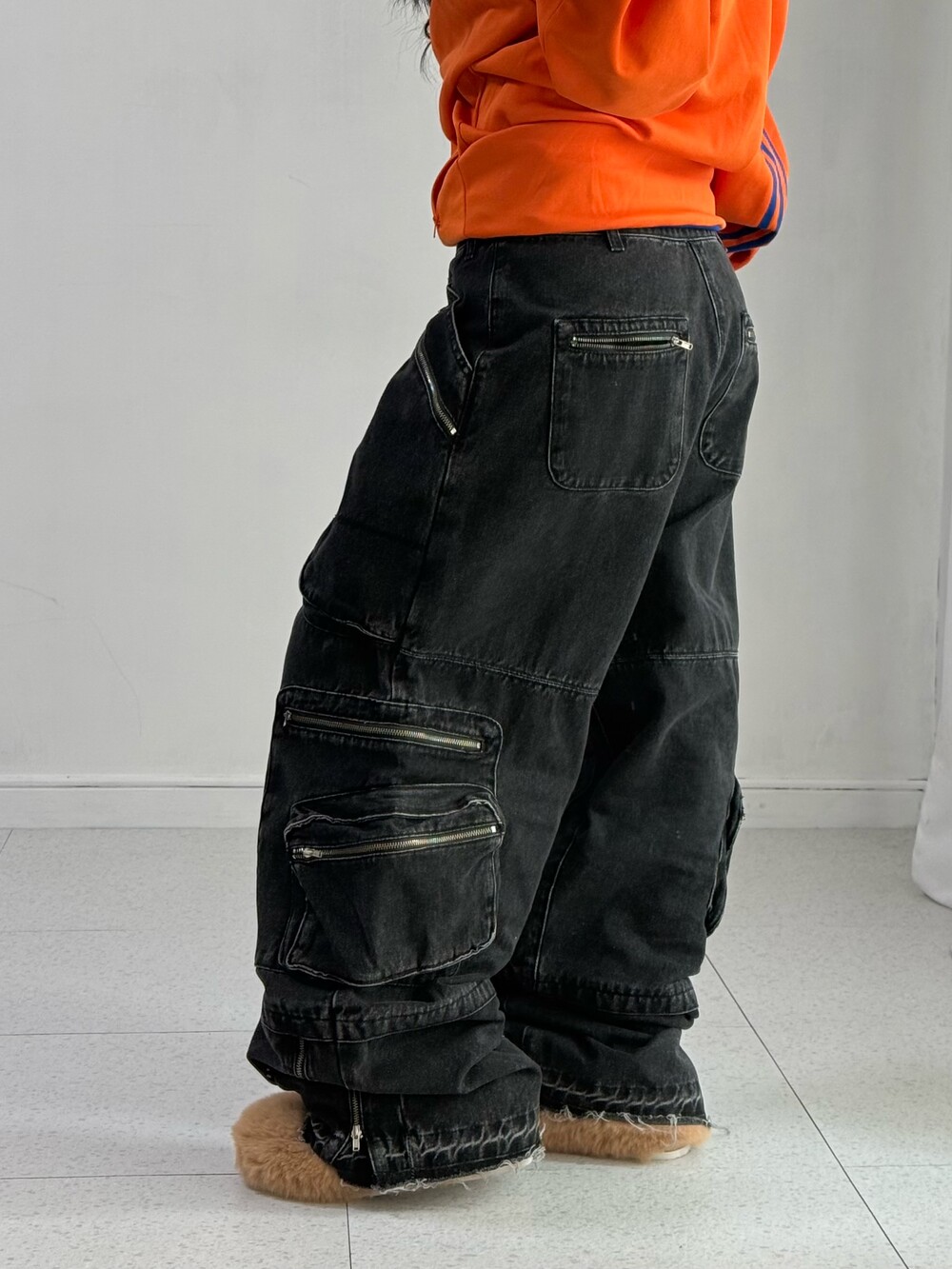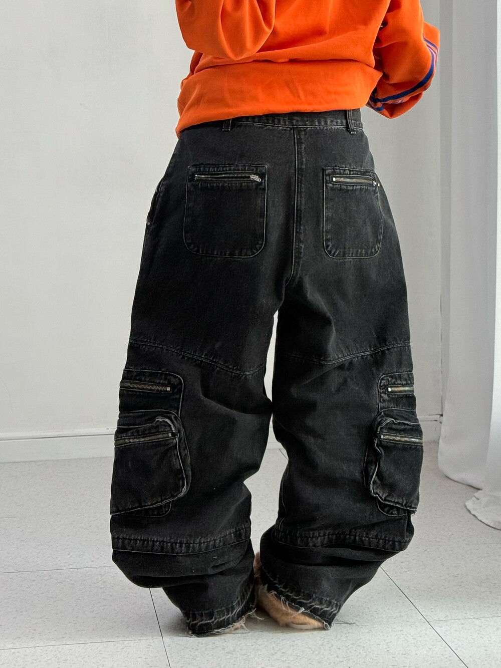 •빅유니온x깡스타일 흑청 카고팬츠 입니다. 묵직한 실루엣과 빈티지한 디자인이 굉장히 멋스러운 아이템이에요!