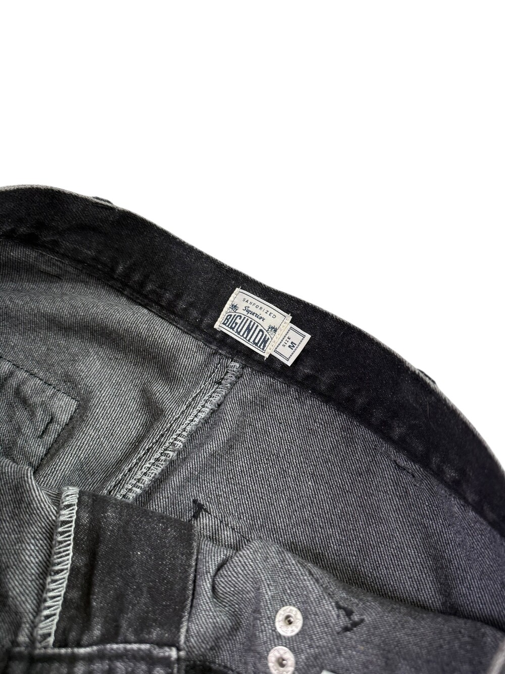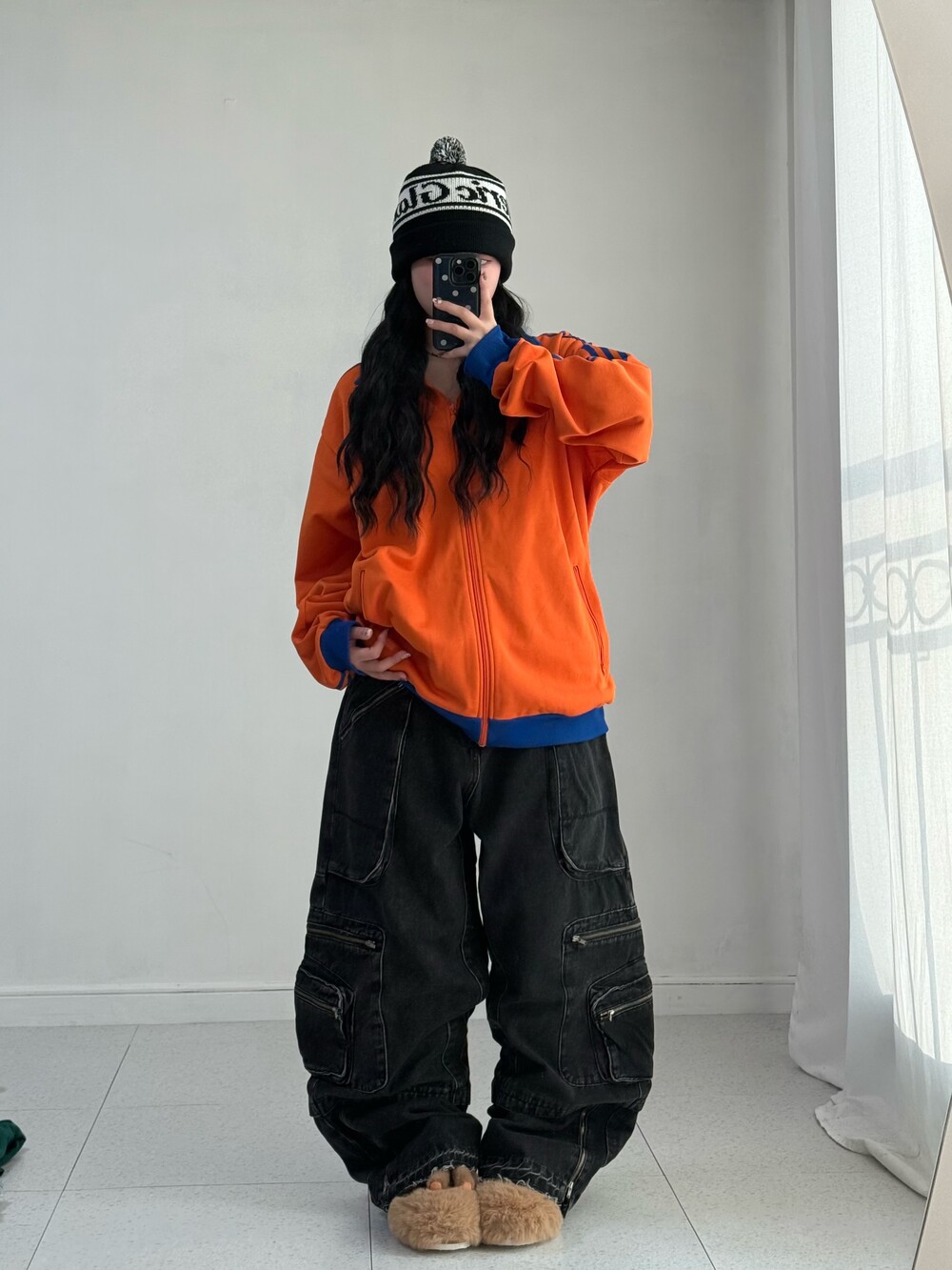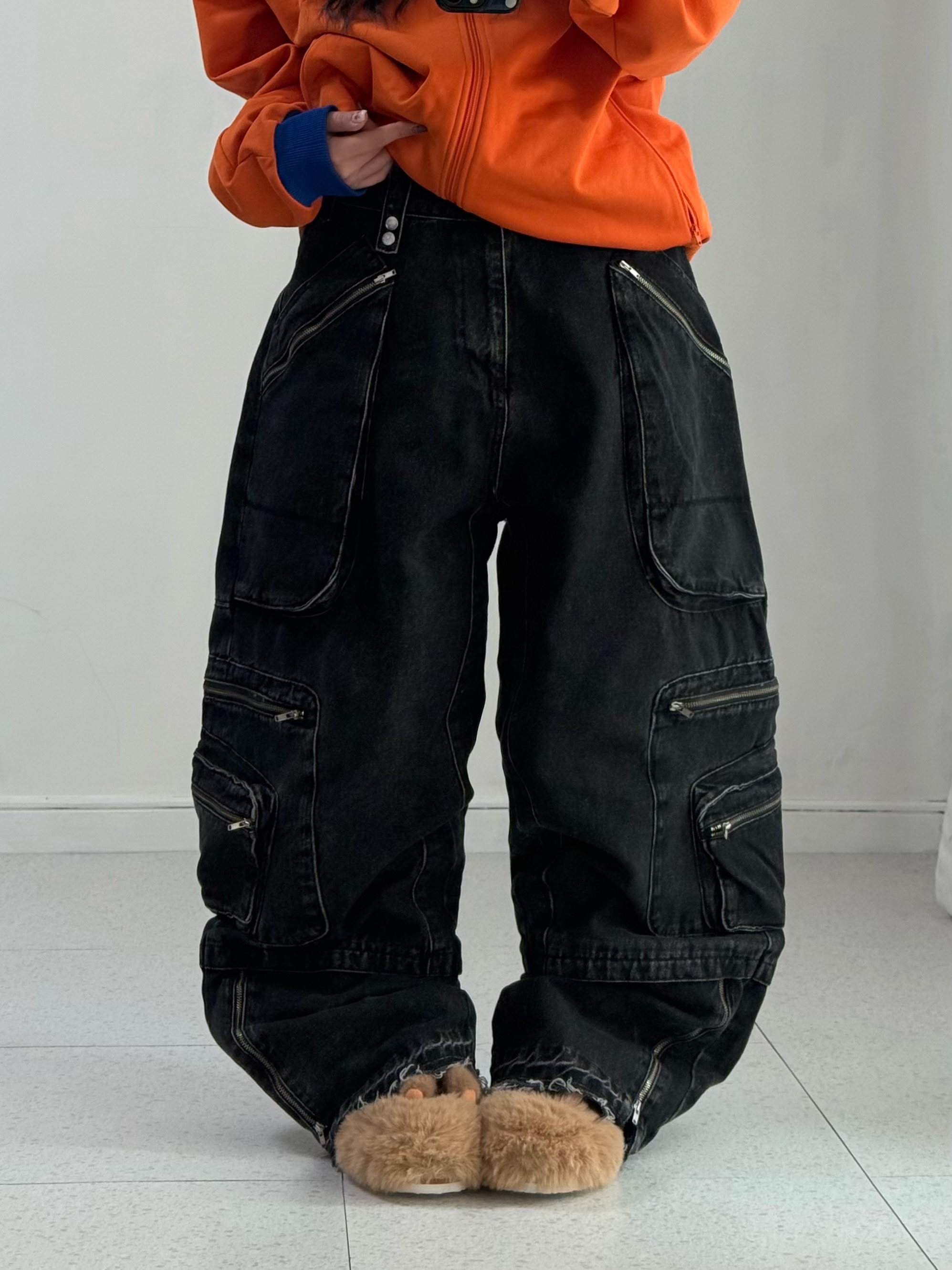 •빅유니온x깡스타일 흑청 카고팬츠 입니다. 묵직한 실루엣과 빈티지한 디자인이 굉장히 멋스러운 아이템이에요!