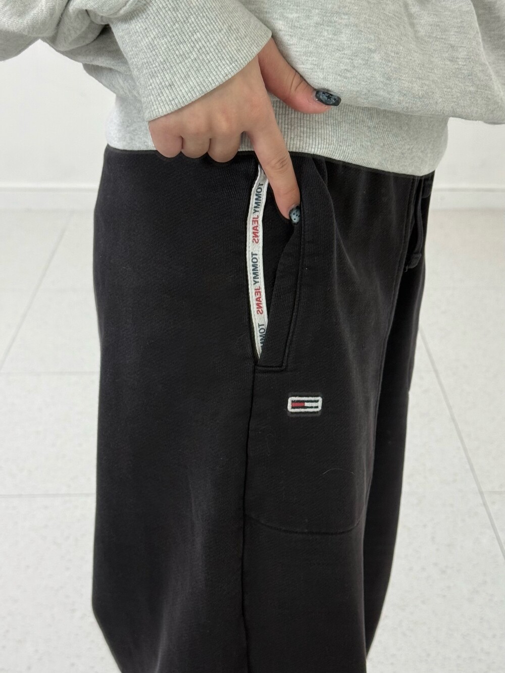 •타미힐피거 블랙 루즈핏 코튼팬츠 입니다. 주머니에 귀여운 테잎 디자인 좀 봐주세요ㅎ.ㅎ 귀엽죠오😎