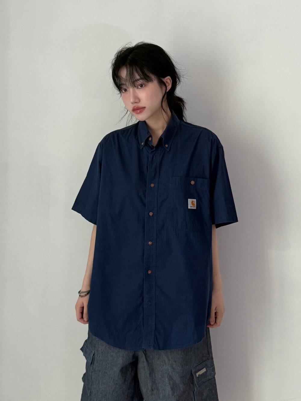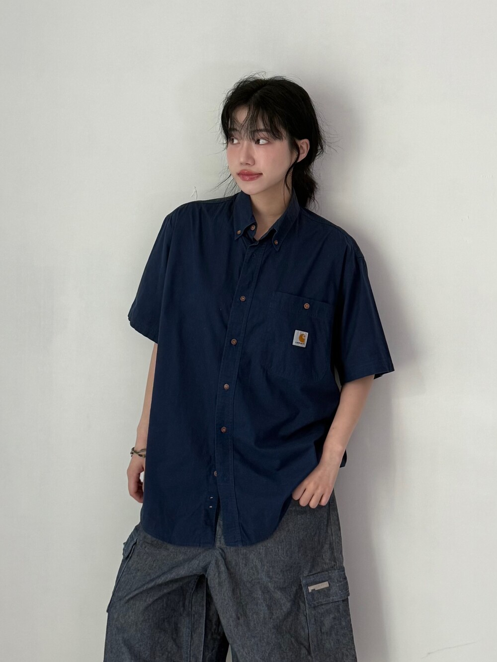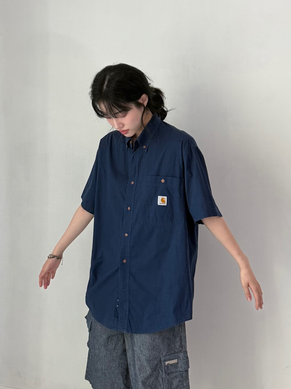 •칼하트 리메이크 네이비 반팔셔츠 입니다! 사이즈 좋고 코디하기 어렵지 않은 디자인과 색상이라 휘뚤마뚤 데일리로 입어주시기 좋아요ㅎㅎ