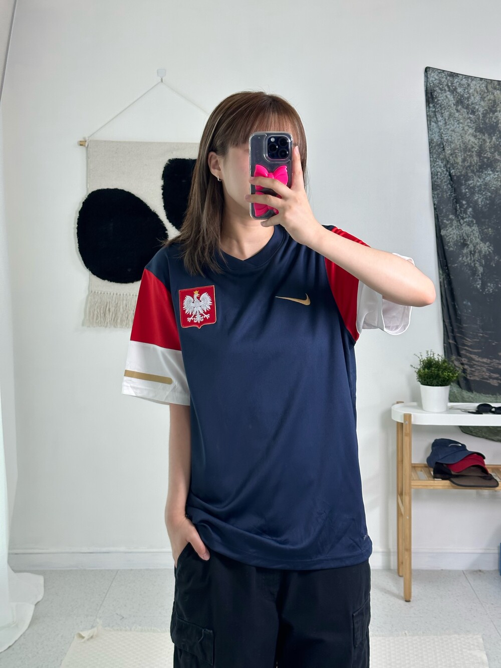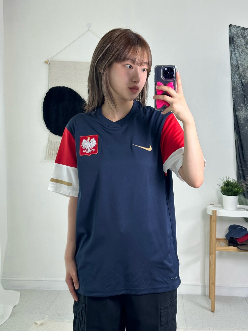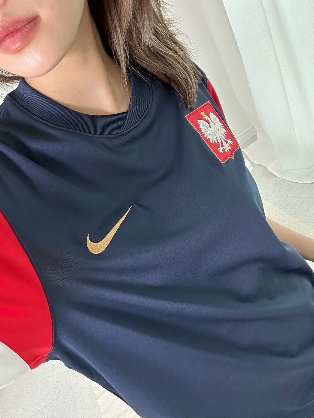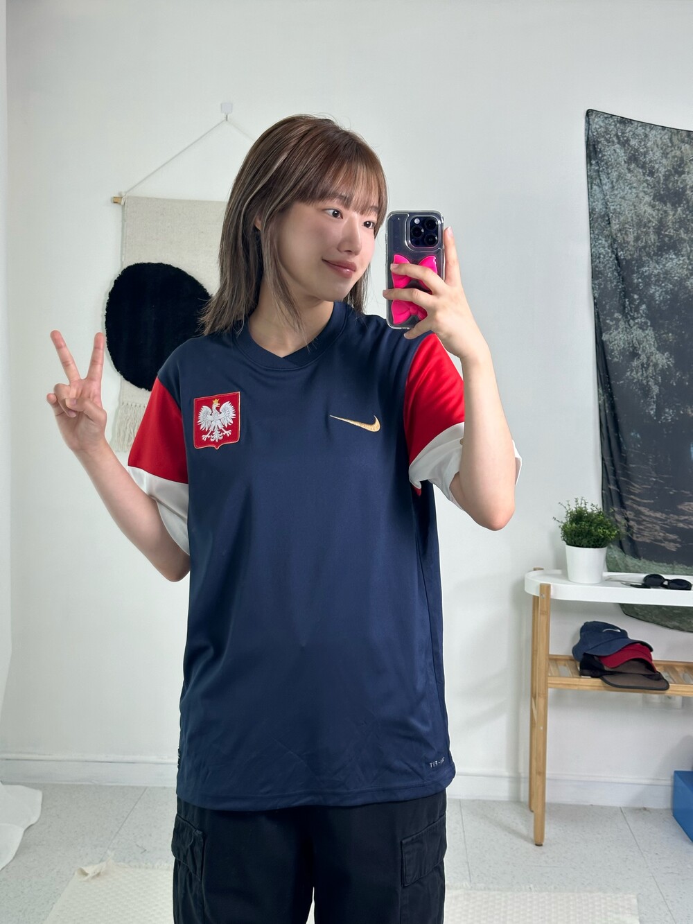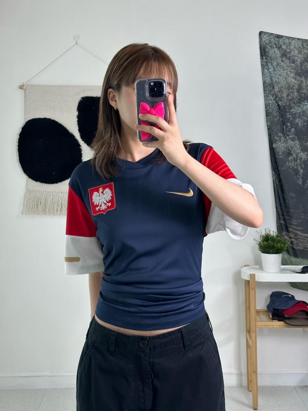 •네이비와 레드의 조합! 디자인 자체가 화려하지 않아 데일리로 입기 좋아요! 크롭으로 연출하면 더 귀엽다구요..>,<
