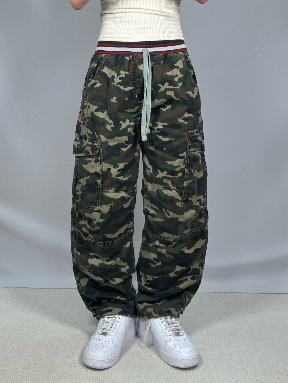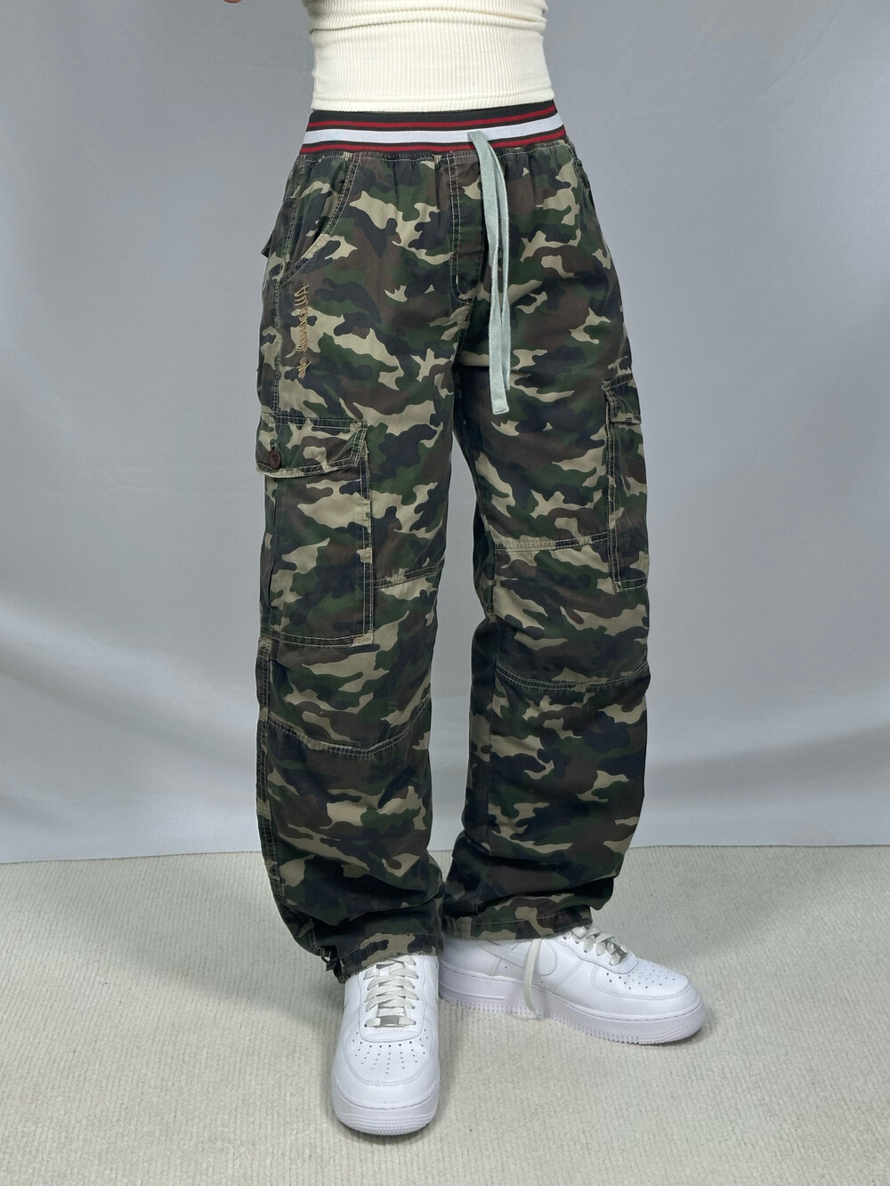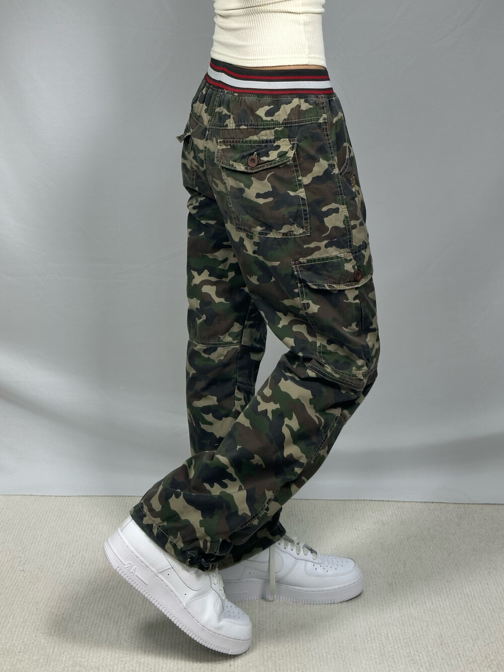 •쨍한 색감의 카모 카고 팬츠에요! 전체적으로 베이지 스티치로 디자인이 되어 있어 실제로 봤을때 더욱 디테일이 살아보이는 팬츠라는거><